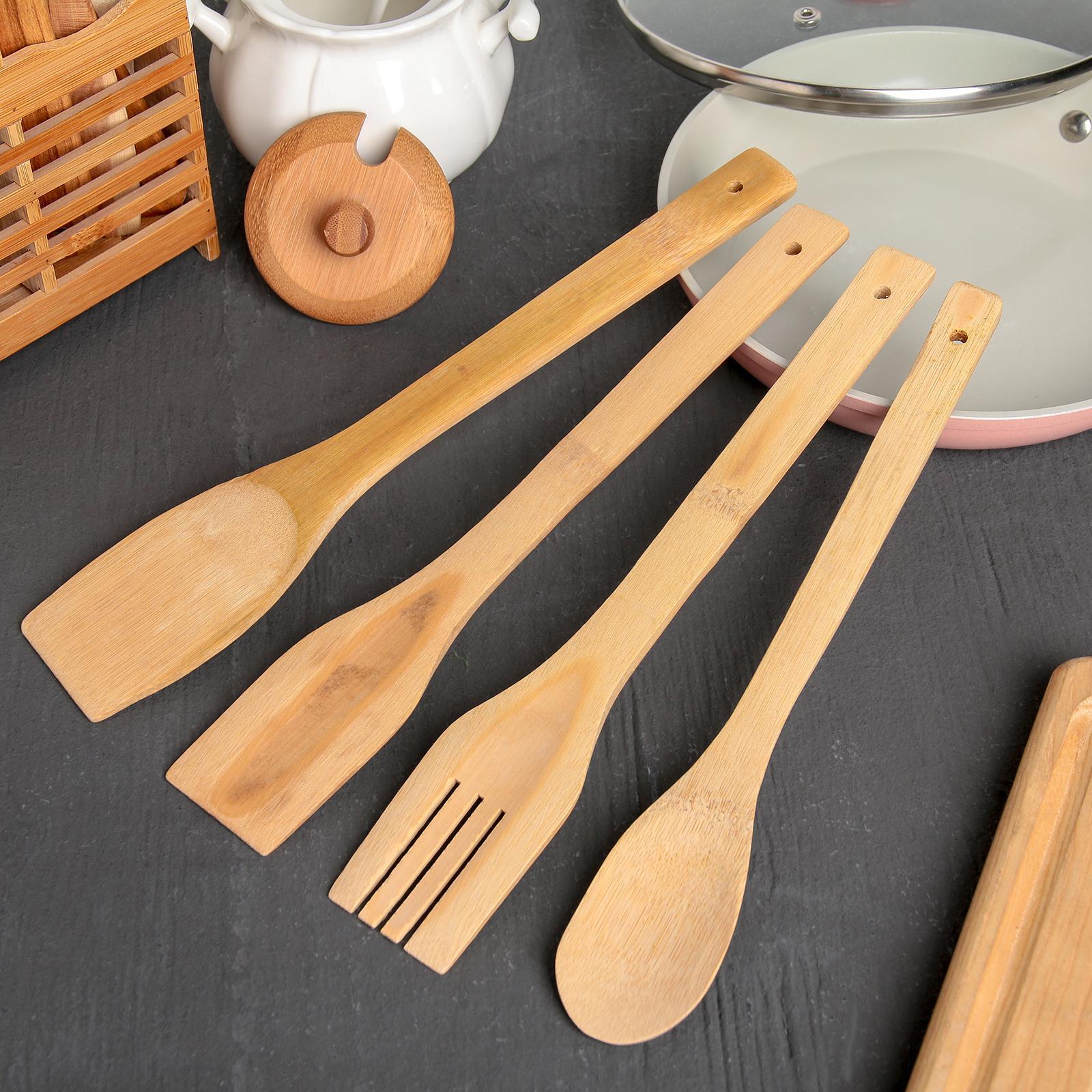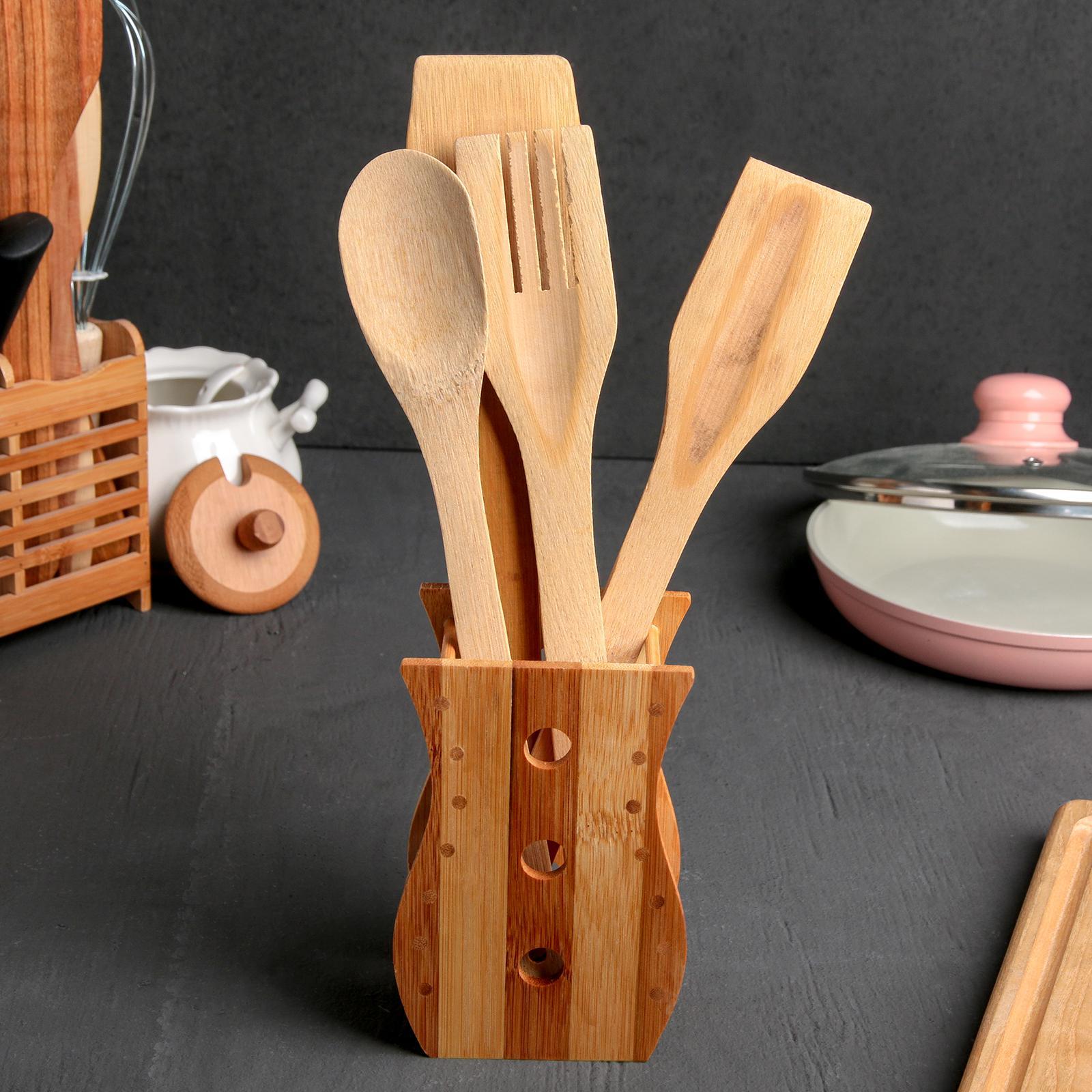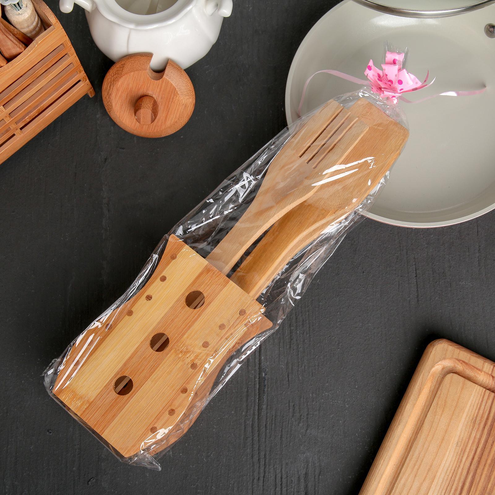 Набор кухонных принадлежностей «бамбук», 4 предмета, на подставке