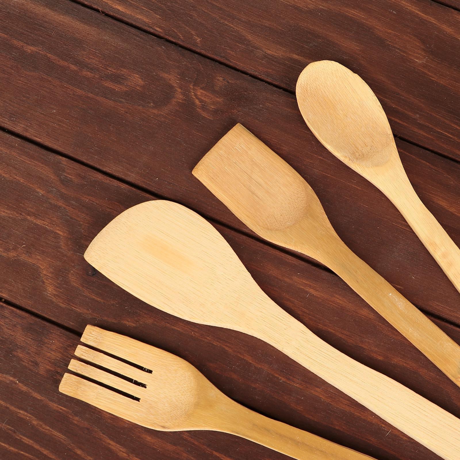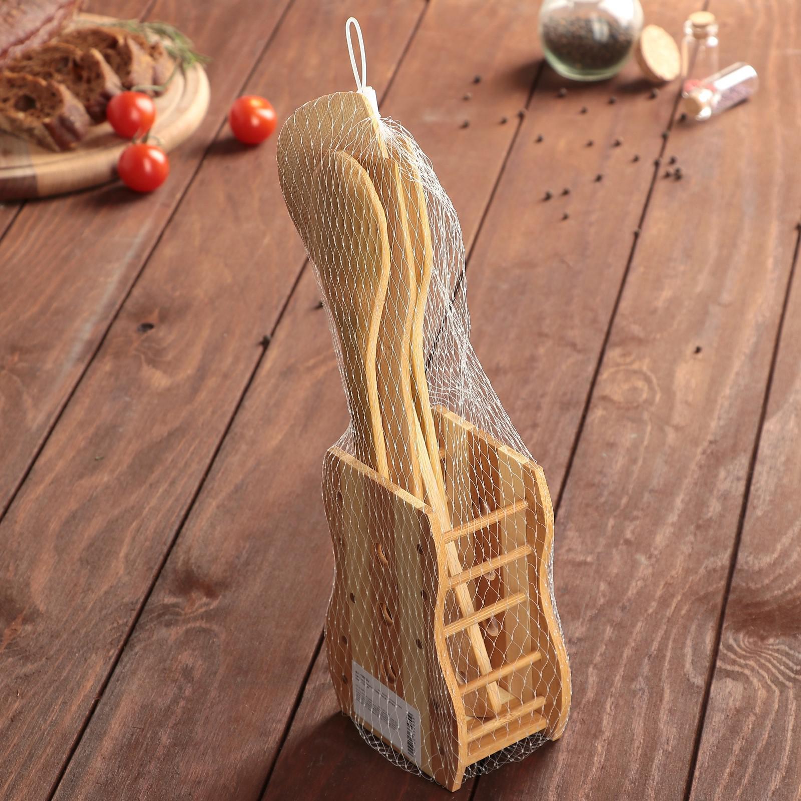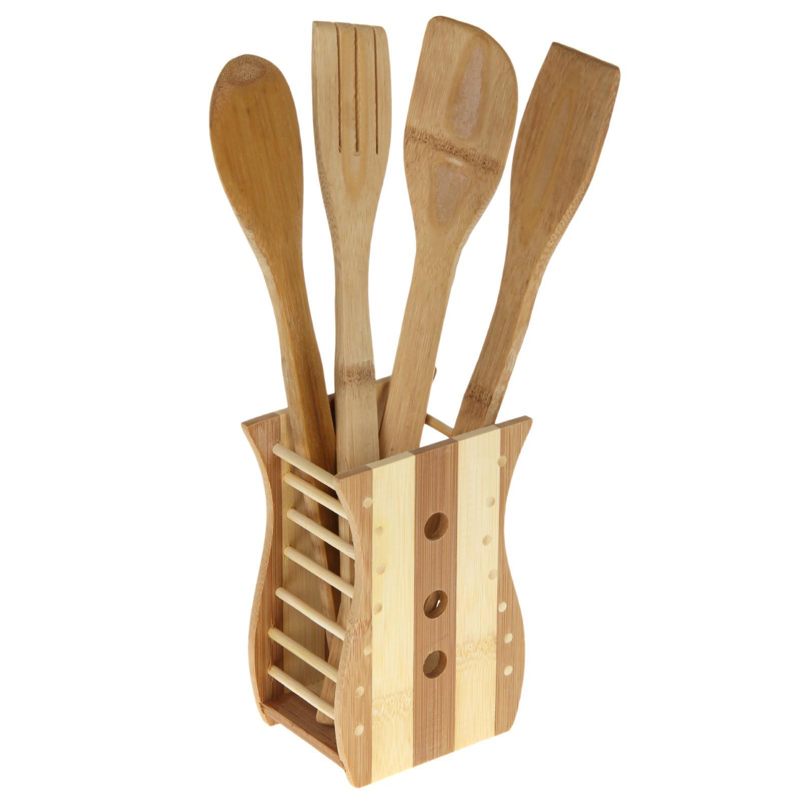 Набор кухонных принадлежностей «бамбук», 4 предмета, на подставке