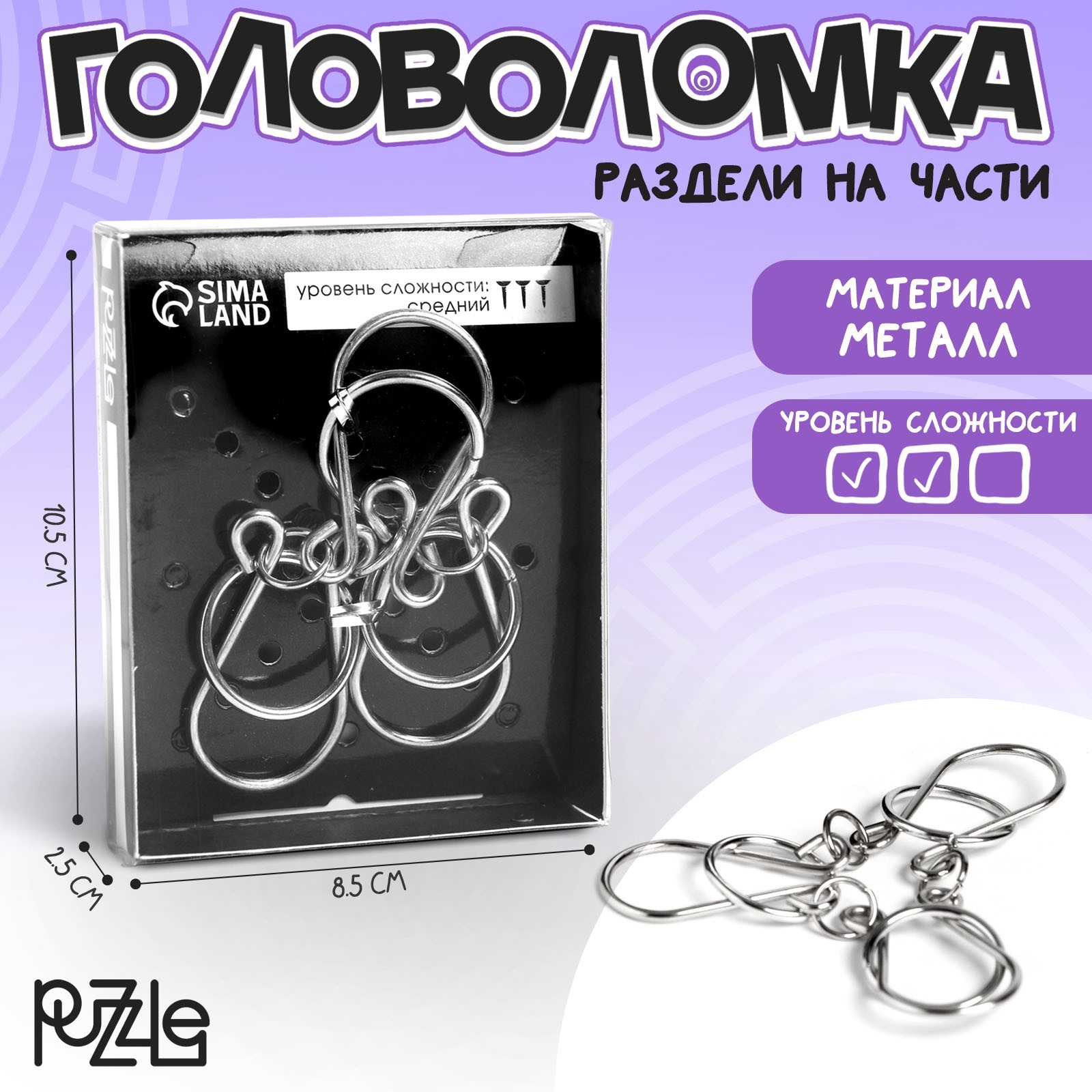 Головоломка «раздели на части» №12. Головоломка "Раздели на части" №12 - это уникальный товар, способствующий развитию эрудиции, воображения, логического мышления, смекалки и умения концентрировать внимание. Хотите продемонстрировать друзьям свои интеллектуальные способности? Головоломка "Раздели на части" №12 поможет Вам в этом поможет. Это отличный подарок для друзей и близких, который вы можете приобрести в розницу у нас по выгодной цене. Для кого: Унисекс Возраст: От 7 лет Лицензия: Нет Материал: Металл Вид головоломки: Кольца и замки Дополнительные функции: Развивающая Сложность головоломки: 3  развернуть описание ▼