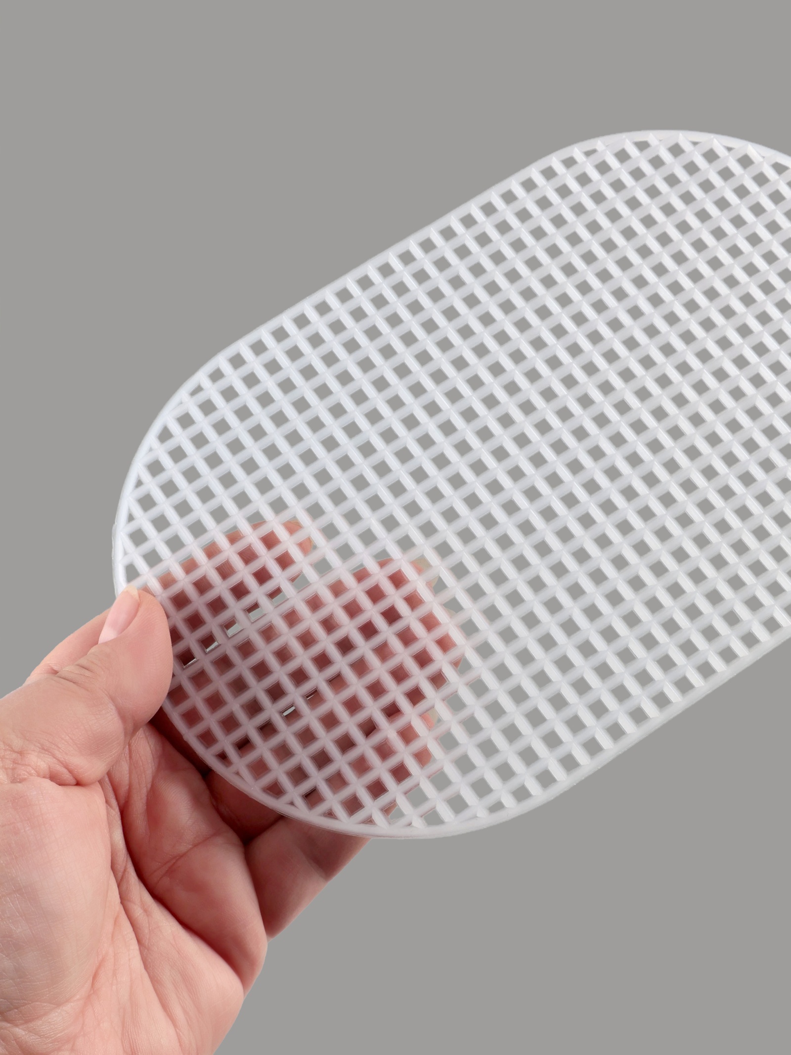 Пластиковая основа для вышитых сумок-корзин сочетает функциональность с творческими возможностями. Готовая работа сразу становится практичным предметом интерьера или аксессуаром для пикника- не требует дополнительной обработки или переноса на другую основу.