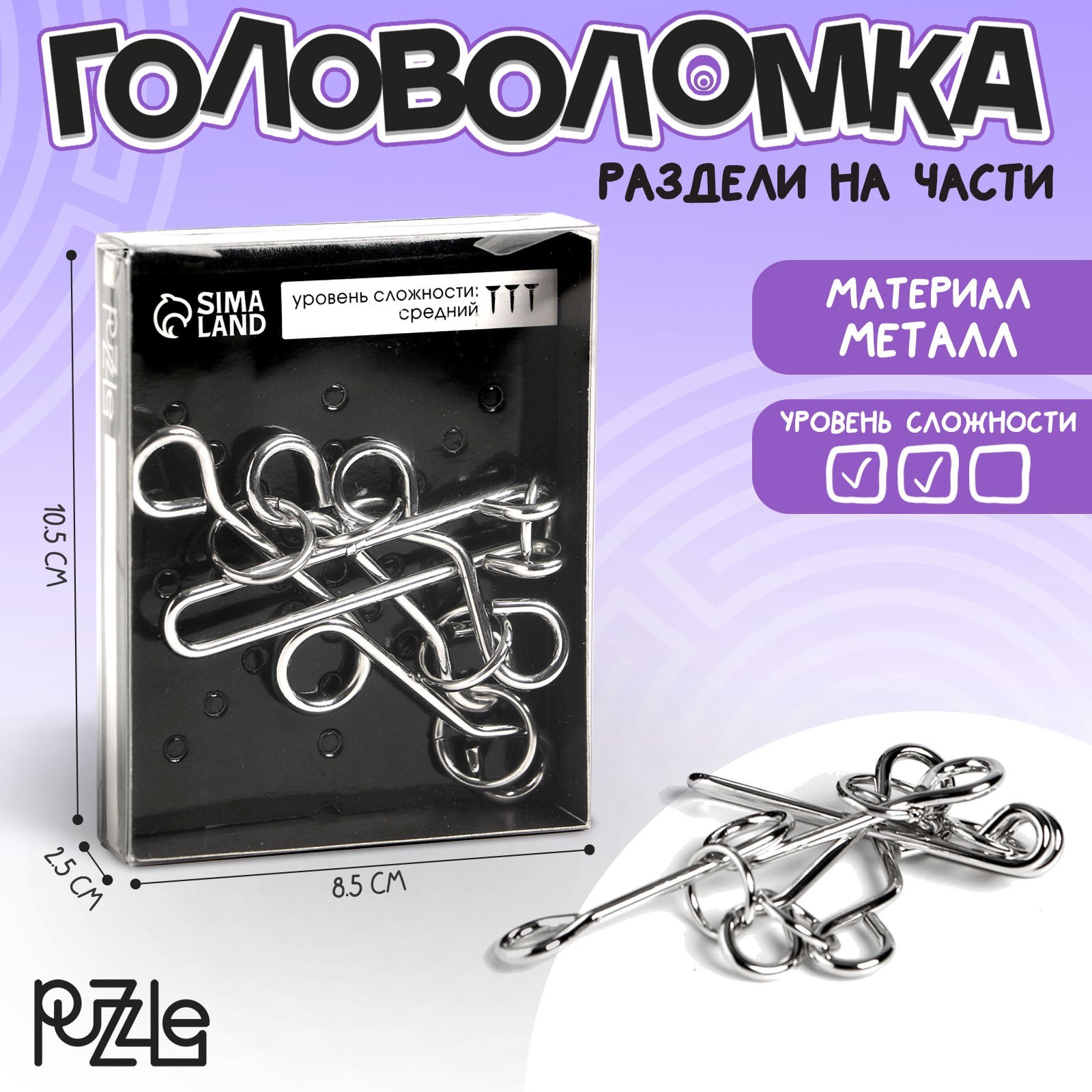 Головоломка «раздели на части» №21. Головоломка "Раздели на части" №21 - это уникальный товар, способствующий развитию эрудиции, воображения, логического мышления, смекалки и умения концентрировать внимание. Хотите продемонстрировать друзьям свои интеллектуальные способности? Головоломка "Раздели на части" №21 поможет Вам в этом поможет. Это отличный подарок для друзей и близких, который вы можете приобрести в розницу у нас по выгодной цене. Для кого: Унисекс Возраст: От 7 лет Лицензия: Нет Материал: Металл Вид головоломки: Кольца и замки Дополнительные функции: Развивающая Сложность головоломки: 3  развернуть описание ▼