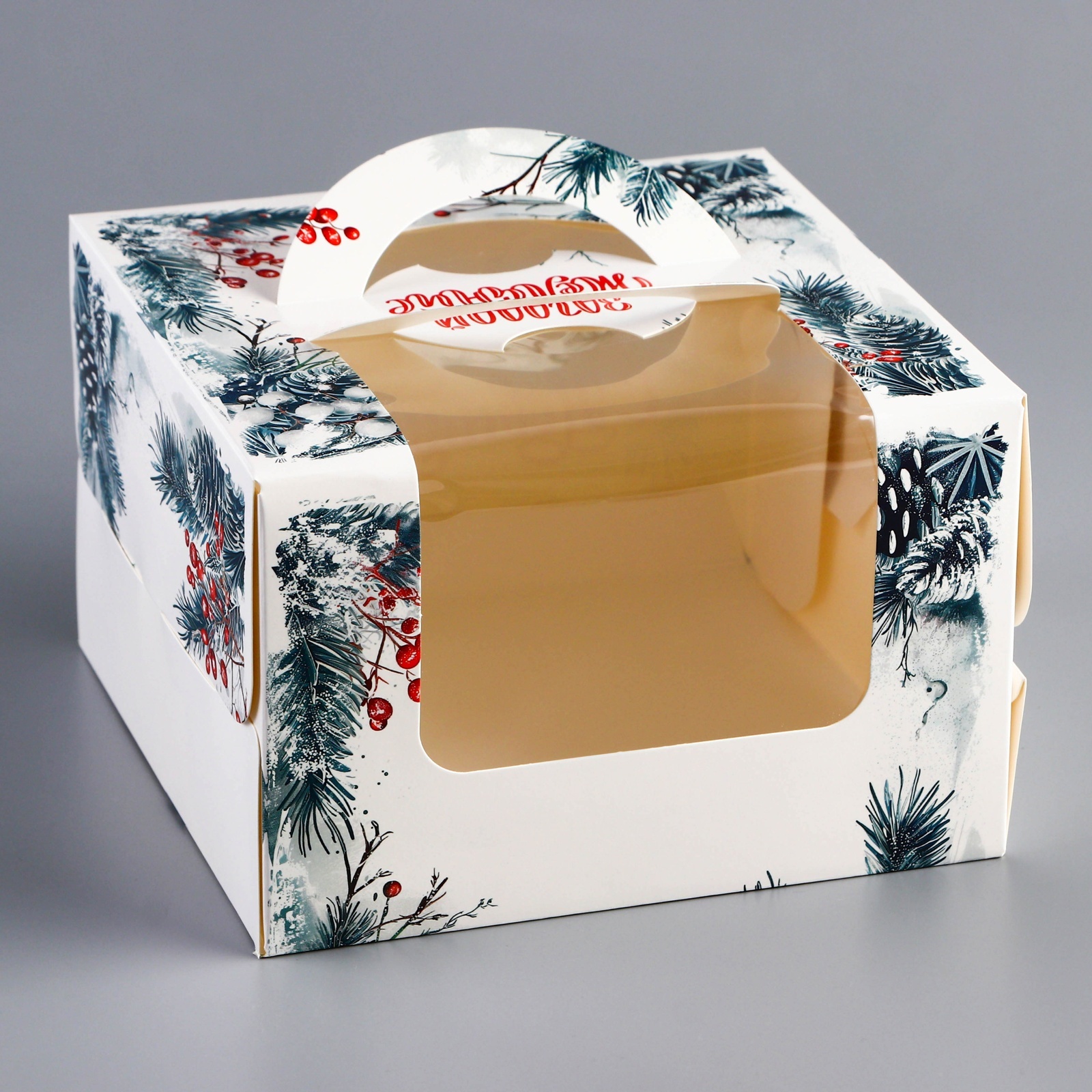 Коробка под бенто - торт с окном «с новым годом!», 15.5 15.5 10 см. Новогодняя коробка для бенто-торта с окном — это стильная и праздничная упаковка, разработанная специально для небольших тортов, которые станут идеальным подарком или угощением в зимний сезон. Коробка выполнена из плотного картона, украшенного новогодним дизайном, который создает атмосферу волшебства и праздника. Главной особенностью коробки является прозрачное окно, которое позволяет эффектно демонстрировать бенто-торт, не открывая упаковку, сохраняя его свежесть и аккуратный вид. Компактный размер коробки делает её идеальной для порционных тортов, а праздничное оформление — отличным выбором для подарка, новогодних мероприятий или продаж в кафе и кондитерских. Вид упаковки:Для тортов|Цвет:Разноцветный|Цвет:Белый|Форма:Квадратная|Плотность, г/м :270|Длина, см:15.5|Ширина, см:15.5|Высота, см:10|Тематика:Рождественская|Тематика:Новогодняя|Символ года:Нет|Тематика праздника:Рождество|Тематика праздника:Новый год|Материал:Картон|Материал:ПВХ|Вид:Кондитерские коробки|Вид:Квадратные|Вид:Складные коробки|Размер:Малый (11-17 см)|Страна:Китай  развернуть описание ▼