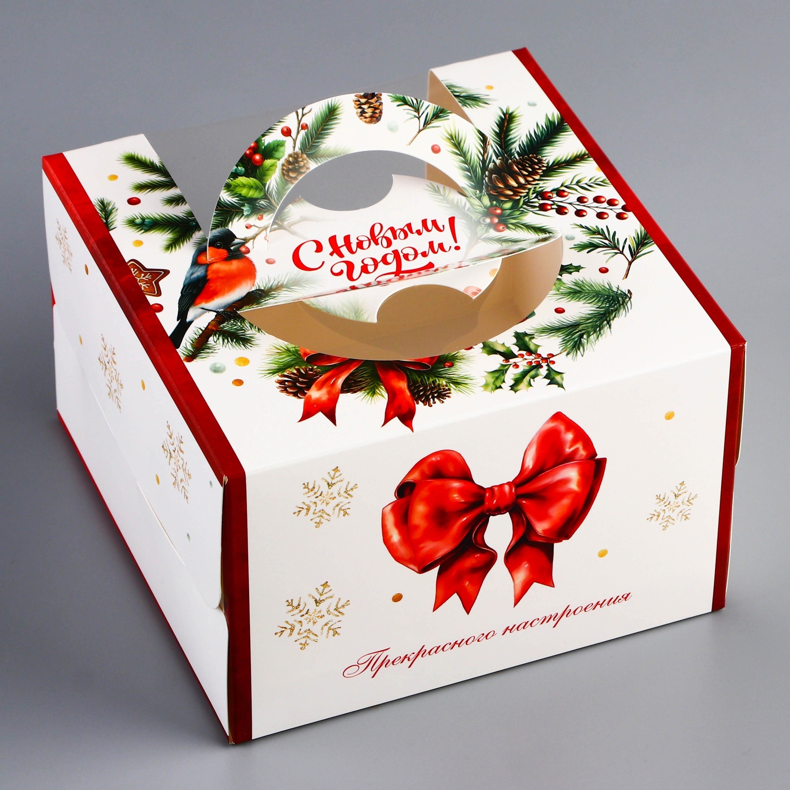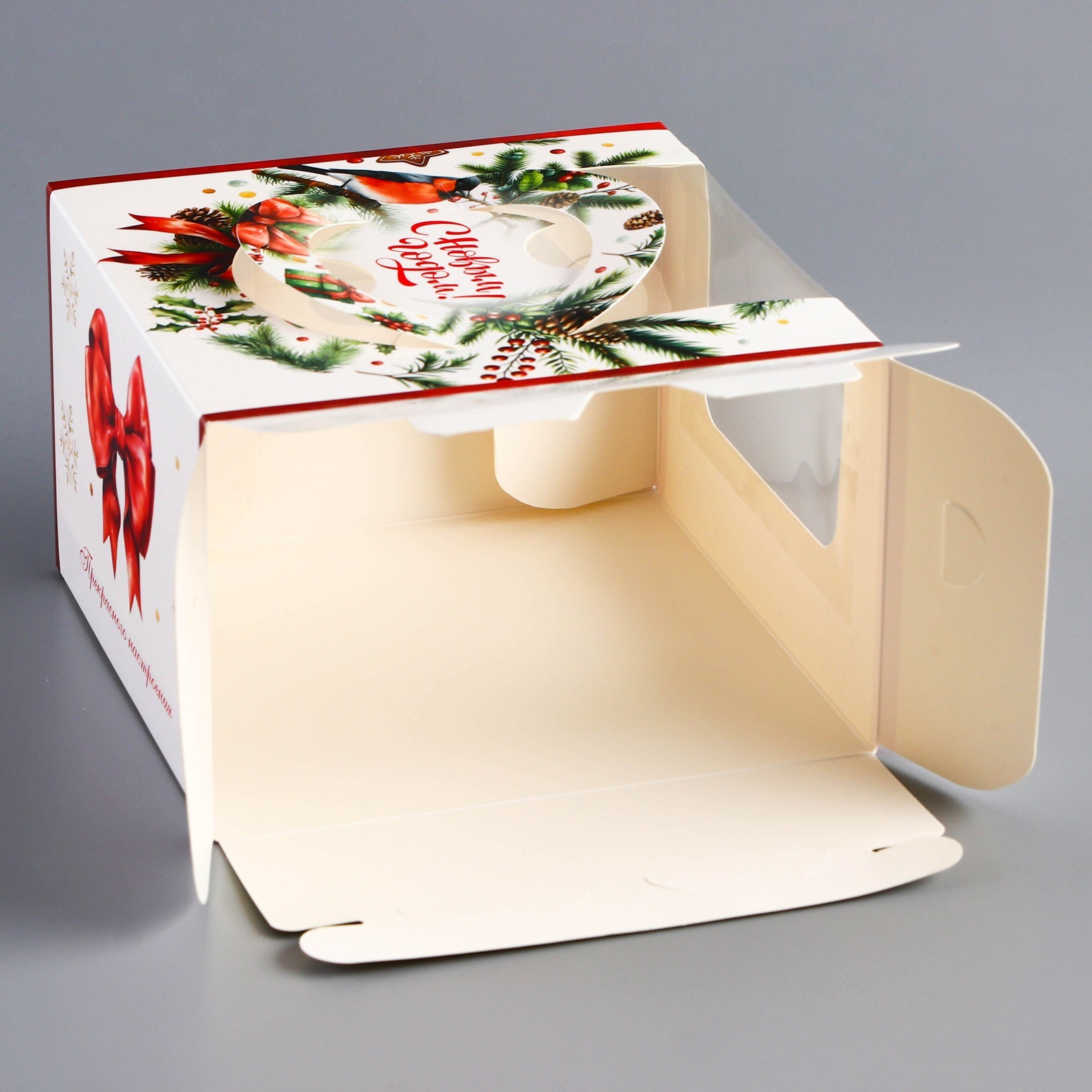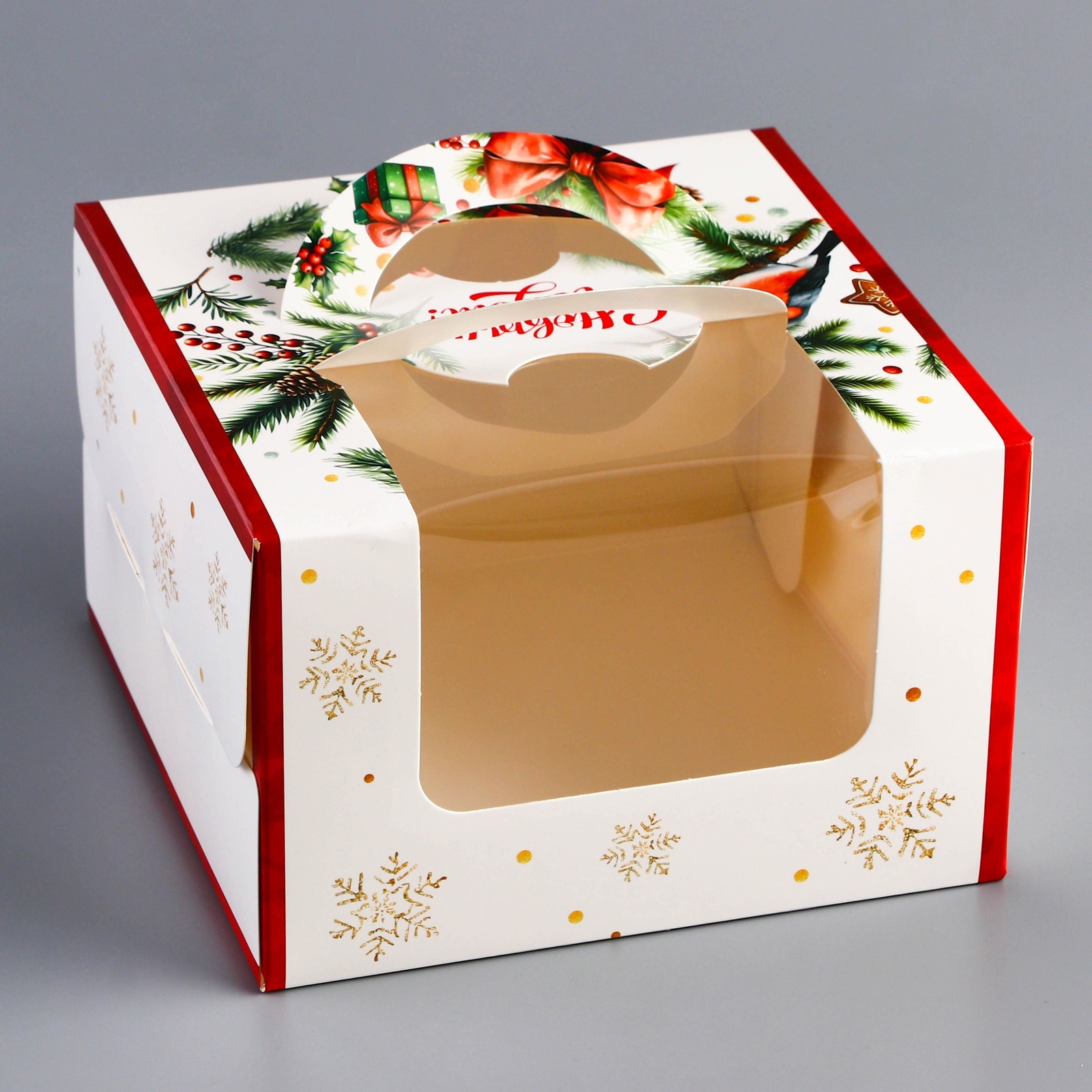 Коробка под бенто - торт с окном новогодняя «с новым годом», 15.5 15.5 10 см. Новогодняя коробка для бенто-торта с окном — это стильная и праздничная упаковка, разработанная специально для небольших тортов, которые станут идеальным подарком или угощением в зимний сезон. Коробка выполнена из плотного картона, украшенного новогодним дизайном, который создает атмосферу волшебства и праздника. Главной особенностью коробки является прозрачное окно, которое позволяет эффектно демонстрировать бенто-торт, не открывая упаковку, сохраняя его свежесть и аккуратный вид. Внутри коробка снабжена вставкой, обеспечивающей надежную фиксацию торта, чтобы он оставался на месте при транспортировке. Компактный размер коробки делает её идеальной для порционных тортов, а праздничное оформление — отличным выбором для подарка, новогодних мероприятий или продаж в кафе и кондитерских. Цвет:Белый|Цвет:Разноцветный|Форма:Квадратная|Плотность, г/м :270|Длина, см:15.5|Ширина, см:15.5|Высота, см:10|Тематика праздника:Новый год|Материал:Картон|Страна:Китай  развернуть описание ▼