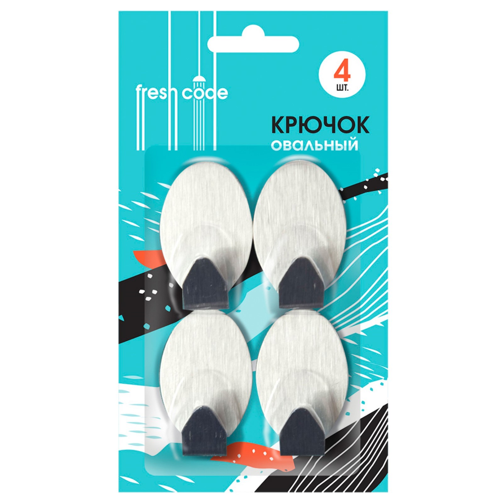 Крючок металлический на липкой основе овальный, 4шт, Fresh Code