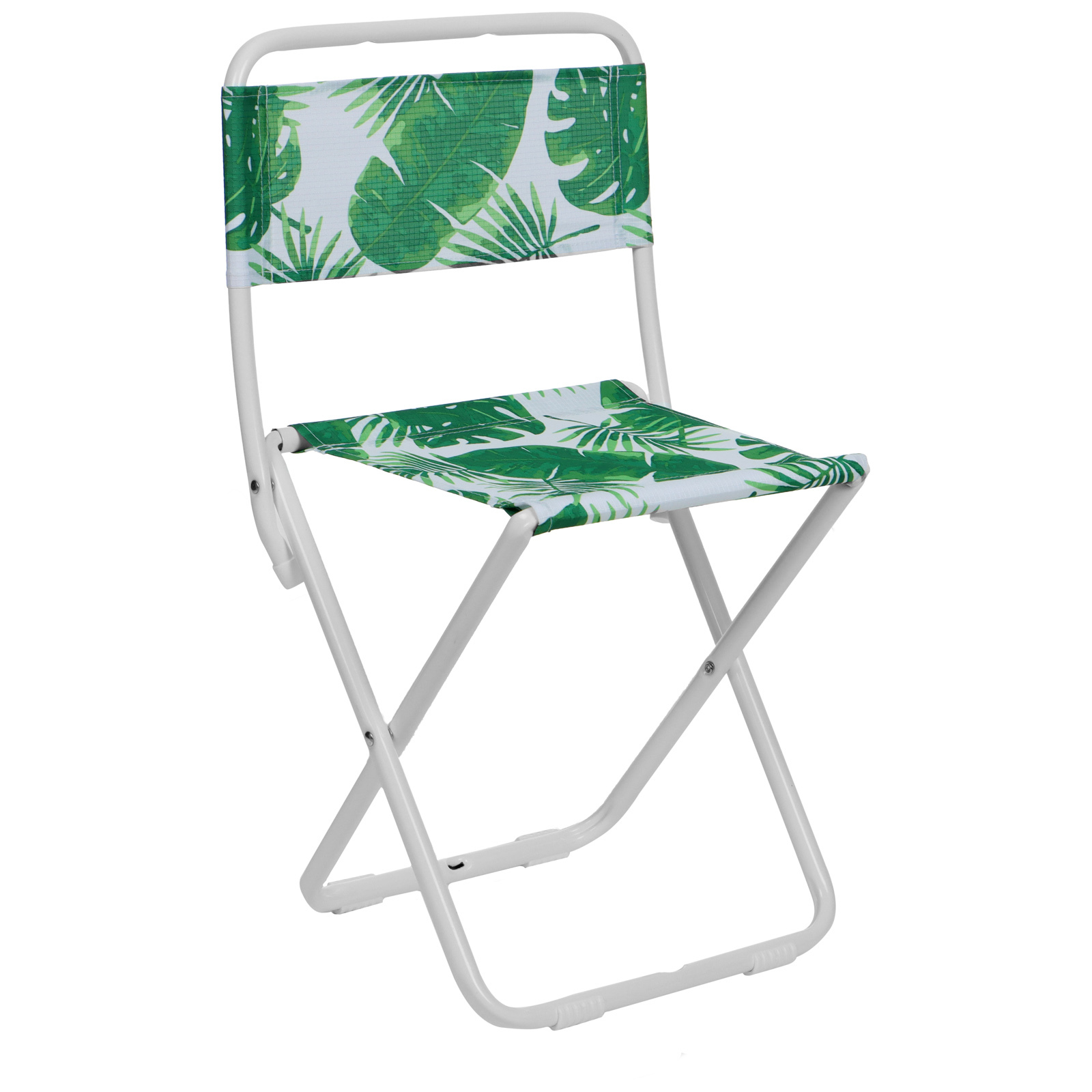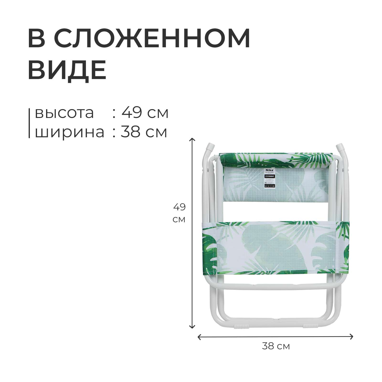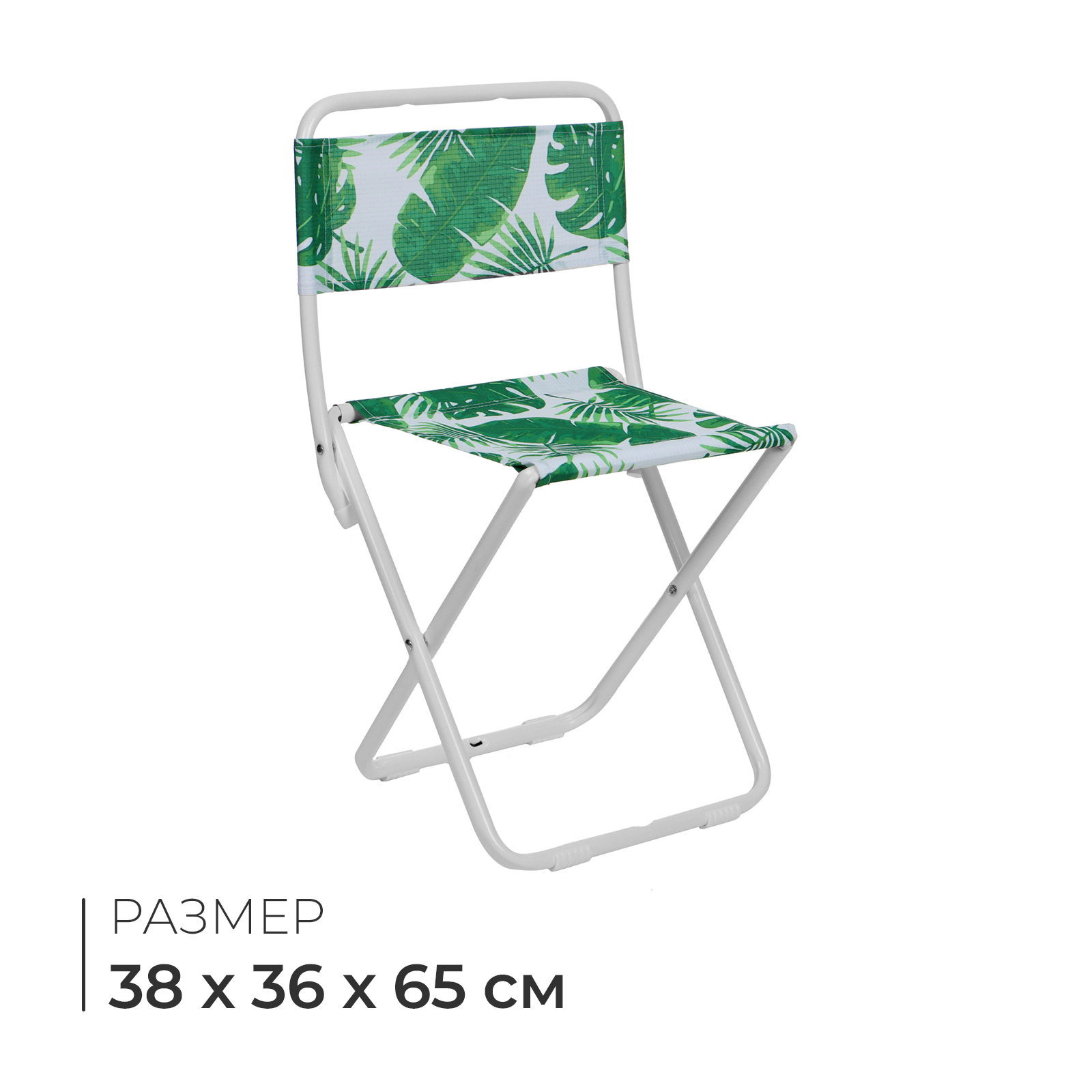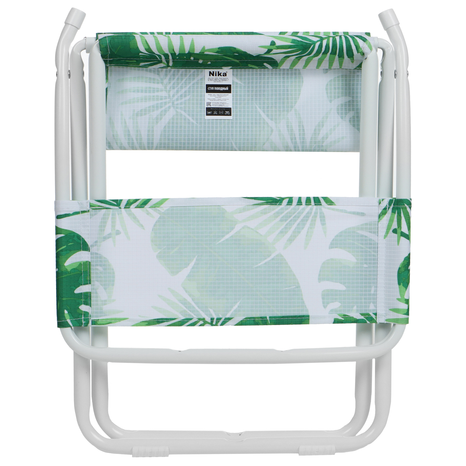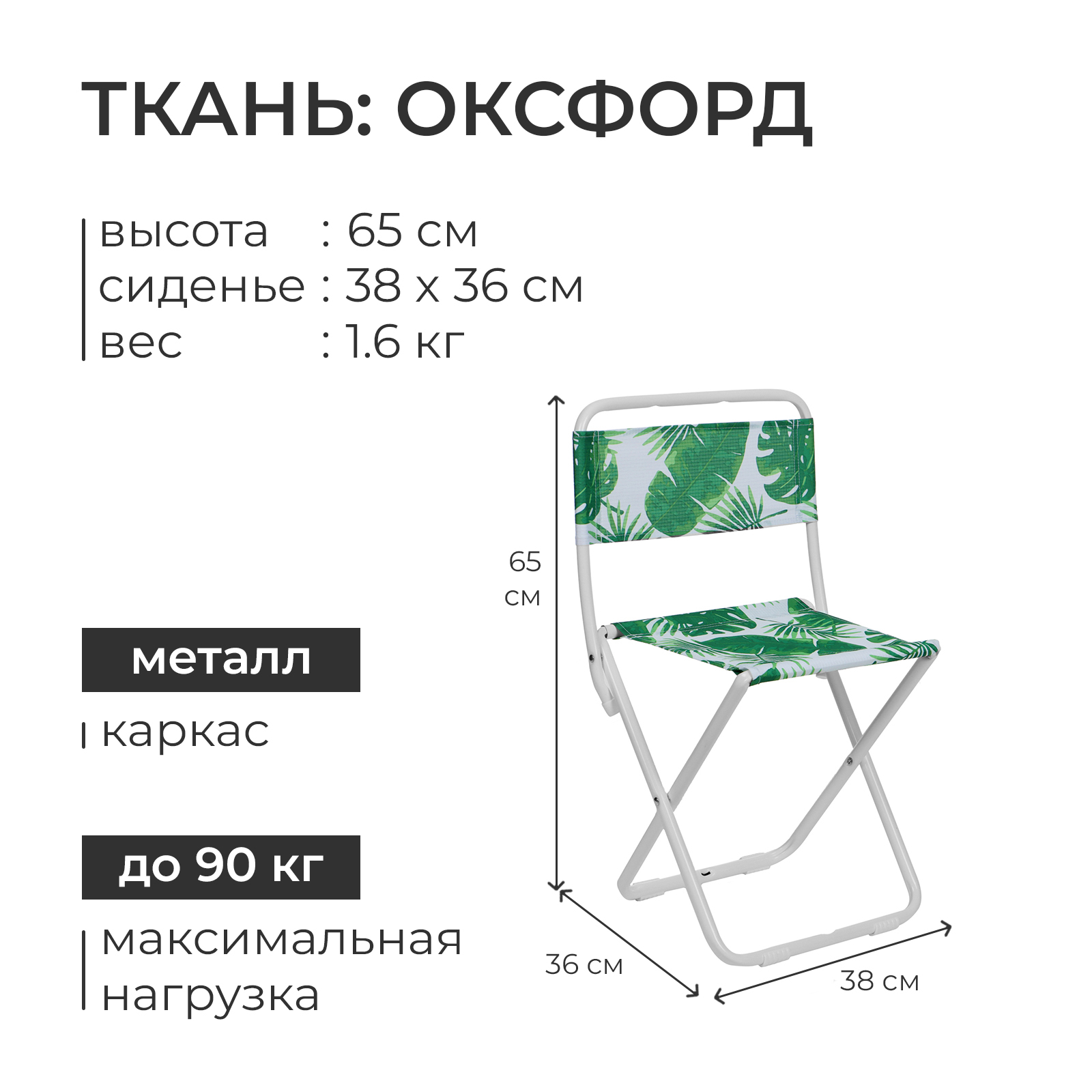 Стул складной nika, 38 х 36 х 65 см, принт тропические листья. Цвет: Белый Maксимальная нагрузка, кг: 90 Материал: Металл Раскладная мебель: Да Вид: Стул Особенности: Без особенностей  развернуть описание ▼