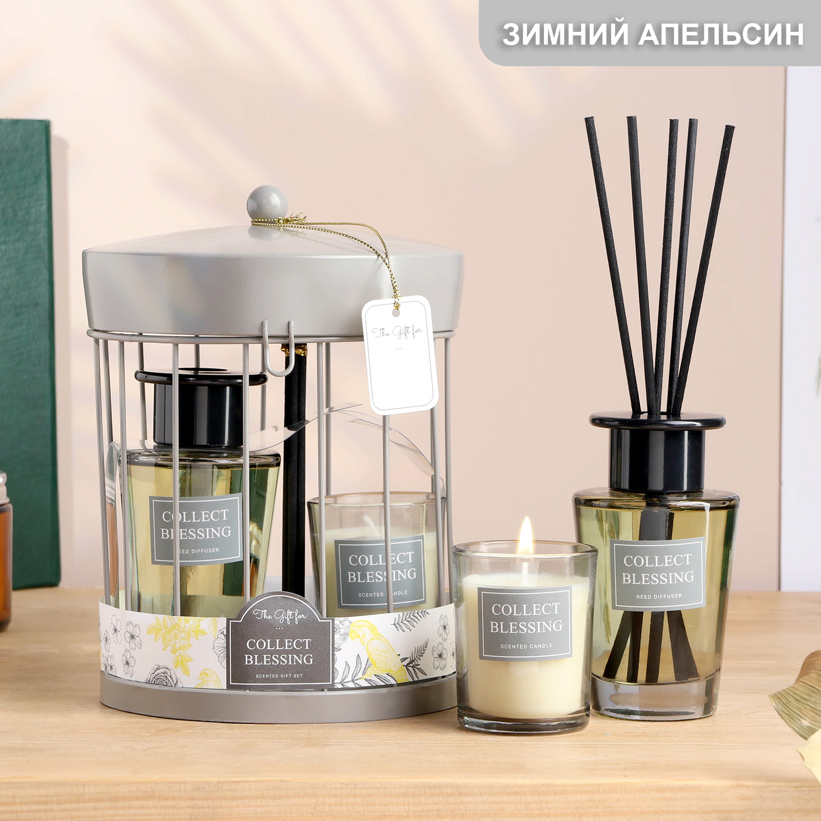Набор в клетке "ароматный дуэт" диффузор 100 мл и свеча 5х6 см, зимний апельсин. Объём, мл: 100 Вид ароматизатора: Диффузор Аромат: Апельсин