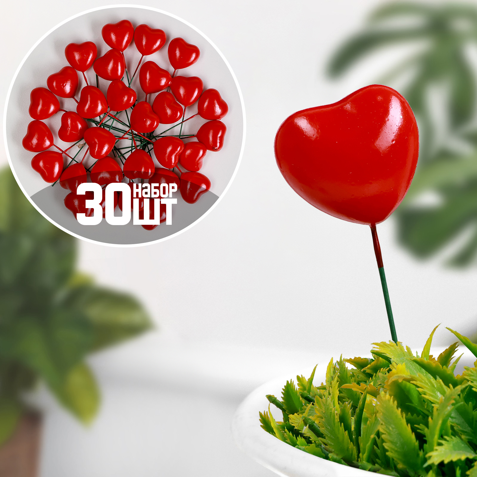 Топперы для творчества Take It Easy «сердечко», набор 30 шт., в цветы, кашпо, красное, 3 1.5 2 см