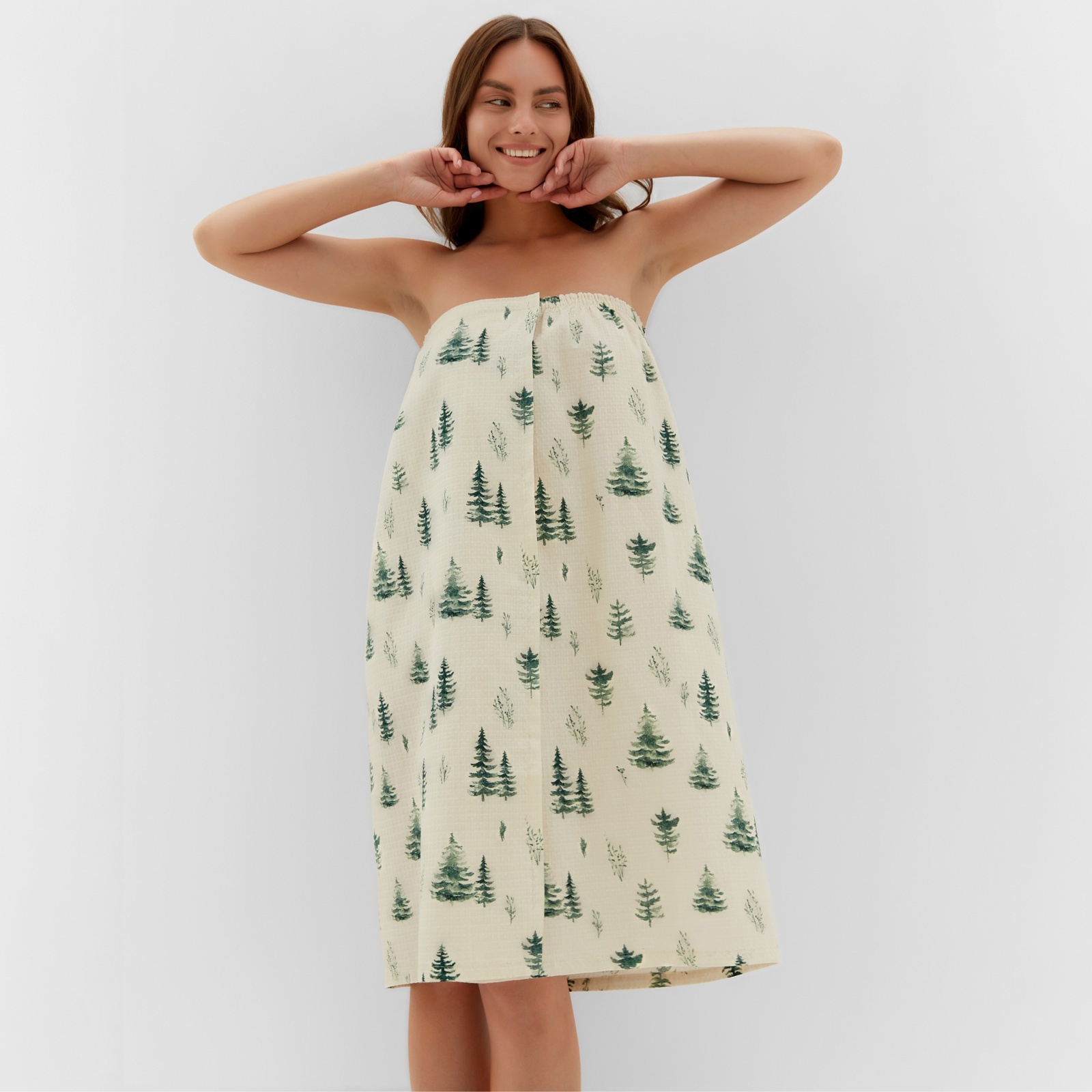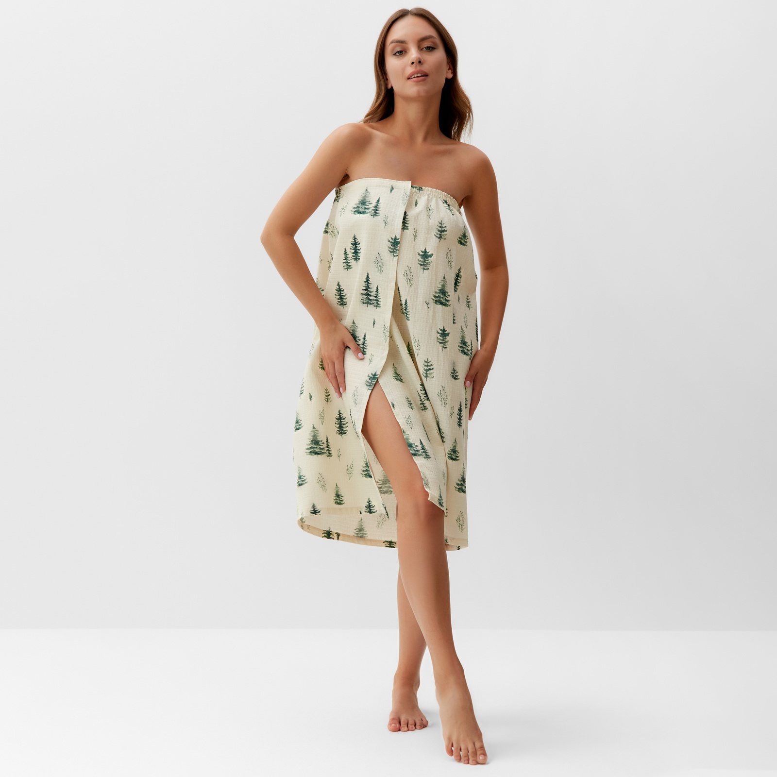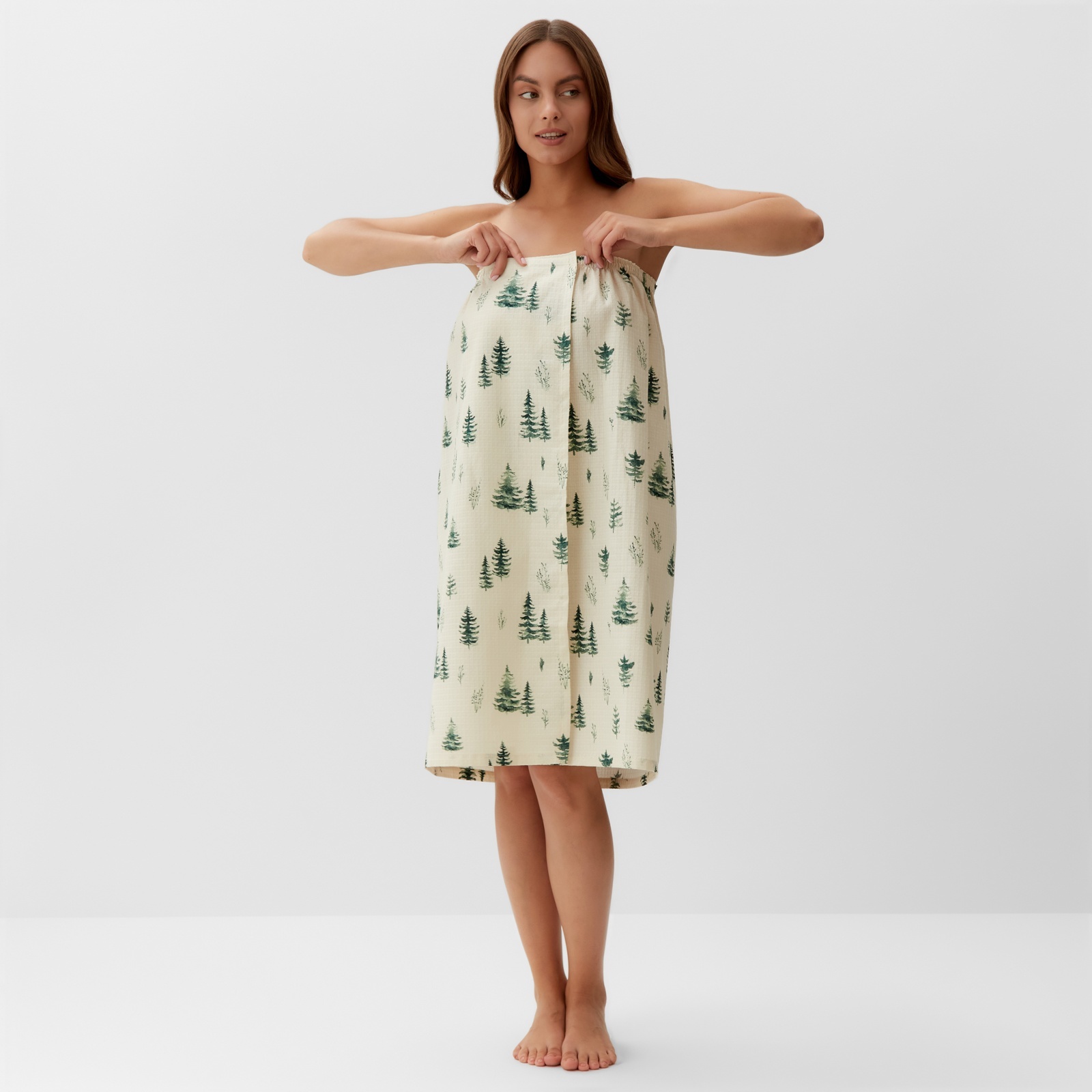 Полотенце для бани ёлочки жен. парео, 80х144 см, хл., ваф. полотно