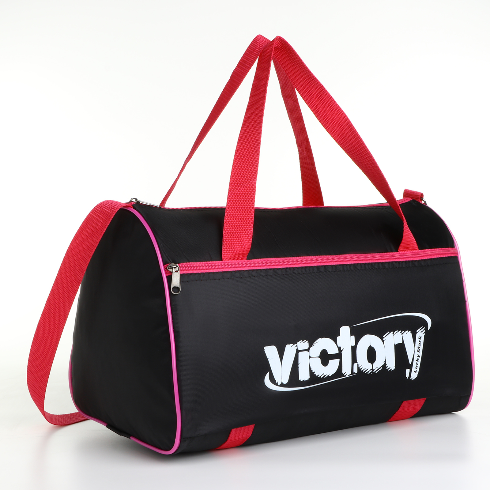 Сумка спортивная на молнии, наружный карман, длинный ремень, маленький размер, цвет чёрный