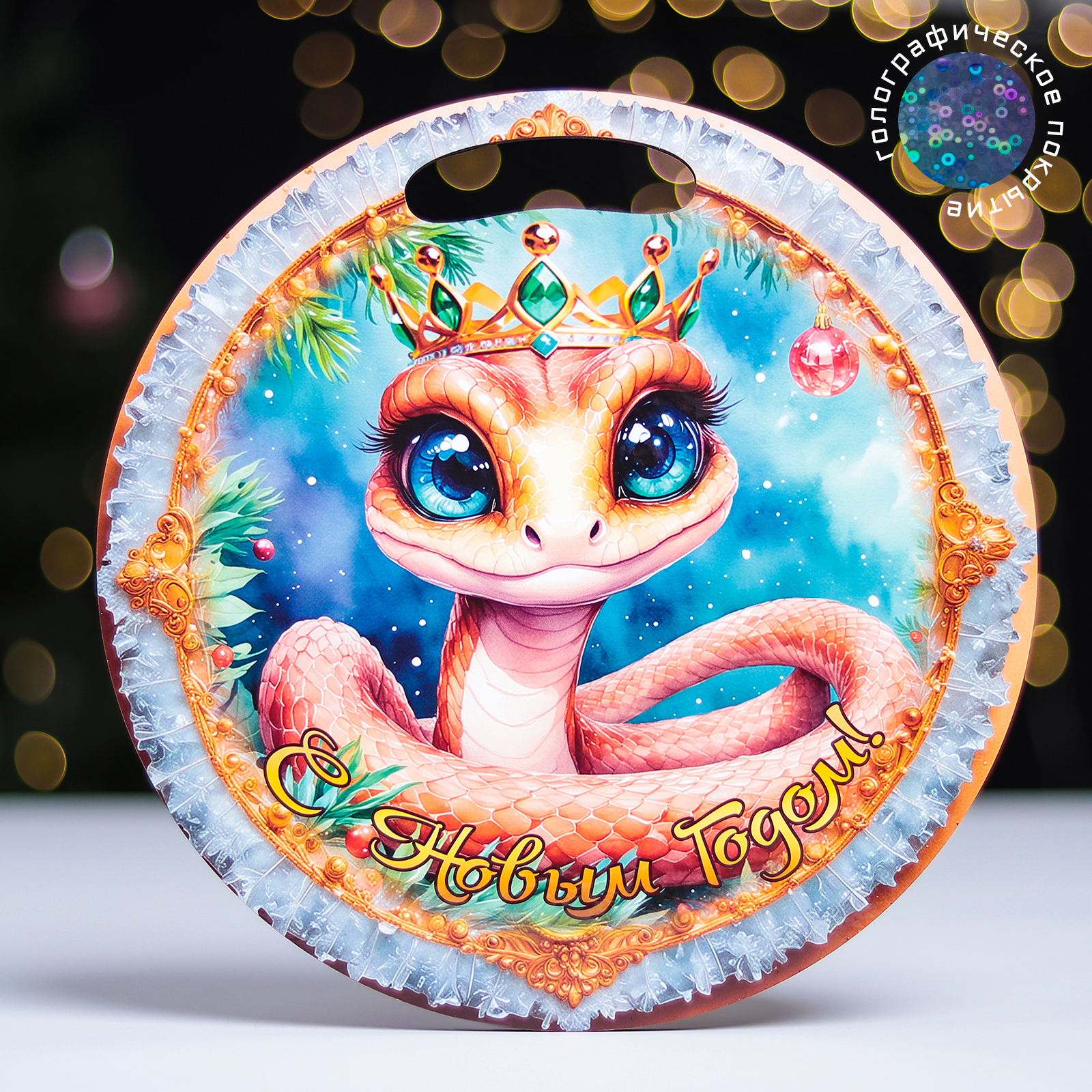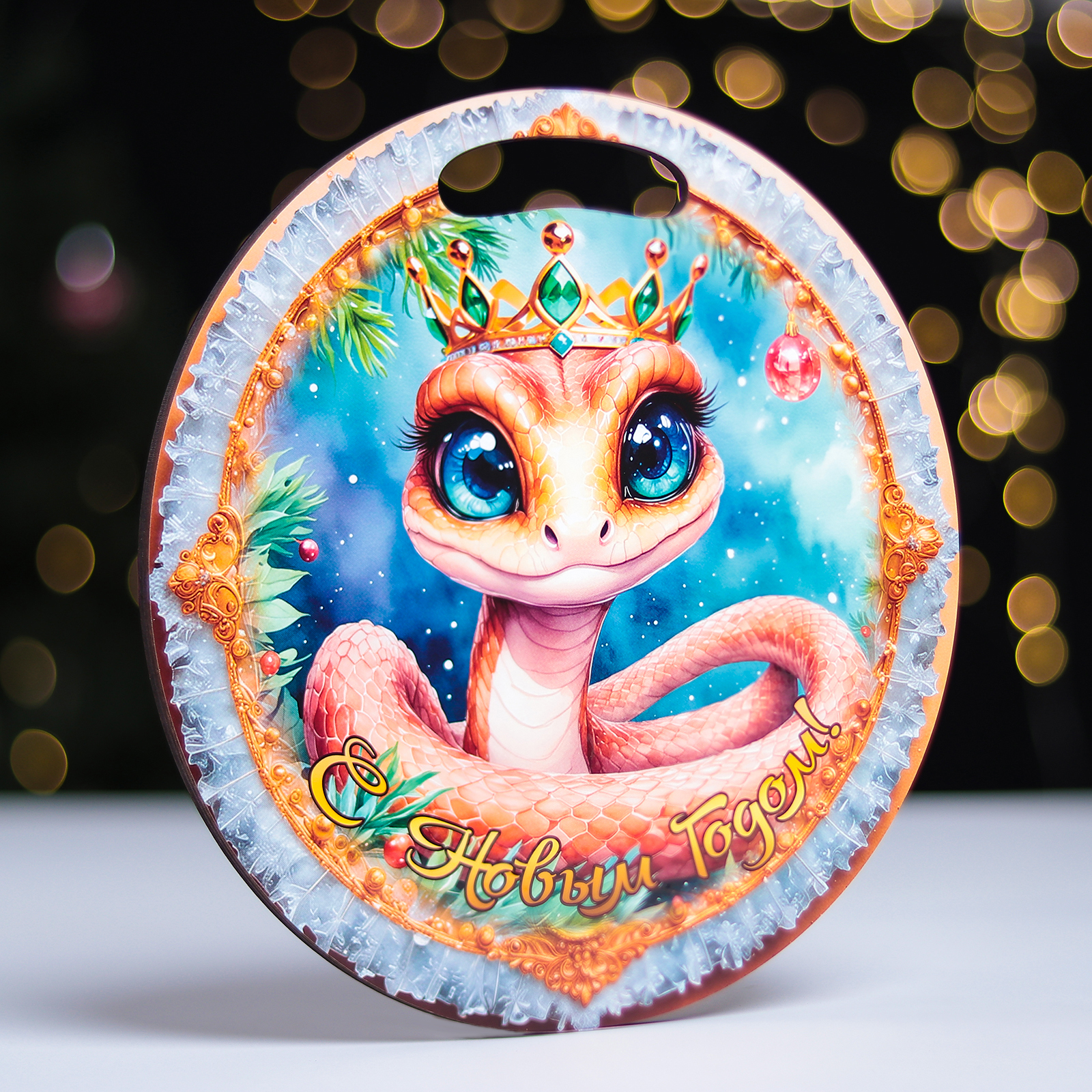 Доска разделочная сувенирная "символ года.змея с короной", D-25,5см