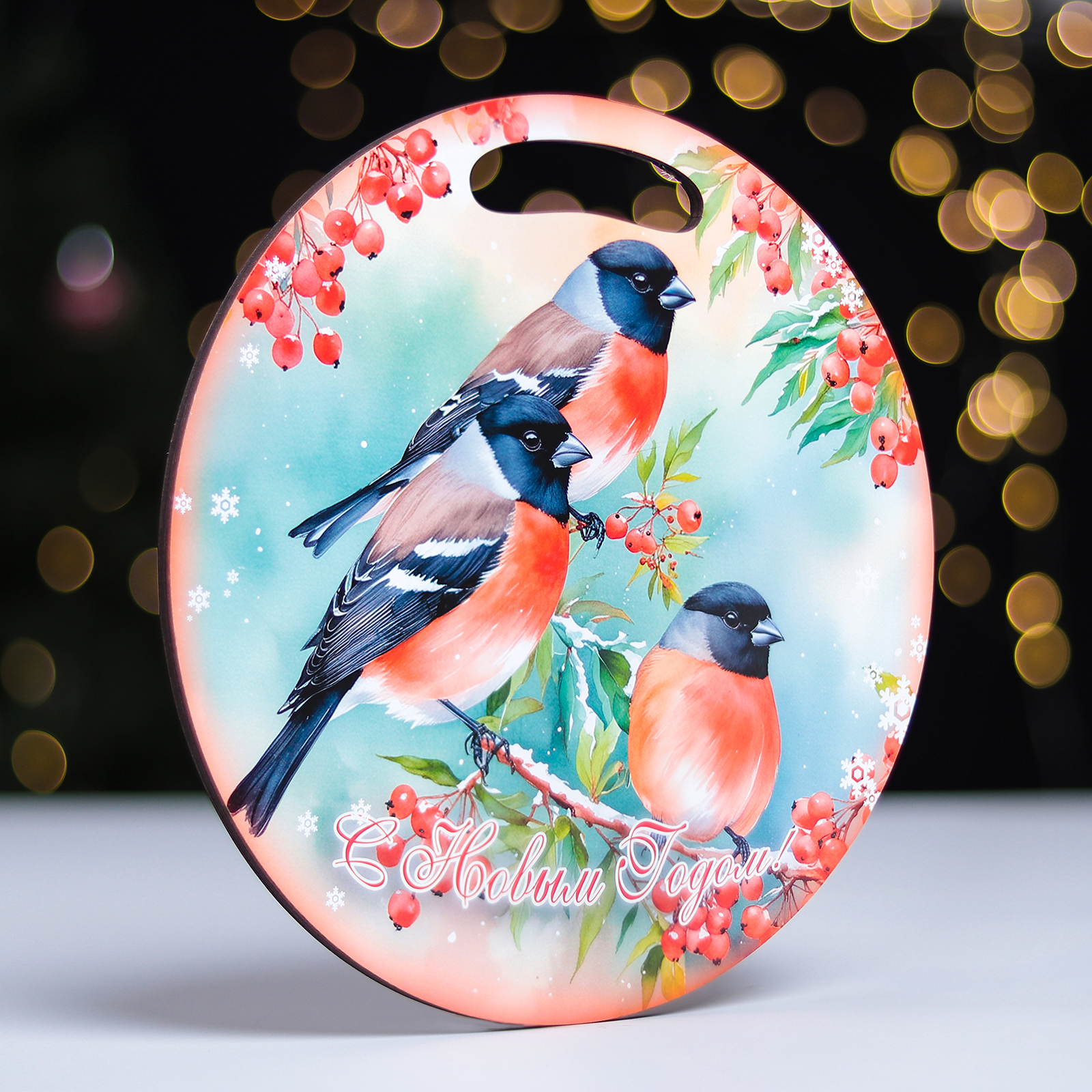 Доска разделочная сувенирная "птицы.с новым годом", D-25,5см