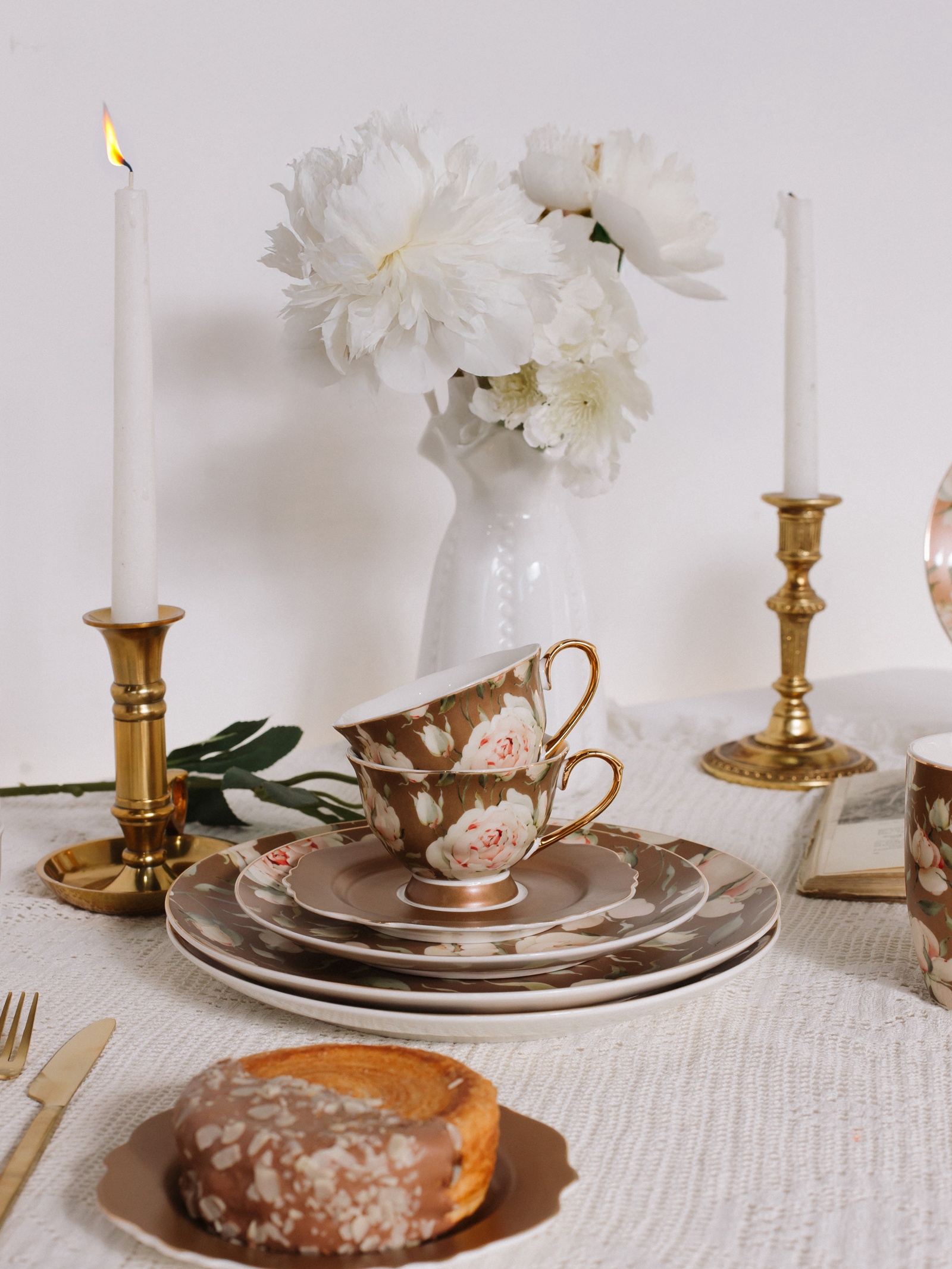 Чайная пара Wy Pink Ohara, фарфор, 220 мл, бежевая