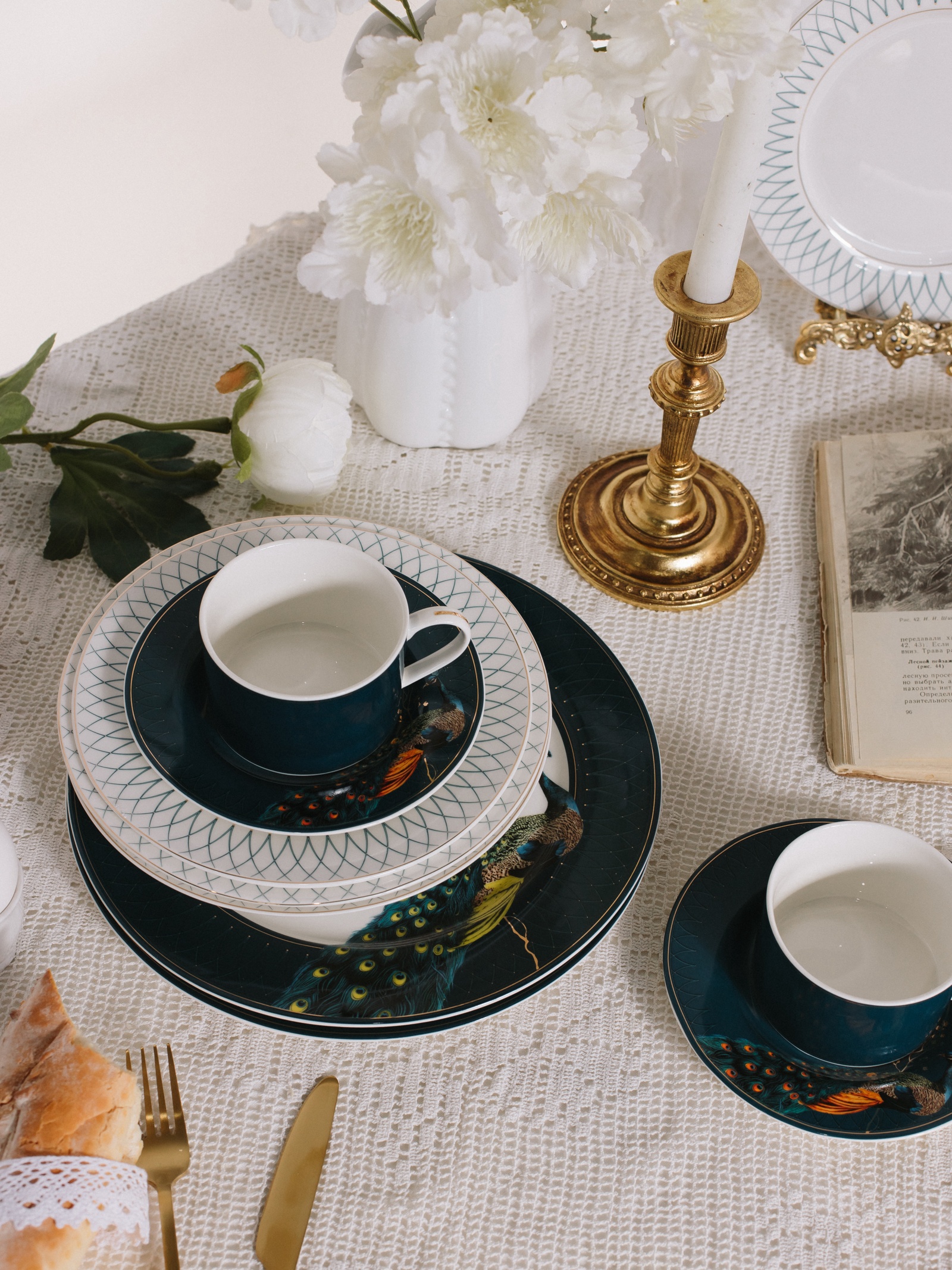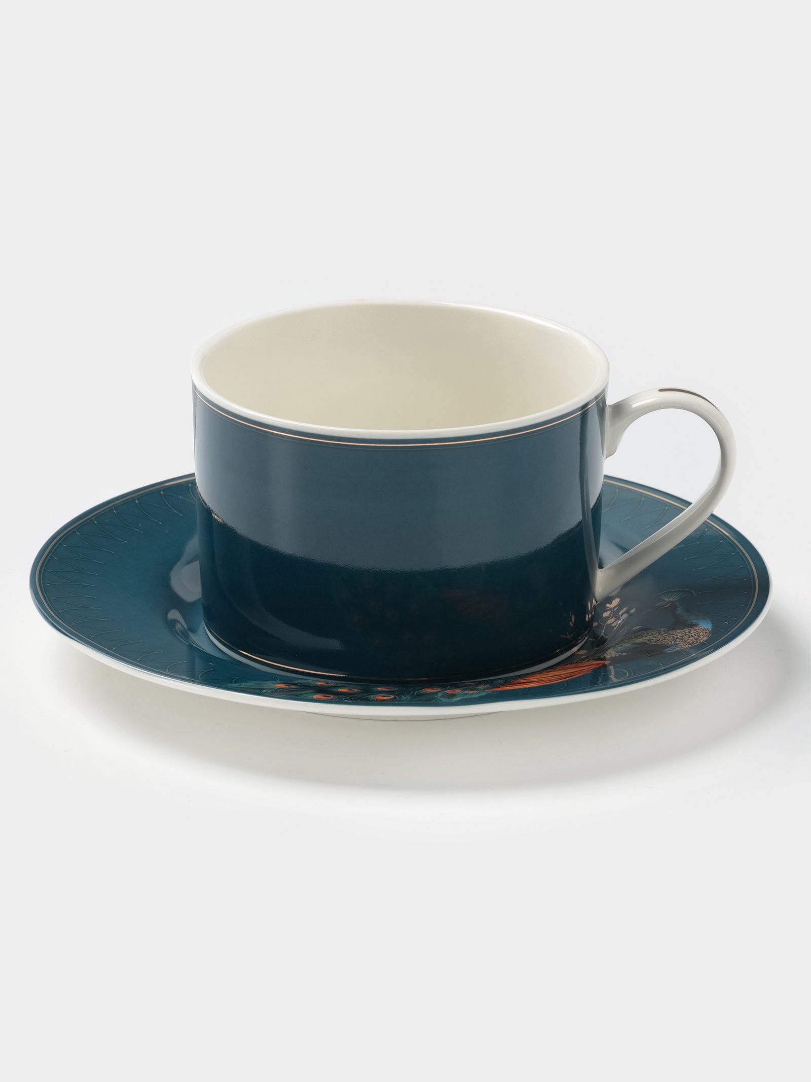 Чайная пара wy royal bird, фарфор, 220 мл, бирюзовая. Чайная пара WY Royal bird, фарфор, 210 мл, бирюзовая Бирюзовая Чайная Пара Royal Bird: Полёт Грации в Ваших РукахОщутите легкость и изящество с этой восхитительной бирюзовой чайной парой из тонкого фарфора, украшенной изысканным изображением королевской птицы. Почему эта чайная пара станет вашим сокровищем: Идеальный объём (210 мл) : прекрасно подходит для наслаждения любимым чаем в тишине и покое, создавая атмосферу гармонии. Премиальный фарфор: легкий, прочный и изысканный материал подчеркнет вкус и аромат вашего напитка, делая каждое чаепитие особенным. Тематика Royal Bird: элегантный рисунок с изображением птицы привносит нотку аристократизма и утонченности в вашу чайную церемонию. Нежный бирюзовый цвет: наполнит ваш день свежестью и спокойствием, напоминая о лазурных берегах и безоблачном небе. Особенности, которые делают её неповторимой: Чайная пара на одну персону: включает чашку и блюдце, создавая гармоничный и завершенный ансамбль. Технология Деколь: гарантирует долговечность и насыщенность красок рисунка. Гладкая текстура: приятна на ощупь и легка в уходе. Бережный уход: для сохранения красоты рисунка рекомендуется ручная мойка. Не предназначена для использования в микроволновой печи. Подарите себе минуты истинного наслаждения: Эта бирюзовая чайная пара – это не просто посуда, а возможность ощутить красоту и гармонию в каждой детали. Она наполнит ваш дом уютом и элегантностью, а чаепитие превратит в изысканный ритуал.  развернуть описание ▼