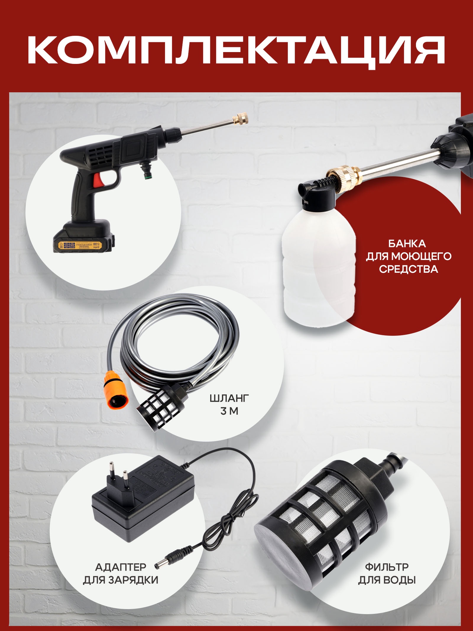 Мойка высокого давления аккумуляторная тундра, li-ion 20 в, 2 ач, 28 бар, шланг 3 м. Откройте новые возможности очистки! Портативная аккумуляторная мойка высокого давления ТУНДРА — это практичное решение для ухода за автомобилем, садовой мебелью и внешними поверхностями. Беспроводная свобода: Забудьте о необходимости в розетке, благодаря аккумулятору Li-ion 20 В. Мойка обеспечивает мобильную и удобную уборку без лишних кабелей.Эффективное давление — 28 бар: Устройство легко справляется с загрязнениями, будь то пыль на автомобиле или грязь на дорожке. Высокое давление гарантирует качественную очистку всех поверхностей.Забор воды из любой ёмкости: Возможность использования воды из любых доступных резервуаров делает мойку универсальным помощником в любом месте, где вам нужна чистота.Удобство использования: Компактный 3-метровый шланг способствует маневренности, а легкий дизайн упрощает транспортировку и использование в различных условиях.Идеальный компаньон в уходе за домом: Эта моечная установка подойдет как для опытных пользователей, так и для новичков, желающих поддерживать порядок в своем окружении. Превратите уборку в удовольствие с надежной помощницей от ТУНДРА. Независимо от того, улучшаете ли вы состояние автомобиля или освежаете внешний вид дома, мойка справится с поставленной задачей быстро и эффективно! Превосходное дополнение в арсенал каждого заботящегося о чистоте и порядке. Гарантийный срок, мес.:12|Напряжение, В:20|Рабочее давление, бар:28|Производительность, л/ч:150|Возможность забора воды из ёмкости:Да|Страна:Китай  развернуть описание ▼