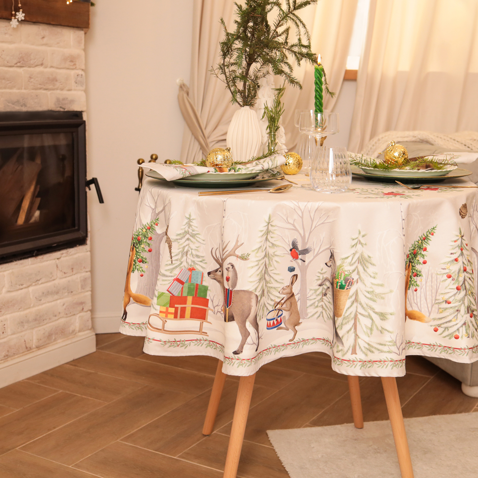 Скатерть этель "новогоднее чудо" D=220см +/-3см с вгмо, 100%хл, саржа 190гр/м2