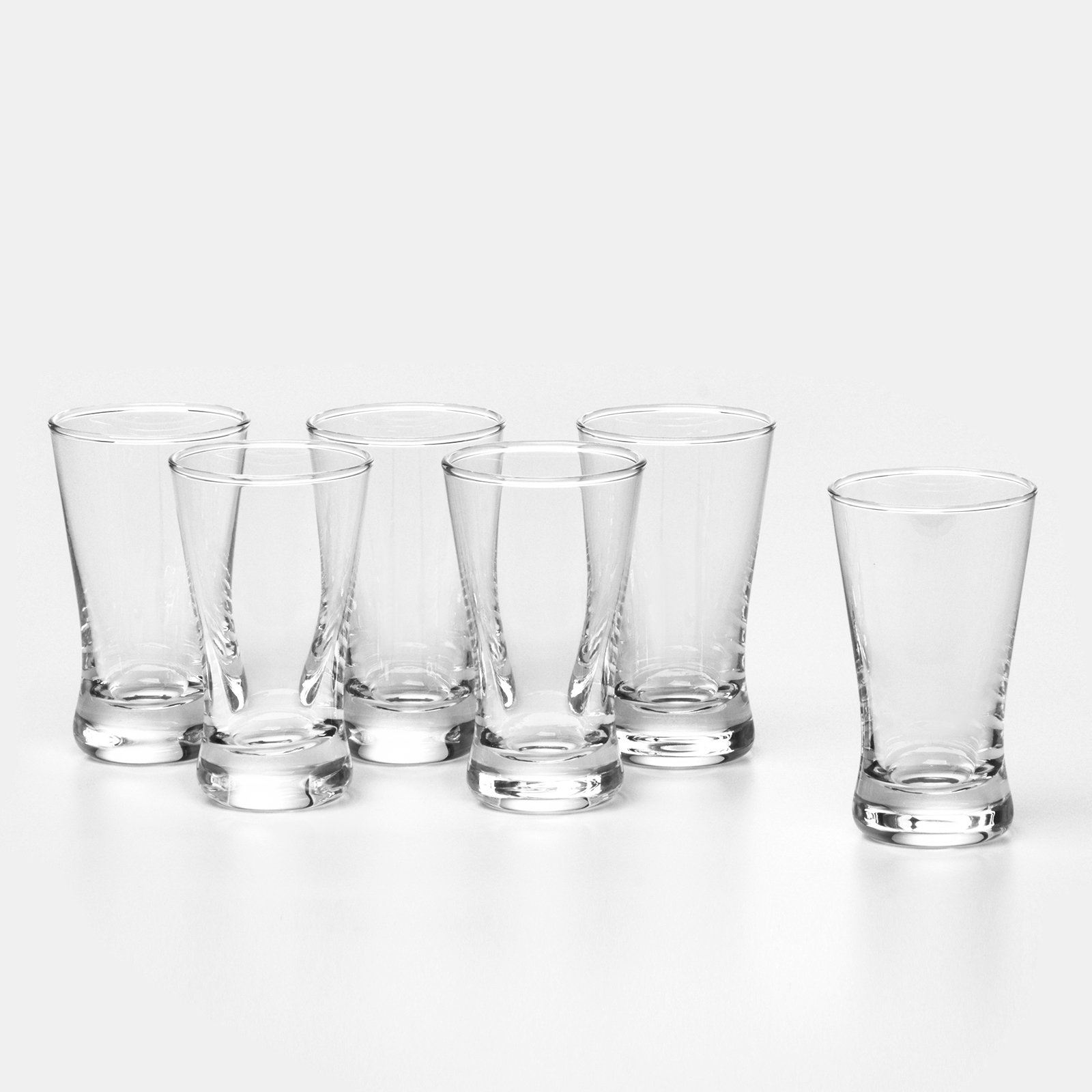Набор стеклянных стаканов для вина, 50 мл. Преимущества:практичность и долговечность;экологическая безопасность;не впитывает запахи;изящность и привлекательность. Эксплуатация:мыть губкой или специальной мягкой щеткой;осторожнее с посудомоечной машиной - желательно мыть стеклянные тарелки, бокалы при температуре чуть выше комнатной;после мытья поместить на решетчатую стойку, чтобы вода стекала вниз;полировать нужно мягким материалом без ворса, одним полотенцем взять предмет, другим полировать. Температурное ограничение: Нет  развернуть описание ▼