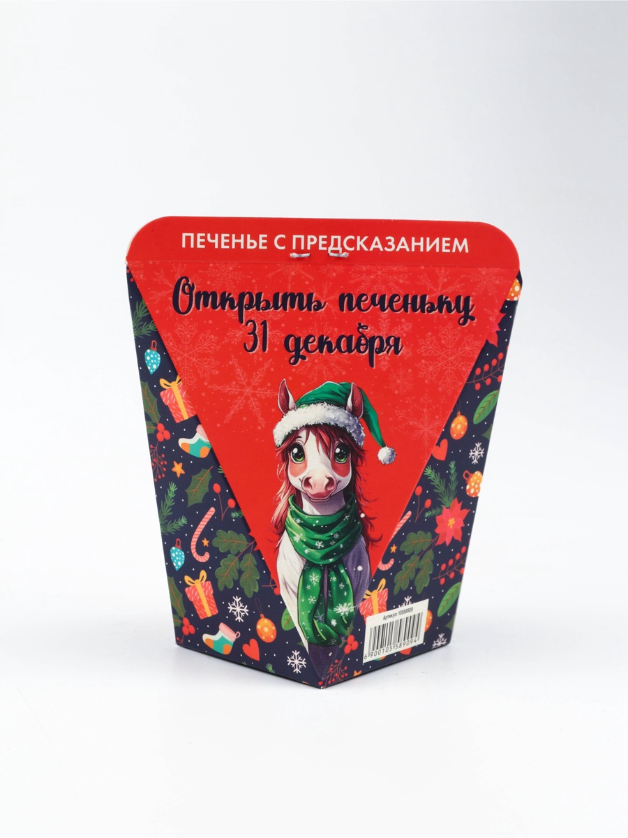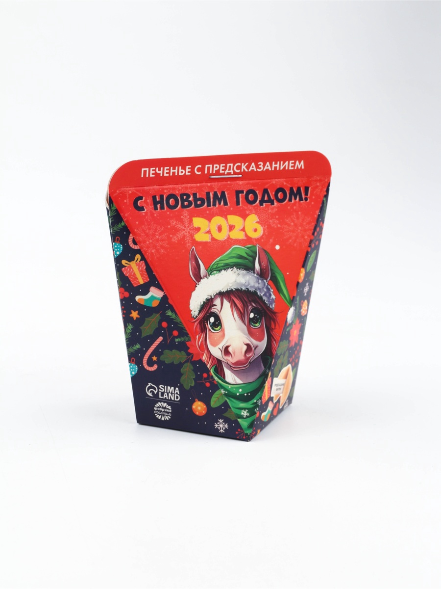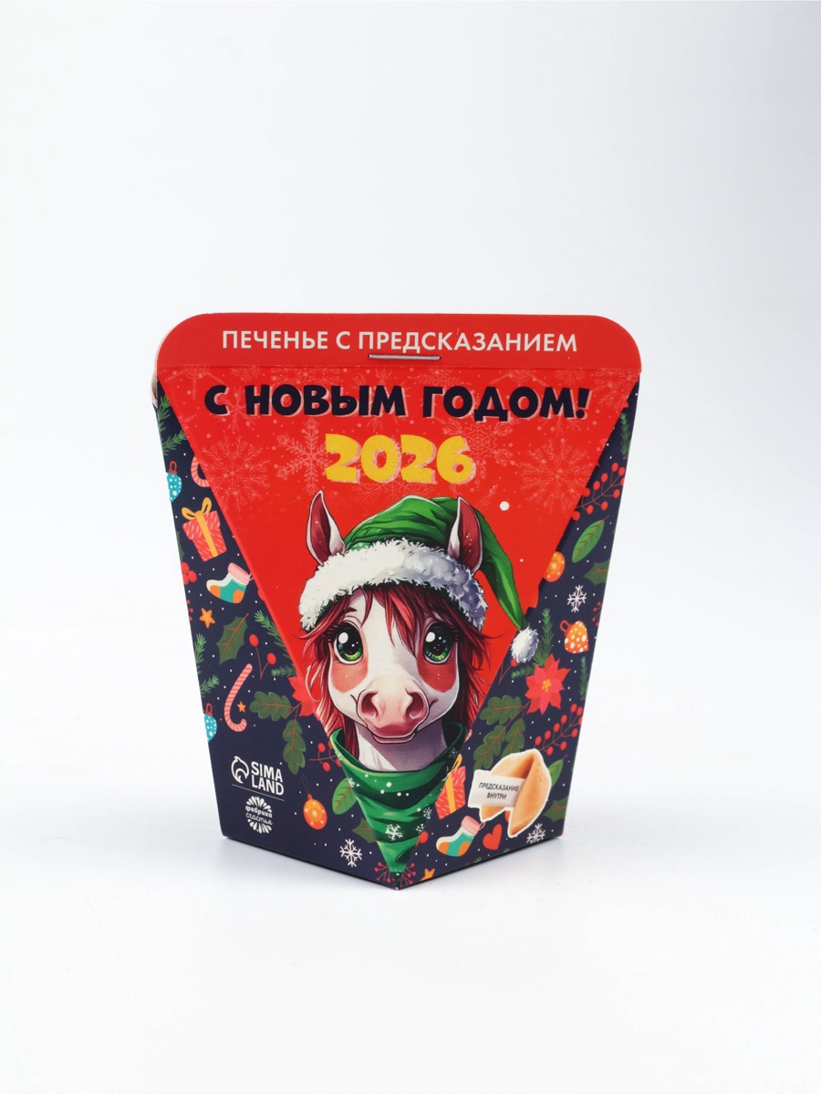 Печенье новогоднее с предсказанием «с новым годом 2026», 1 шт., 6 г. Погрузитесь в океан радости и смеха с печеньем с предсказанием С Новым Годом 2025! Каждое печенье не только радует своим вкусом, но и становится ключом к неожиданным сюрпризам. Это угощение создано именно для тех, кто ценит счастливые мгновения и весёлое времяпровождение! С Новым Годом 2025 — это хрустящее печенье со вкусом ванили. Внутри ждёт оригинальное предсказание, готовое развеселить и вдохновить, подстегнув вашу фантазию и подняв настроение. Узнайте, что готовит вам судьба, и делитесь своими впечатлениями с друзьями, создавая атмосферу веселья и дружеского общения. Коробка, в которой упаковано это чудесное печенье, украшена ярким изображением символа 2025 года — змеи, что делает его идеальным подарком на Новый год и Рождество. Печенье С Новым Годом 2025 отлично подойдёт для праздничного стола, корпоративов, вечеринок или просто для уютного вечера в кругу близких. Угощая своих друзей этими печеньями, вы дарите им не только сладость, но и порцию счастья и улыбок. Пусть каждый кусочек станет началом новой радостной истории и источником вдохновения для весёлых свершений! Вес нетто, г:6|Тематика:Новогодняя|Вид упаковки:Коробка картонная|Тематика праздника:Рождество|Тематика праздника:Новый год|Вид:С предсказанием|Тип:Пшеничное|Страна:Россия  развернуть описание ▼