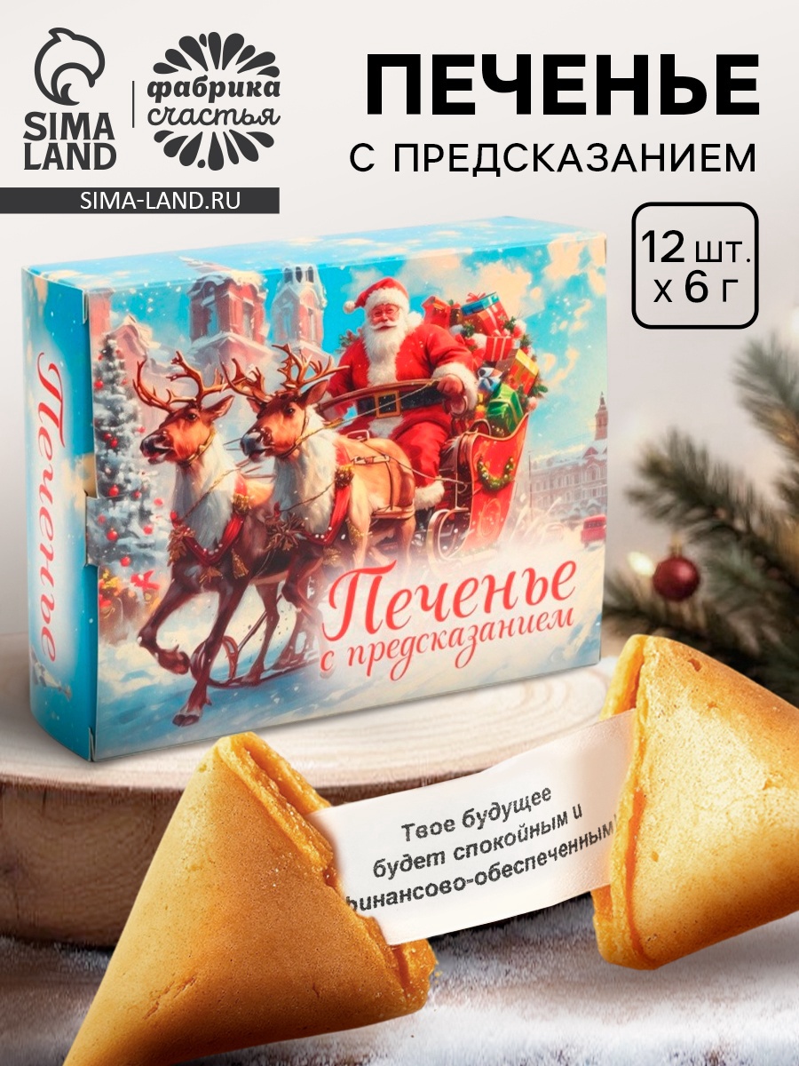 Печенье с предсказанием «с новым годом 2026», 84 г. Печенье песочное с предсказанием. Состав: мука пшеничная в/с, растительное масло, сахар-песок, вода, яичный порошок, ароматизатор, идентичный натуральному, – ванилин, пищевой краситель. Срок годности: 12 месяцев Вес нетто, г:84|Тематика:Новогодняя|Вид упаковки:Коробка картонная|Символ года:Нет|Тематика праздника:Рождество|Тематика праздника:Новый год|Вид:С предсказанием|Тип:Песочное|Страна:Россия  развернуть описание ▼