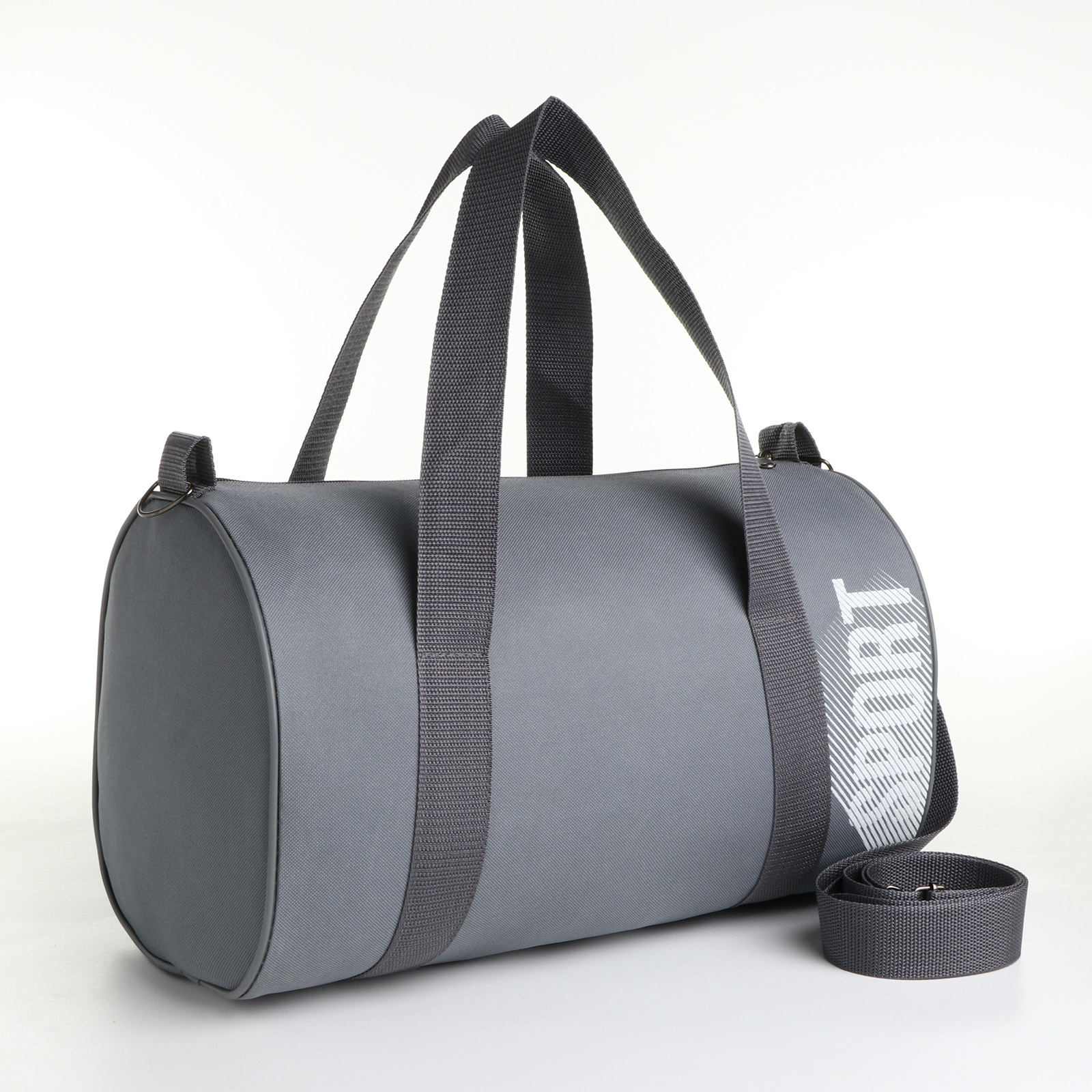 Сумка спортивная на молнии, без подкладки, длинный ремень, средний размер, цвет серый