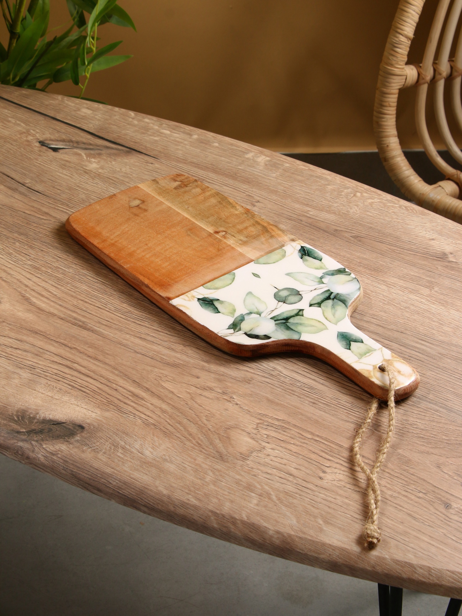 Доска разделочная прямоугольная «листья», 41x18 см, дерево манго. Цвет: Разноцветный Цвет: Бежевый Длина, см: 41 Ширина, см: 18 parts count: 0 Вид дерева: Манго Материал: Дерево Тип нанесения рисунка: Деколь Можно мыть в посудомоечной машине: Нет Особенности: Подвесная Вид: Разделочная доска Форма: Прямоугольник  развернуть описание ▼