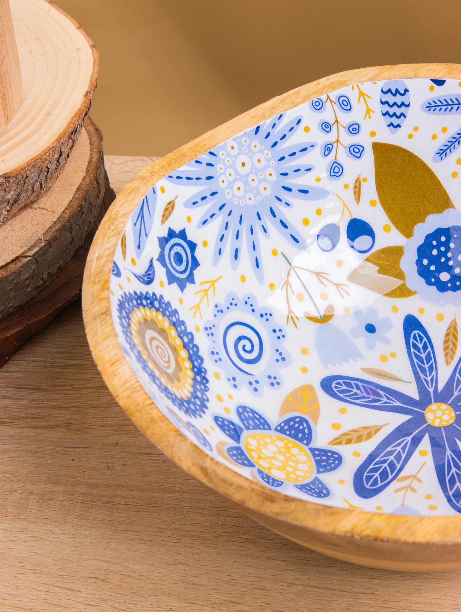 Салатник «васильки», 23x23x10.5 см, дерево манго