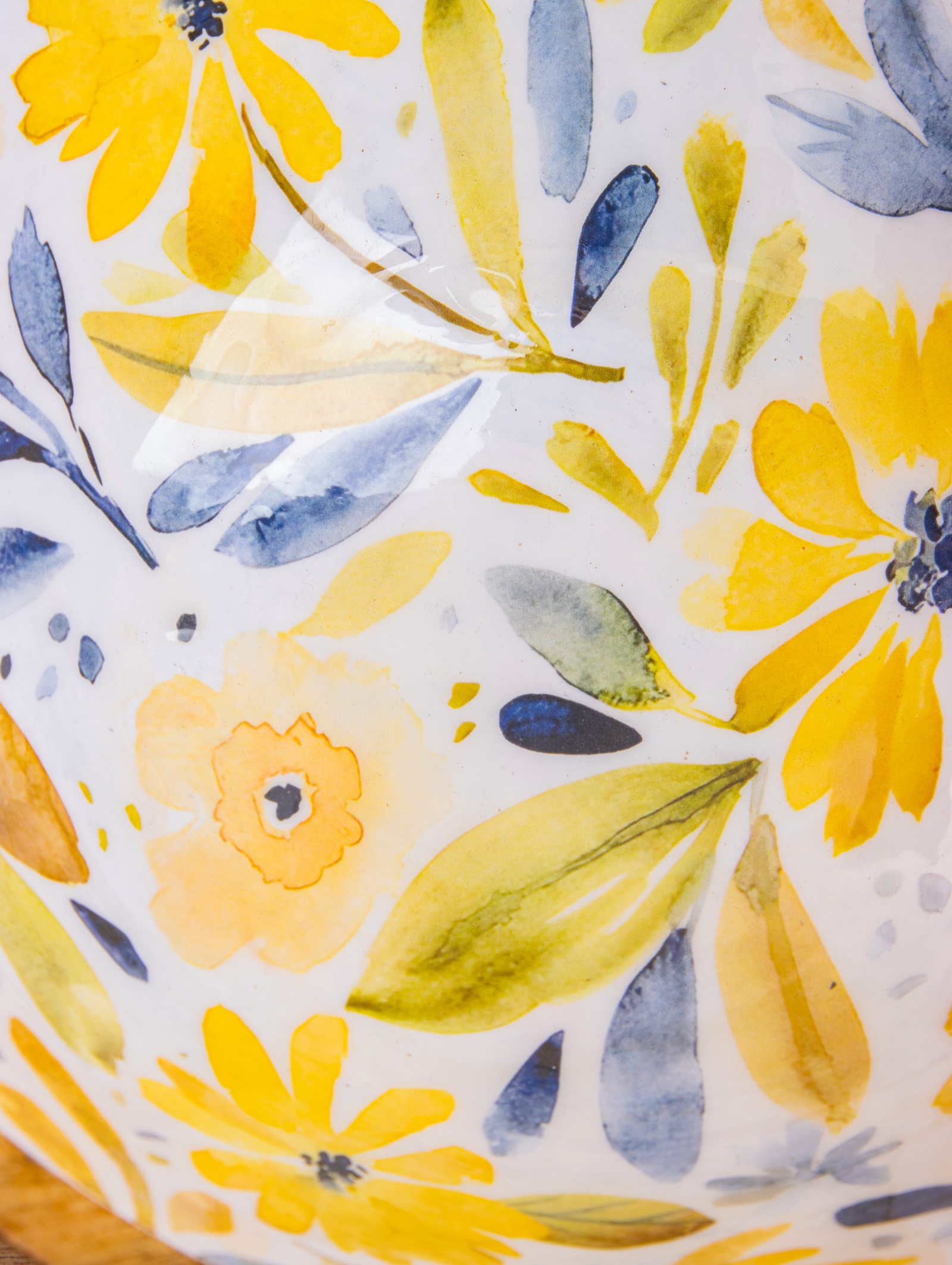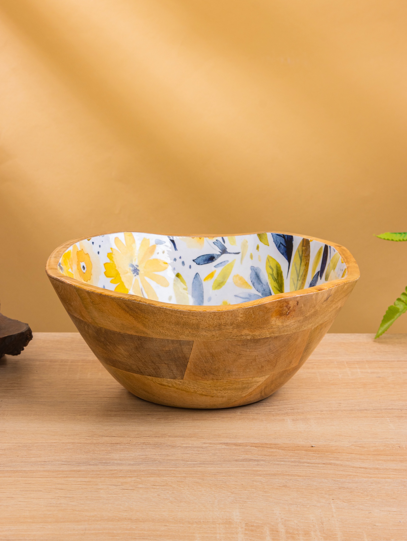 Салатник «желтые и синие цветы», 23x23x10.5 см, дерево манго