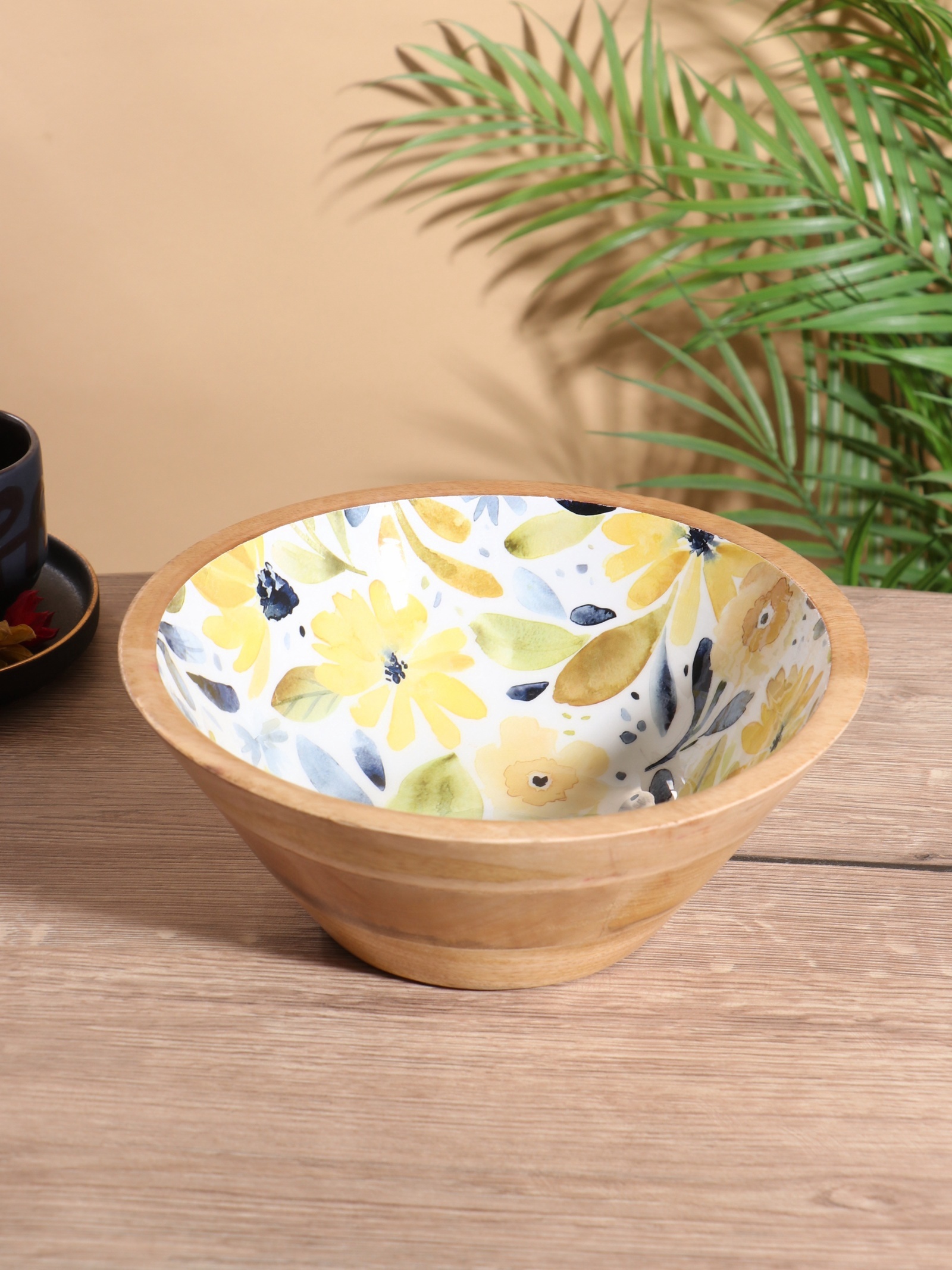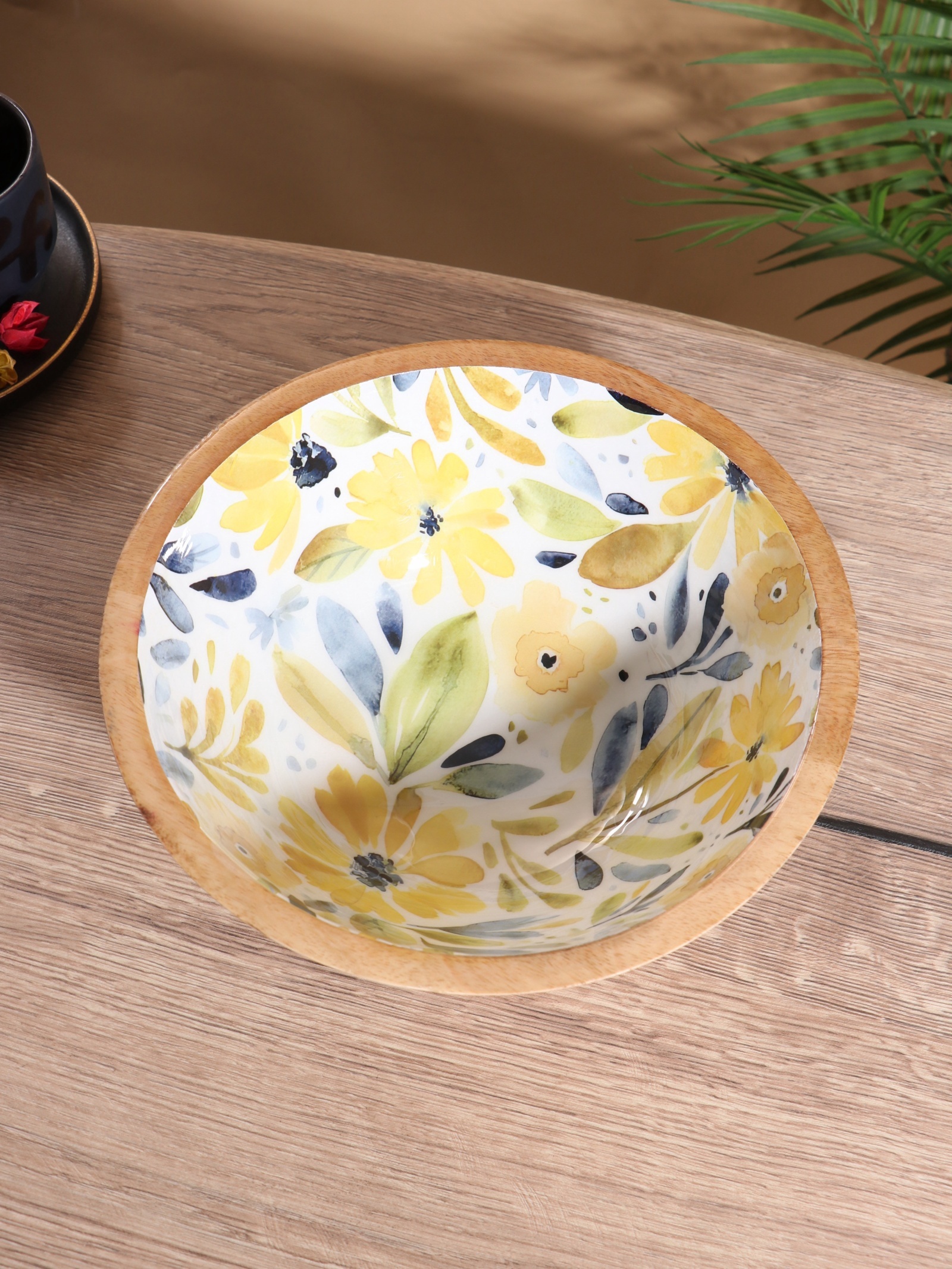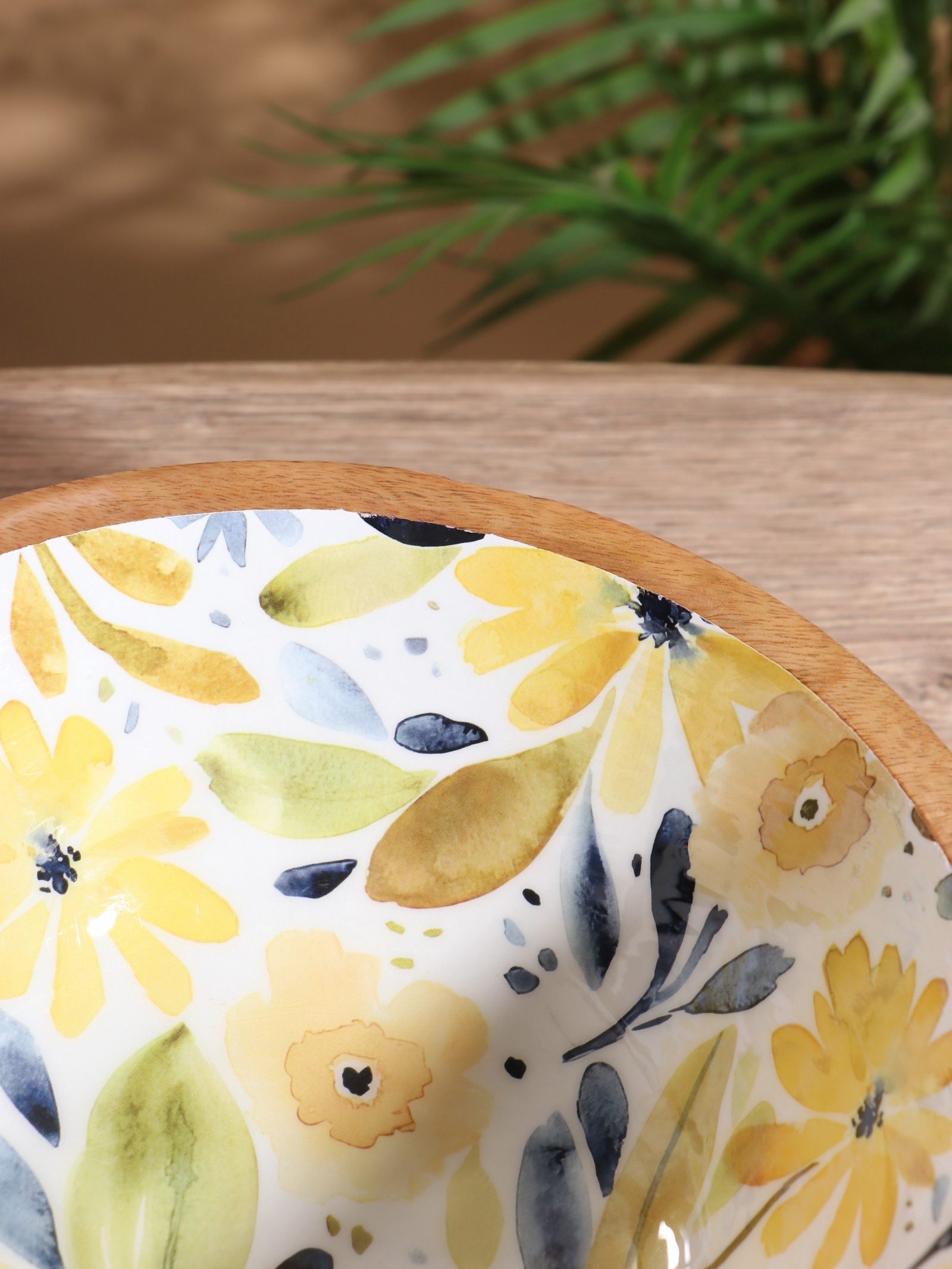 Салатник «желтые и синие цветы», 25x25x10 см, дерево манго