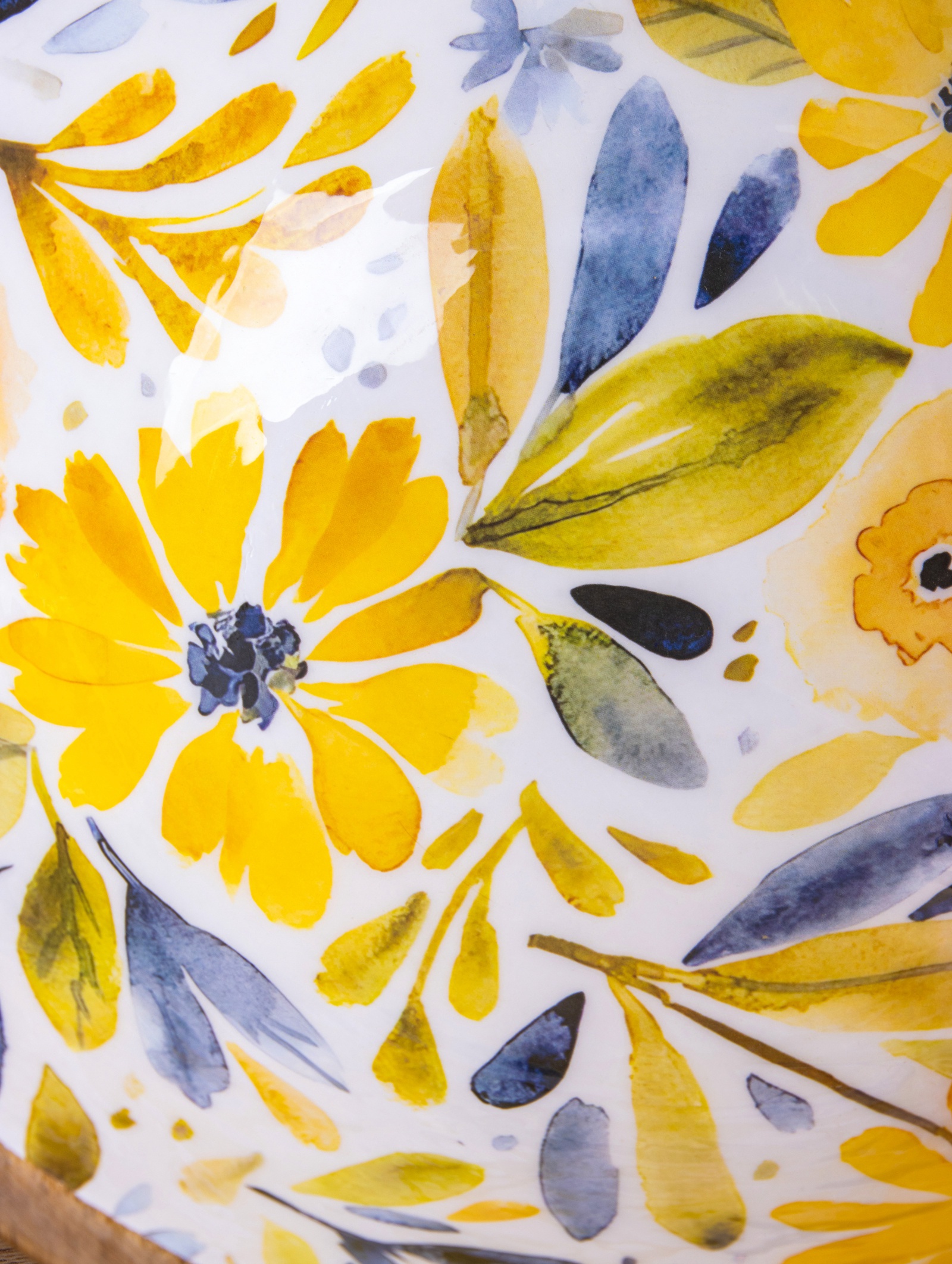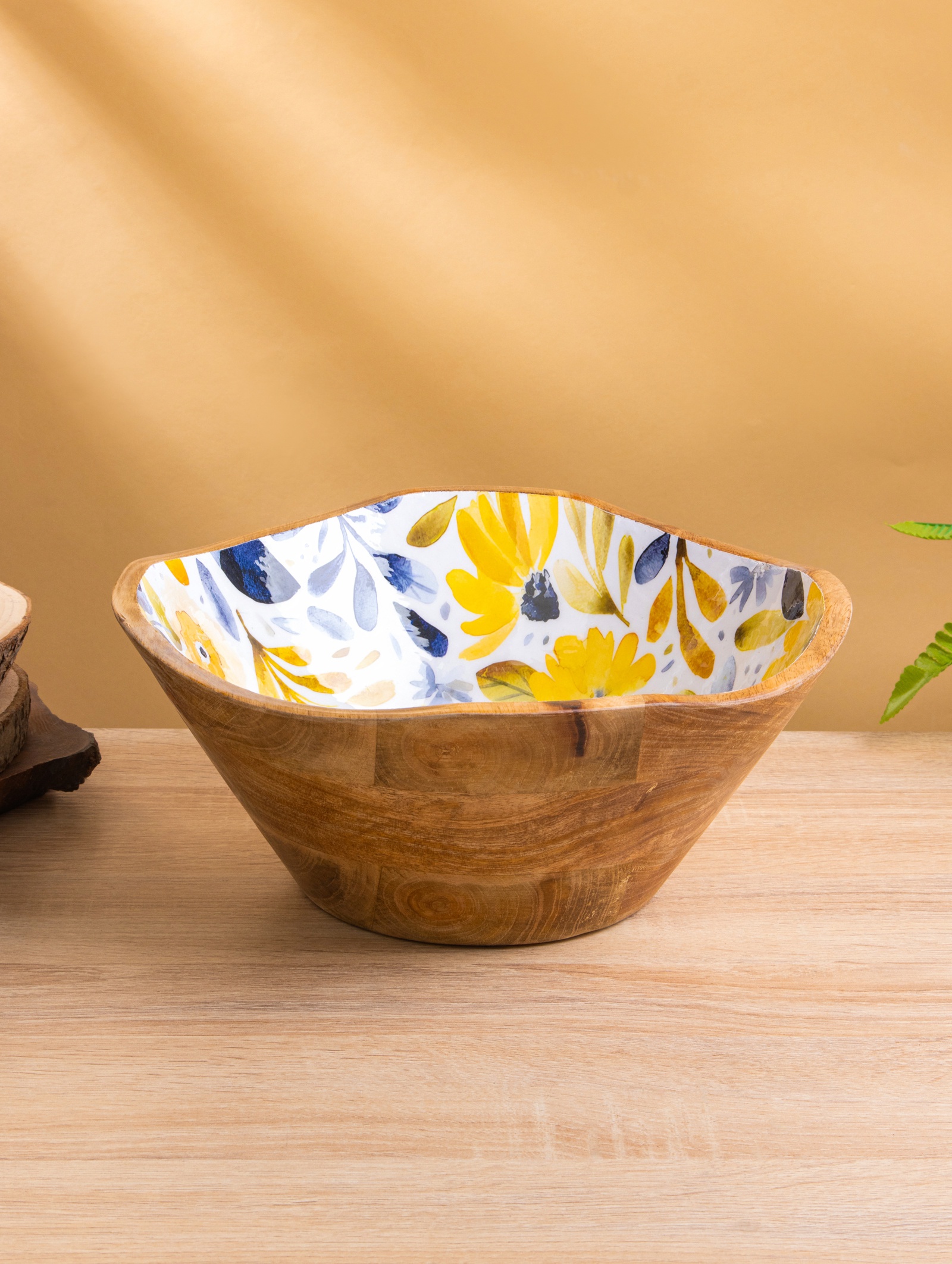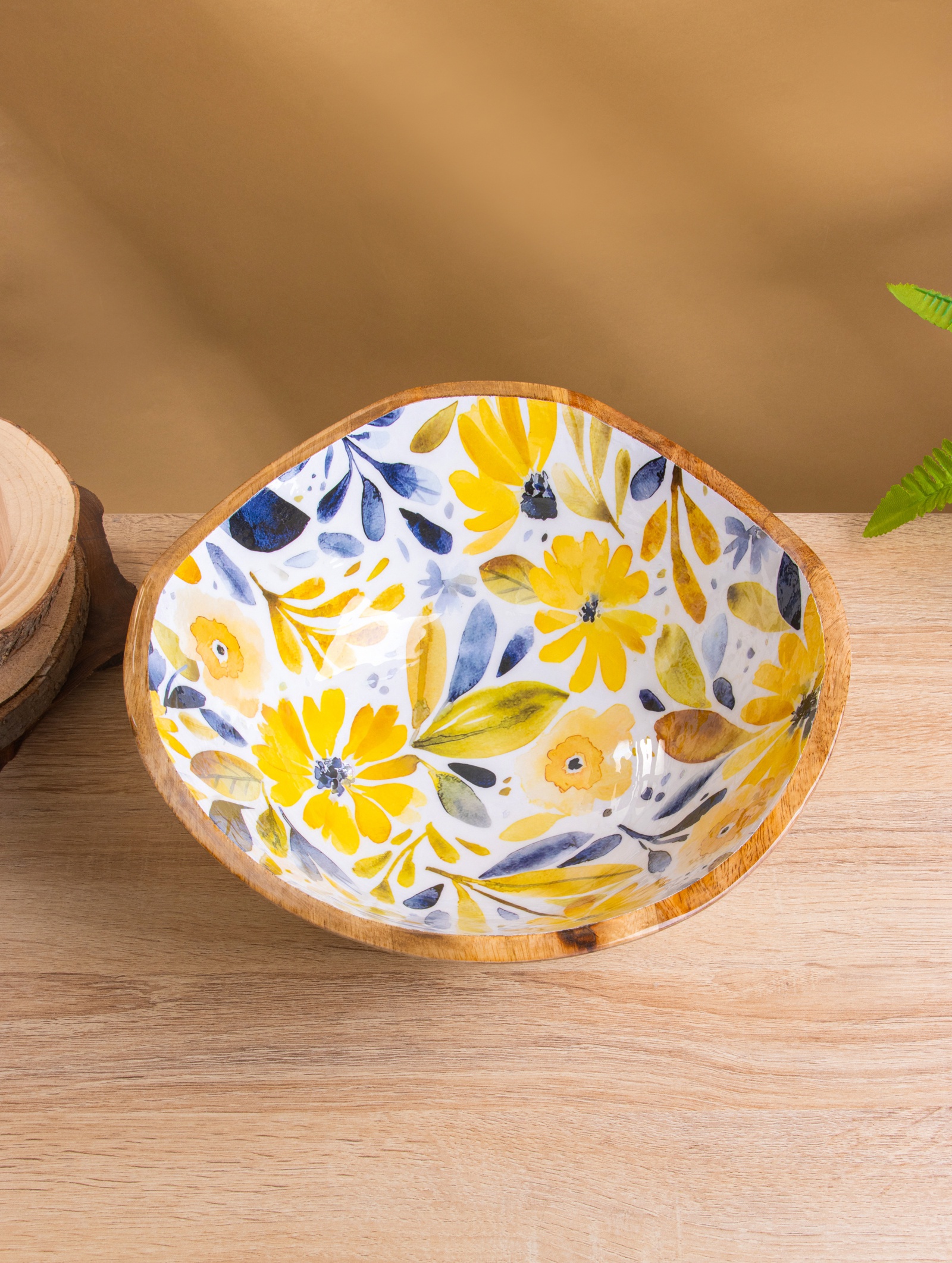 Салатник «желтые и синие цветы», 29x29x11 см, дерево манго