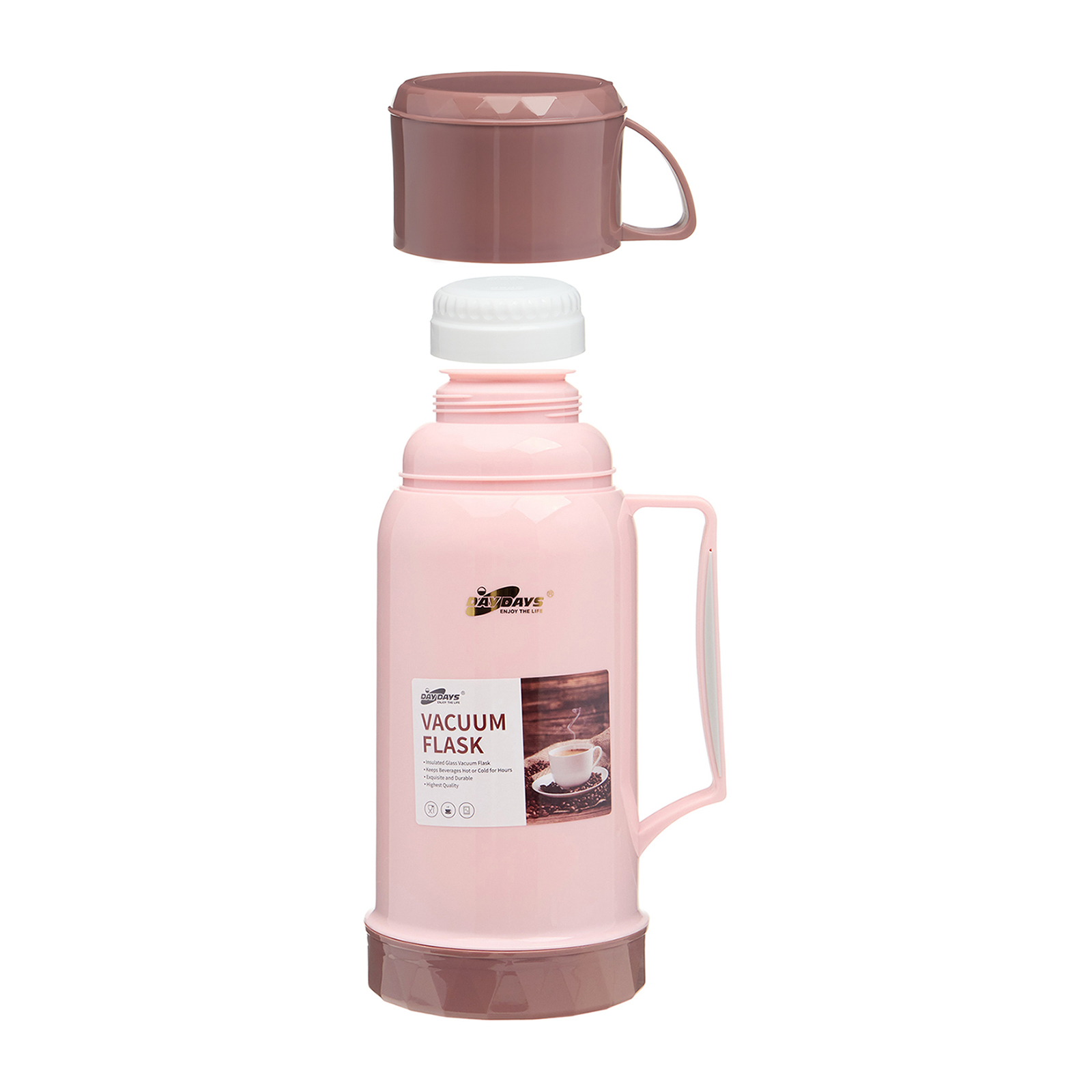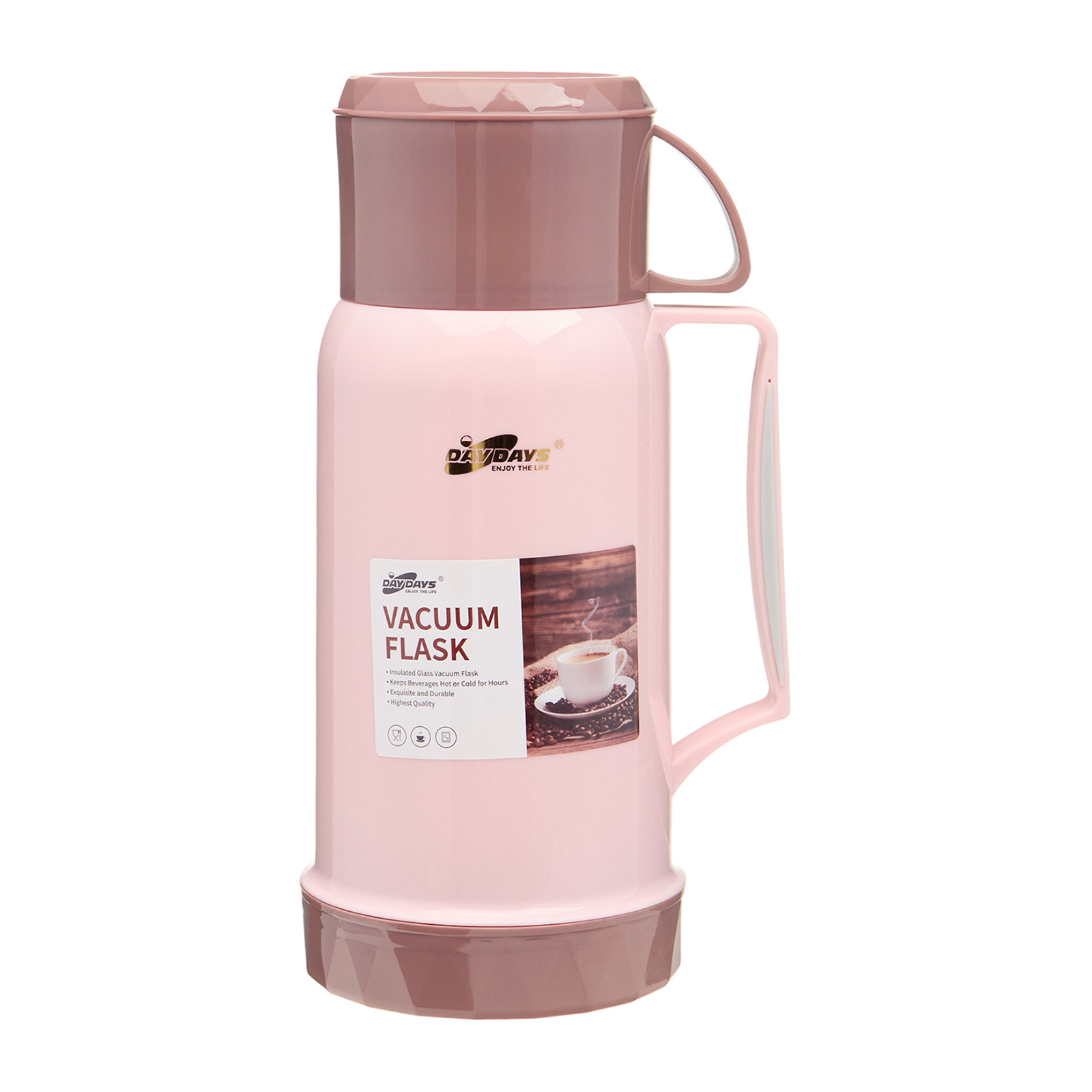 Термос 1 л, со стеклянной колбой, сохраняет тепло 12 ч, с кружкой, розовый
