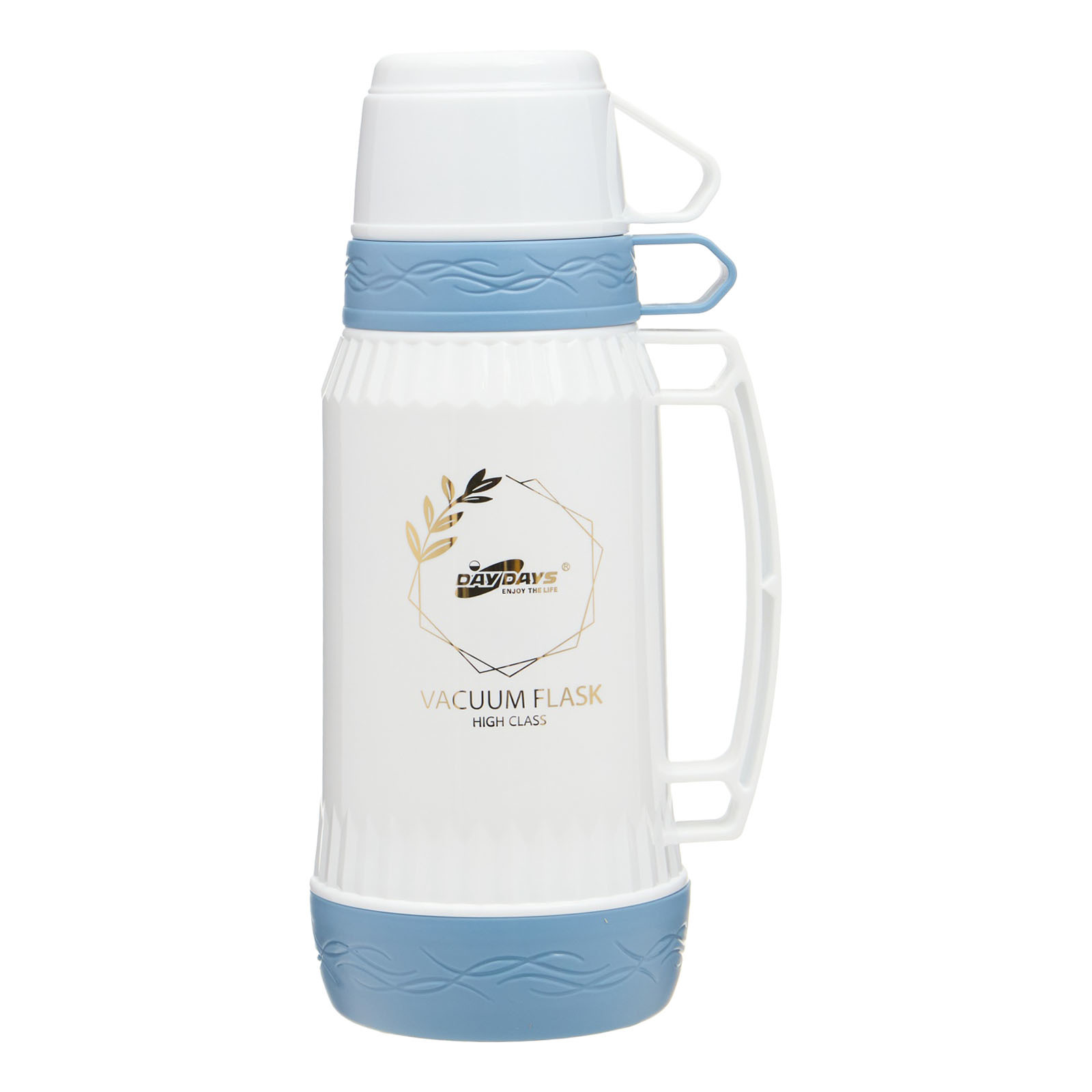 Термос 1 л, со стеклянной колбой, сохраняет тепло 12 ч, с кружкой, 30 см, синий