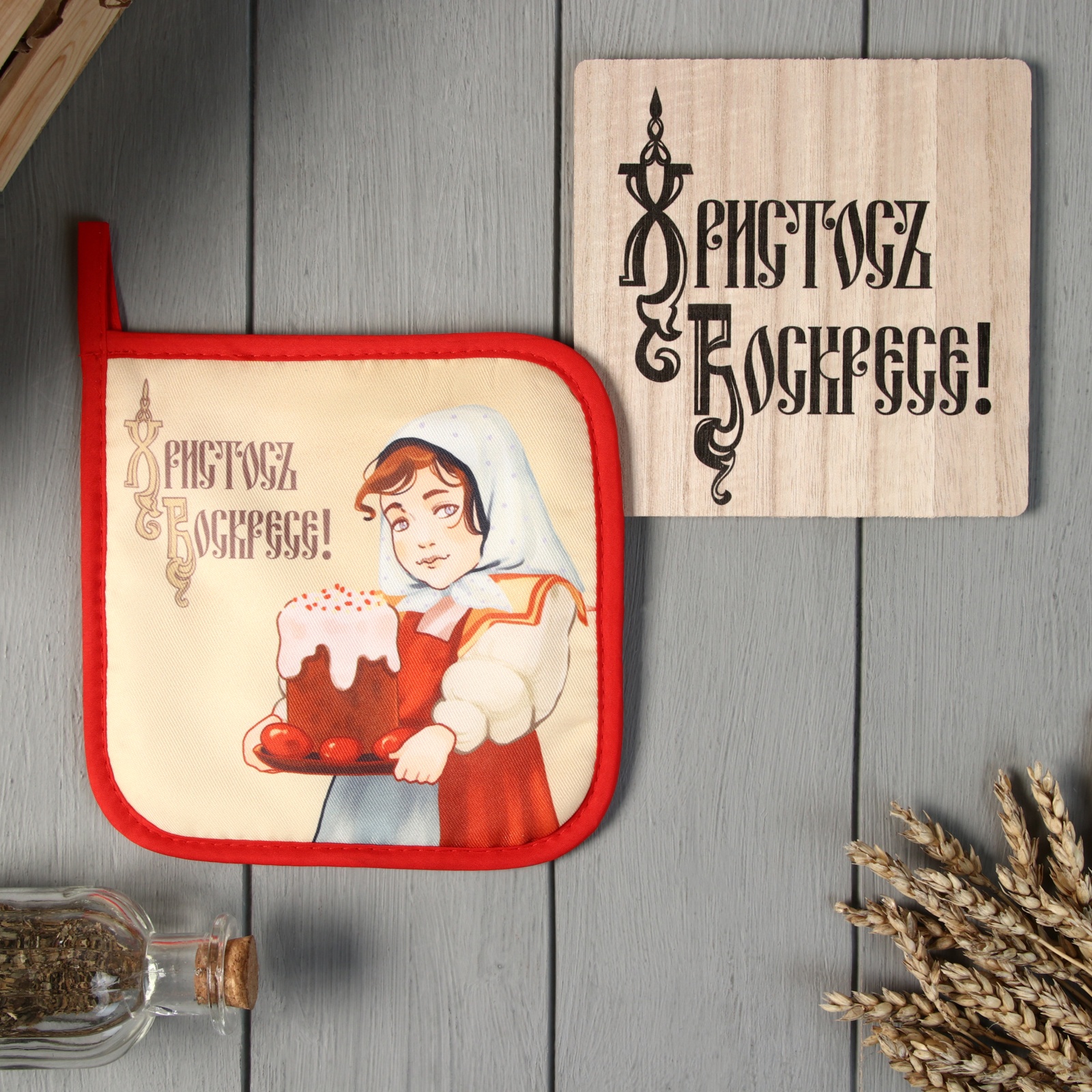 Набор кухонный «доляна, пасха»: подставка 15 15 см, прихватка 17 17 см