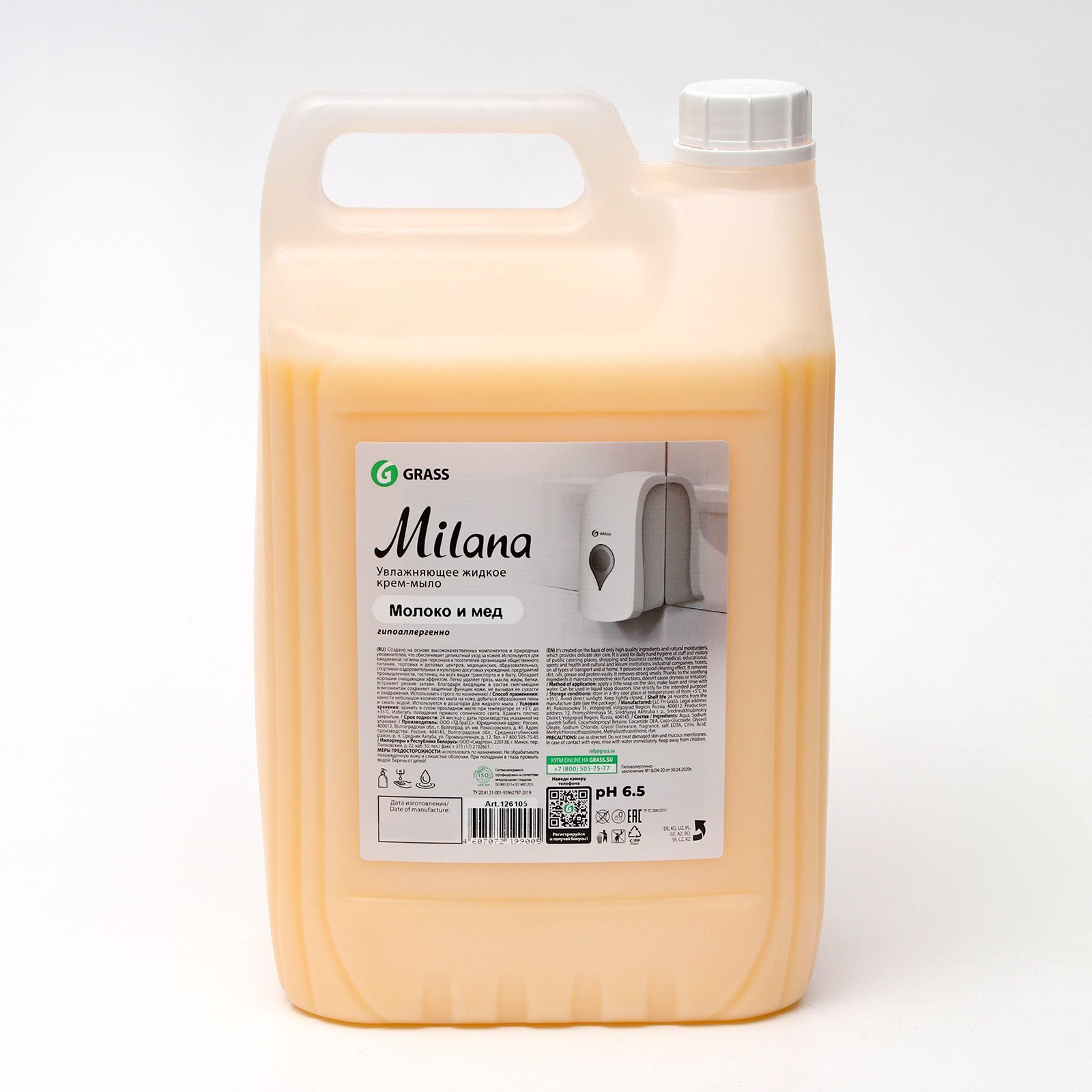 Жидкое крем-мыло grass milana "молоко и мед", 5 л. Увлажняющее крем-мыло с легкой текстурой и нежным ароматом, созданное на основе высококачественных компонентов, обеспечивает деликатный уход за вашей кожей. Обладает хорошим очищающим эффектом. Благодаря входящим в состав смягчающим компонентам сохраняет защитные функции кожи, не вызывая ее сухости и раздражения. Высокая концентрация и специальный дозатор обеспечивают экономичный расход. Уникальный состав мыла гарантирует безопасность вам и вашей семье. Состав: Aqua, Sodium Laureth Sulfate, Cocamidopropyl Betaine, Cocamide DEA, Coco-Glucoside, Glyceryl Oleat, Sodium Chloride, Glycol Distearat, Fragrance, salt EDTA, Citric Acid, Methylchloroisothiazolinone, Methylisothiazolinone, dye. Способ применения: нанесите небольшое количество мыла на влажную кожу, добейтесь образования пены, смойте ее водой. Цвет: Бежевый Вес, г/Объём, мл: 5000 Аромат: Молоко Аромат: Мёд Тип: Жидкое Вид мыла: Крем-мыло : 0 Товар 18+: Нет  развернуть описание ▼