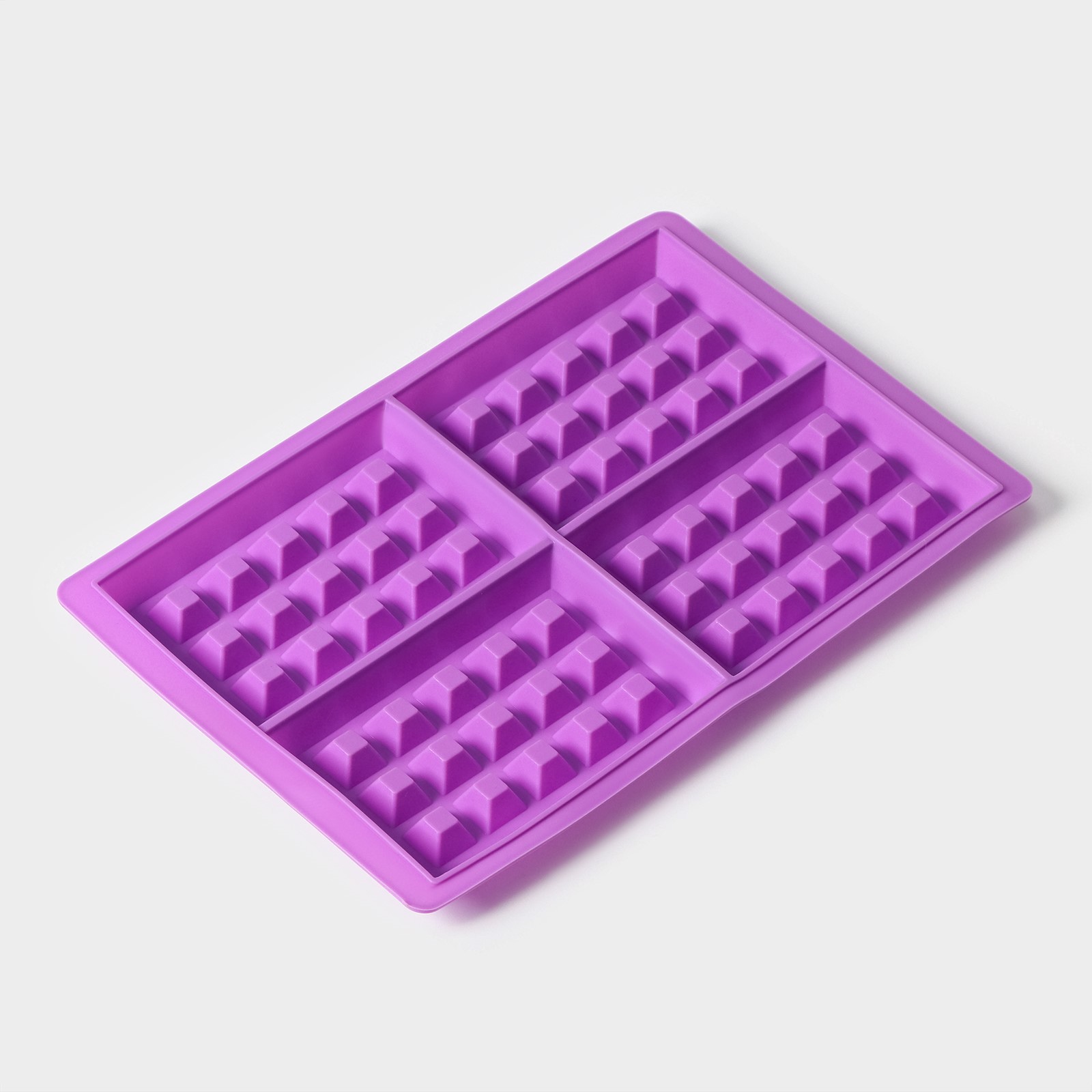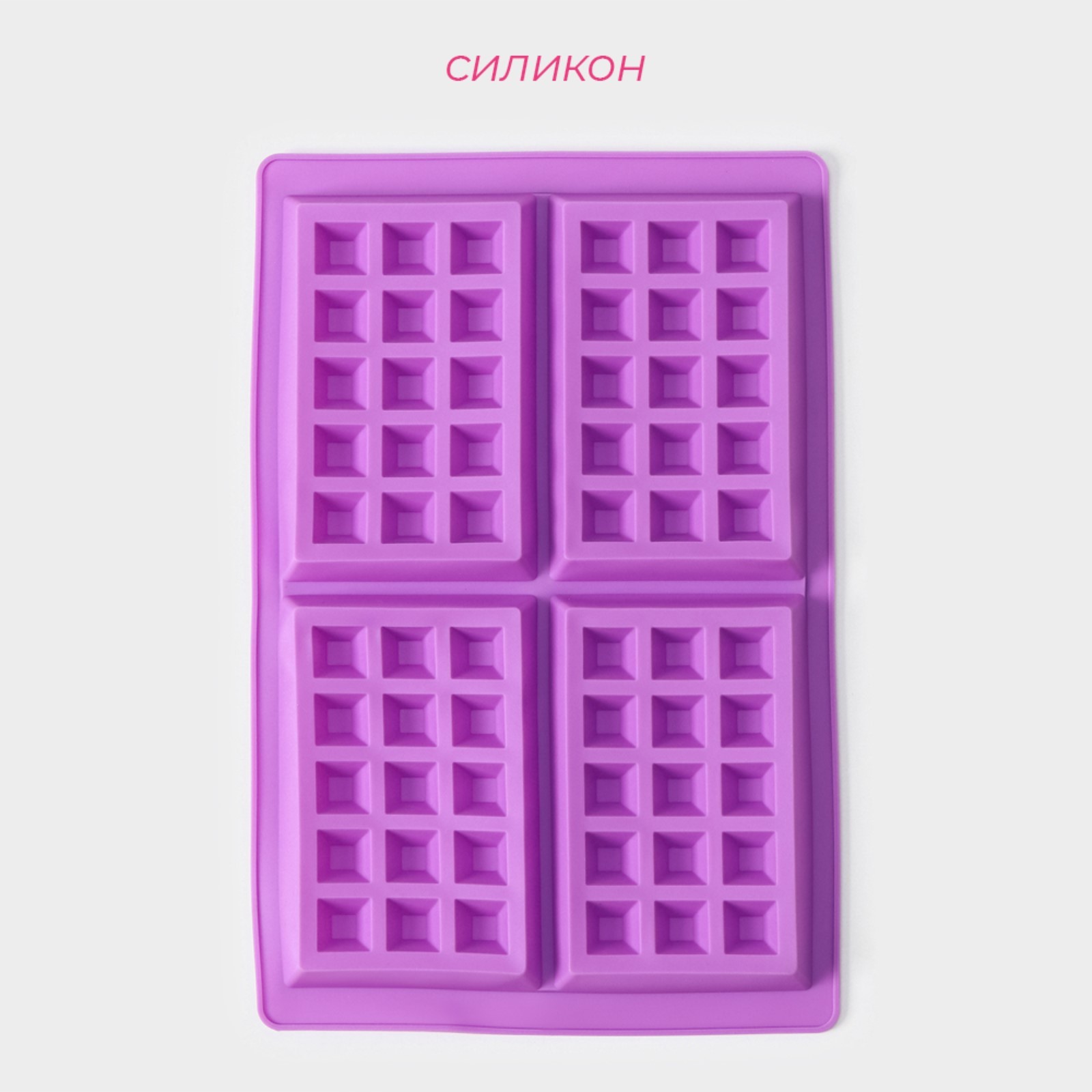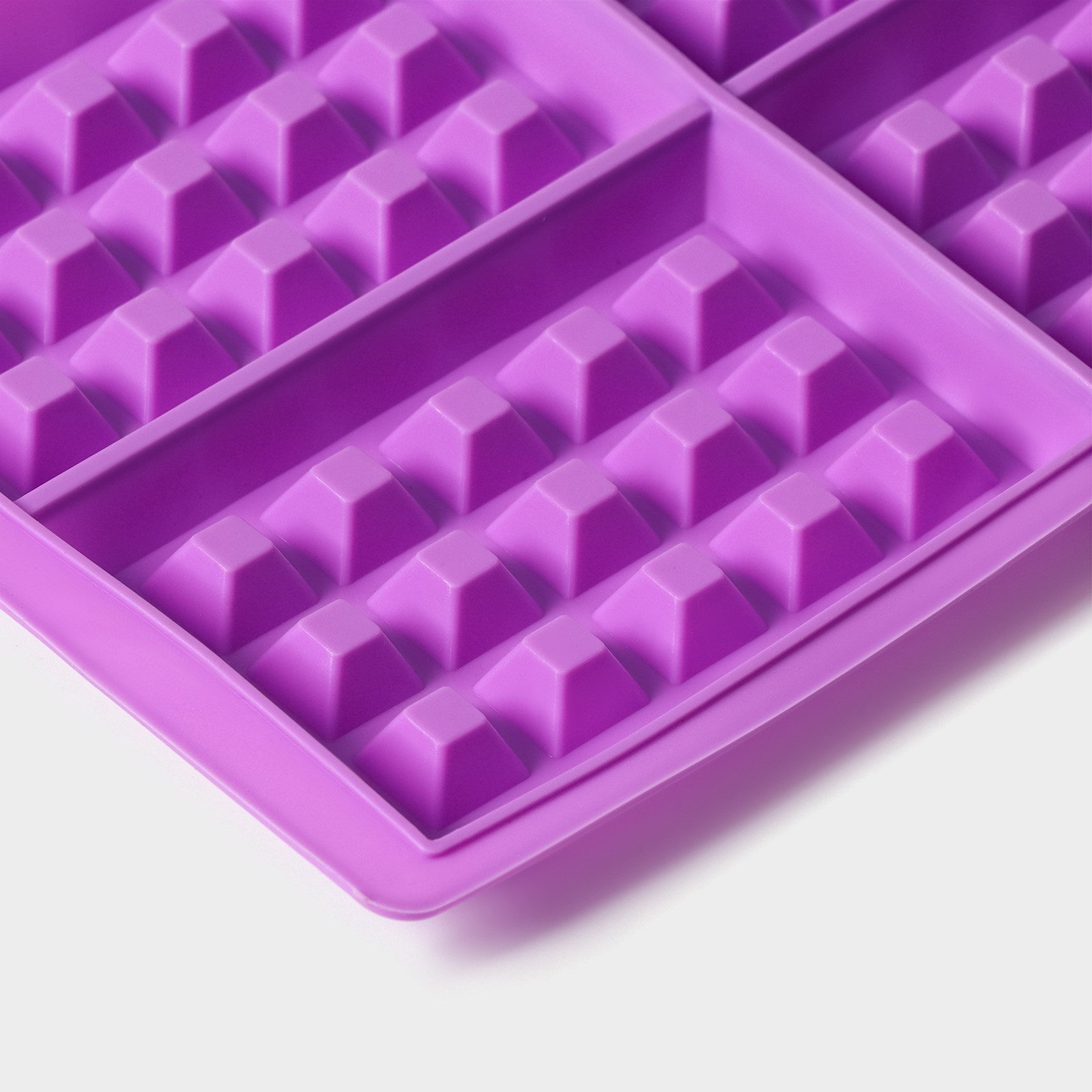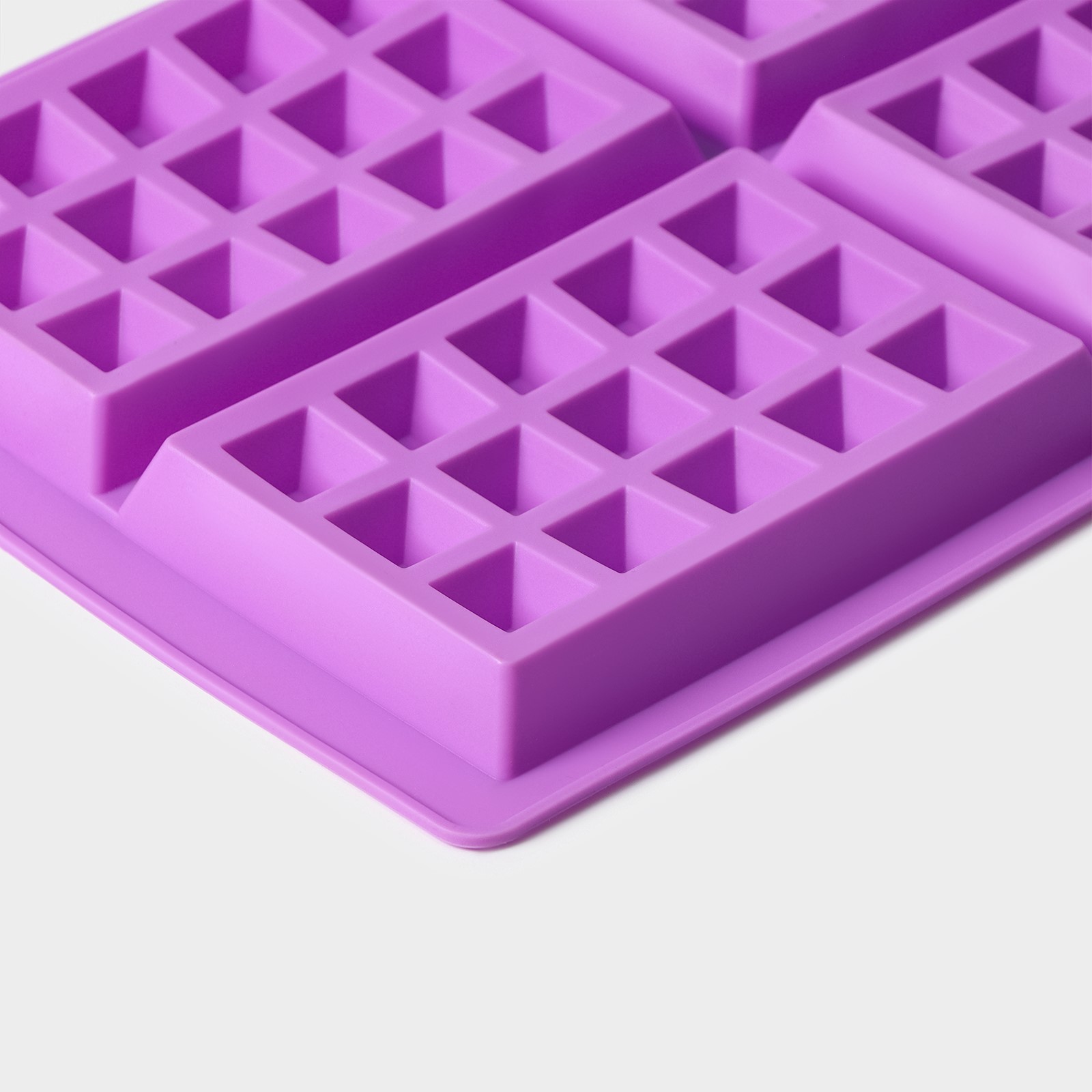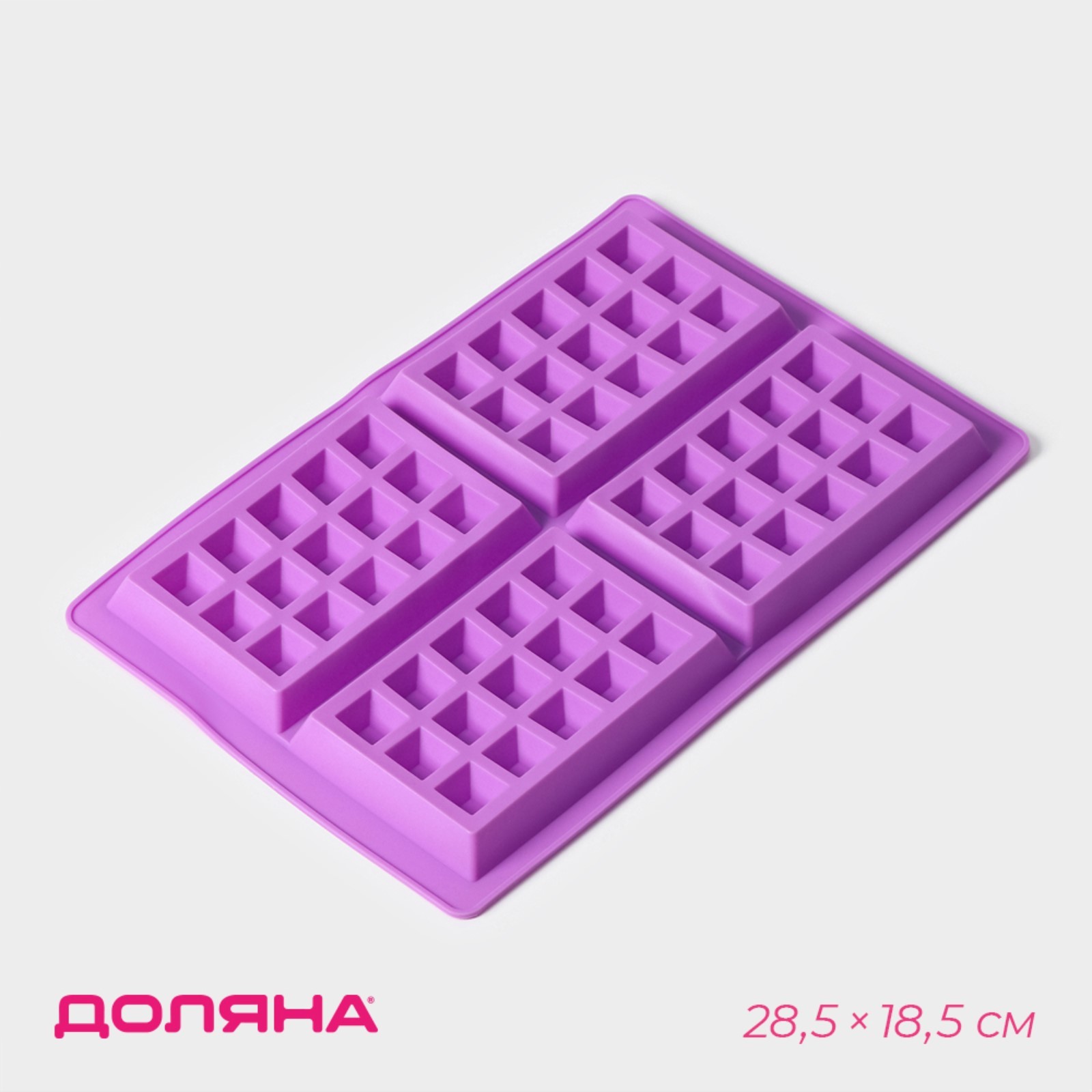 Форма силиконовая для выпечки доляна «сладости. венские вафли», 28,5x18,5 см, 4 ячейки, цвет микс. Цвет: МИКС Форма: Прямоугольная Фасовка, шт.: 1 Количество ячеек: 4 Крышка: Нет Материал: Силикон Тип покрытия: Без покрытия Ячейки: Да Наличие палочек для форм: Нет Тип формы: Для печенья и пирожных Разъёмная форма: Нет Съёмное дно: Нет Размер ячейки, см: 8 х 12.5 х 1.5 Можно мыть в посудомоечной машине: Да  развернуть описание ▼