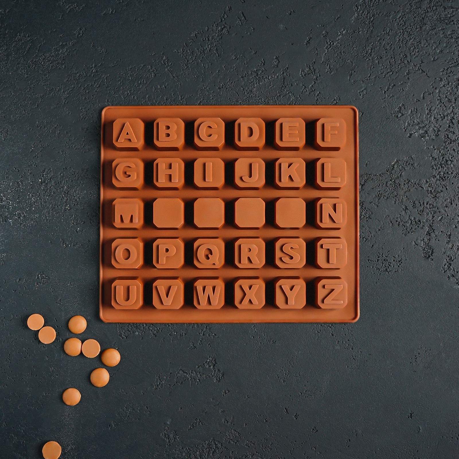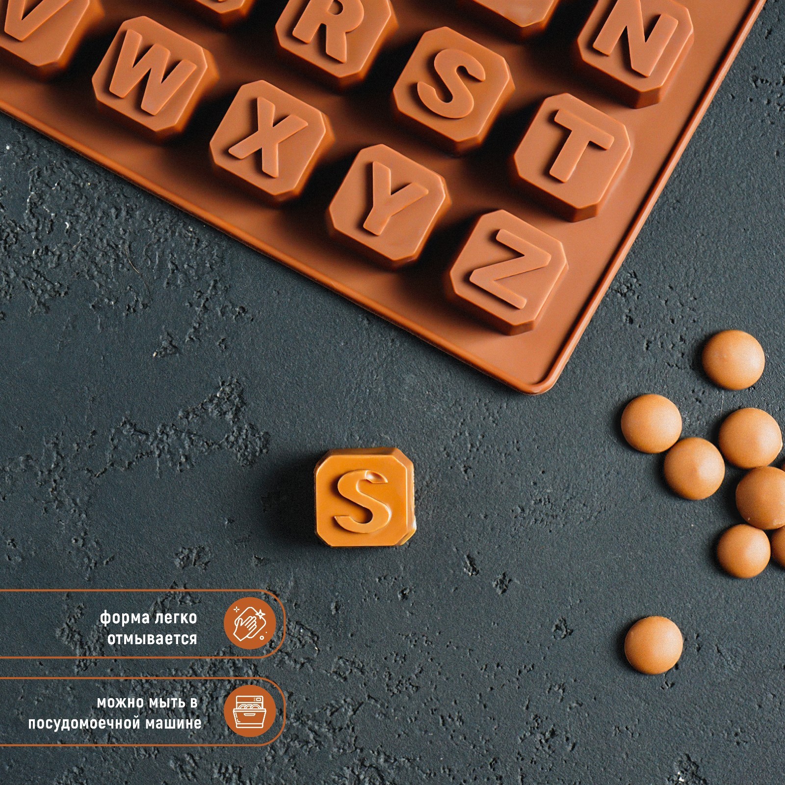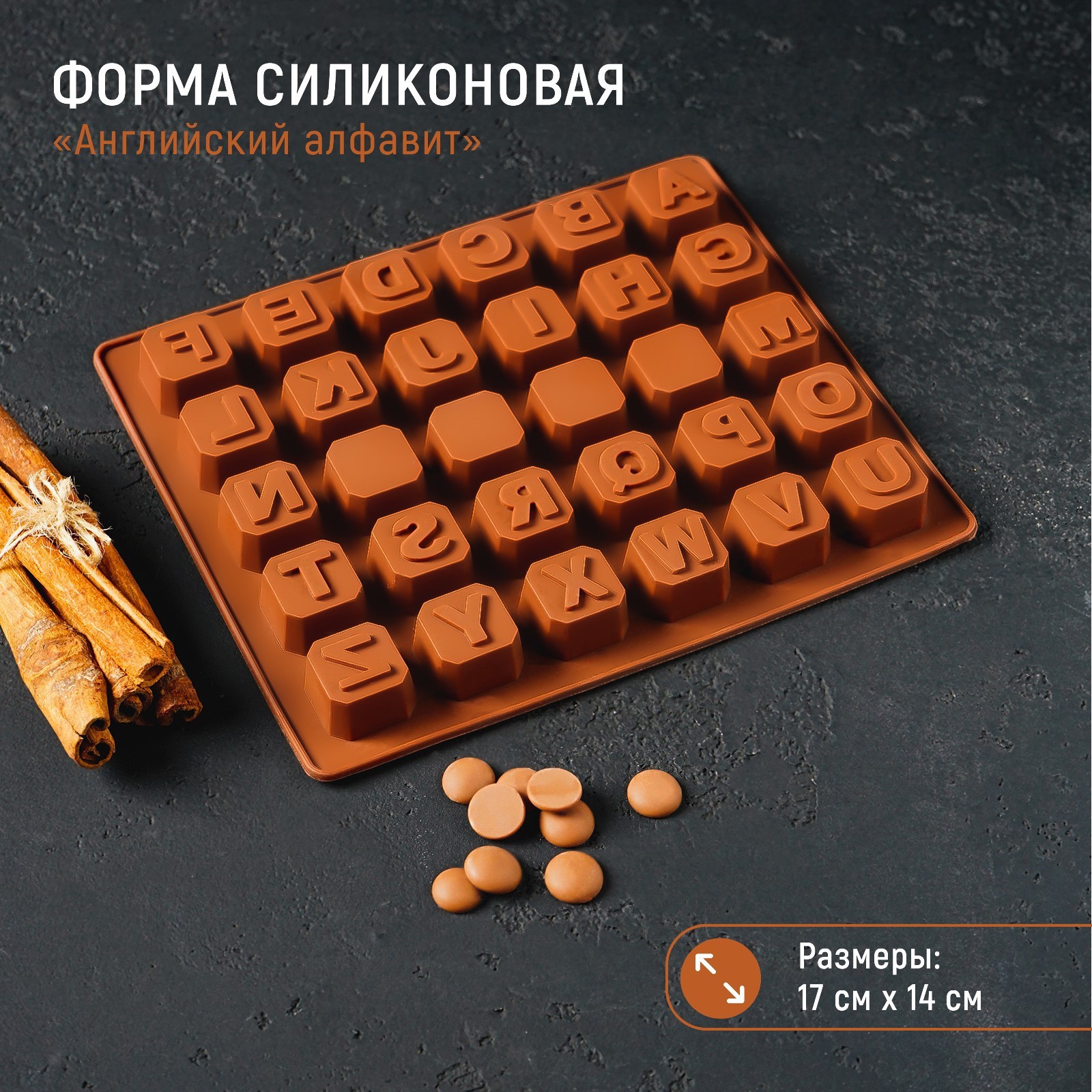 Форма силиконовая для украшений доляна «английский алфавит», 17x14 см, 30 ячеек, цвет коричневый. Силиконовые формы для кондитерских украшений помогут оригинально декорировать десерт или выпечку! Приготовить миниатюрные украшения гораздо проще, чем кажется. Наполните силиконовую ёмкость расплавленным шоколадом, мастикой, карамелью и поместите в морозильную камеру. Вскоре у вас будут оригинальные сладости, которые сделают запоминающимся любой праздничный стол! Достоинства: содержимое не прилипает к стенкам изделия;силикон выдерживает температуру от -40 до 230 °С;материал не впитывает запахов и полностью безопасен для продуктов питания;форма легко отмывается. Создавайте неповторимые кулинарные шедевры вместе с формой «Английский алфавит»! Цвет: Коричневый Цвет: МИКС Форма: Квадратная Количество ячеек: 30 Крышка: Нет Материал: Силикон Тип покрытия: Без покрытия Ячейки: Да Наличие палочек для форм: Нет Разъёмная форма: Нет Съёмное дно: Нет Тематика: Цифры, буквы Можно мыть в посудомоечной машине: Нет  развернуть описание ▼