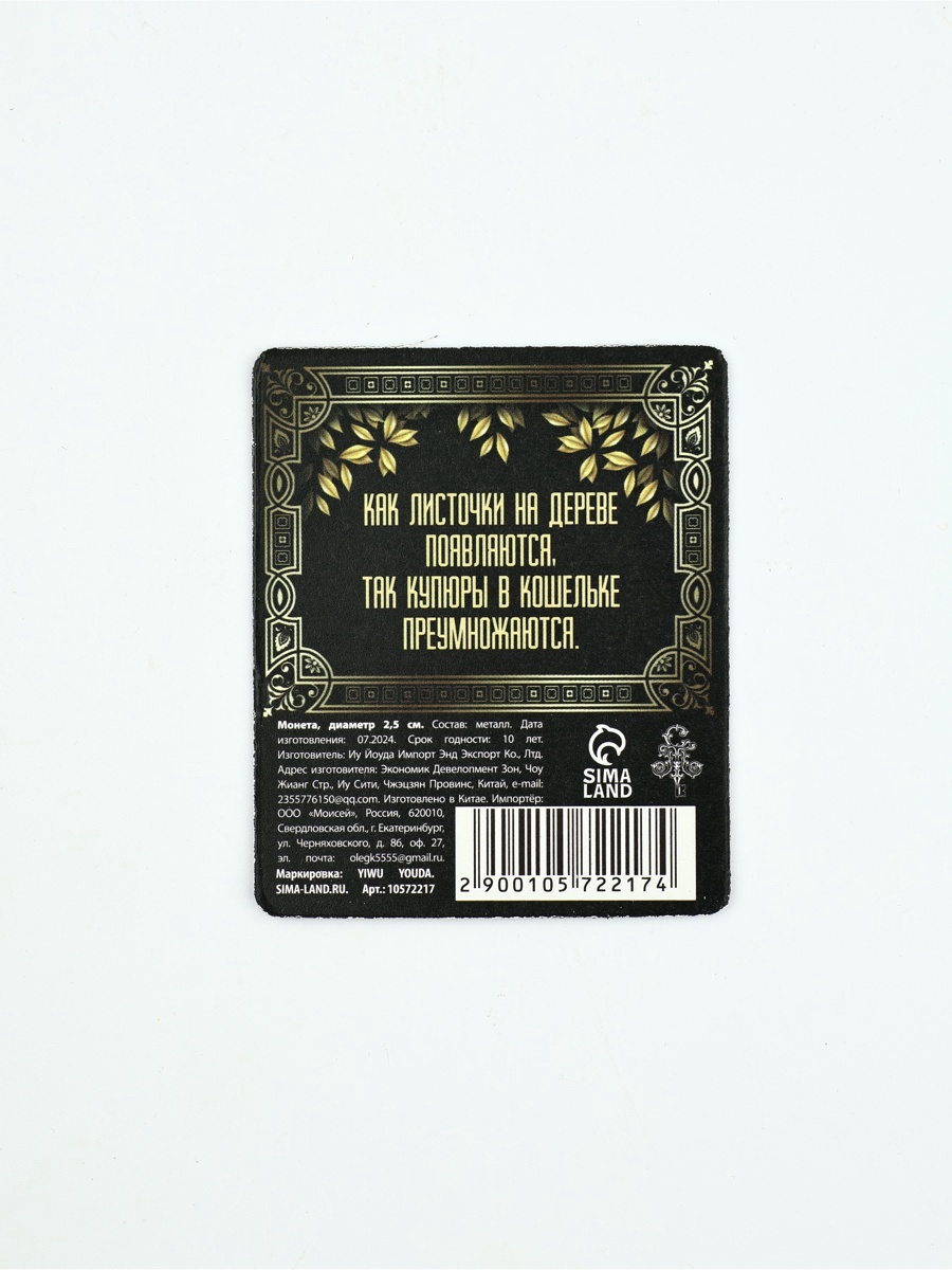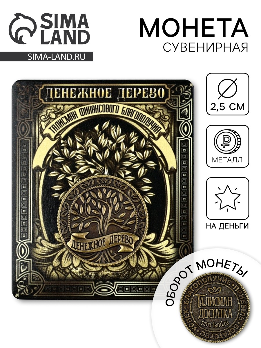Монета сувенир «денежное дерево», диаметр 2.5 см. Вид упаковки:Подложка|Тематика праздника:Универсальная тематика|Материал:Металл|Тематика:Денежные|Страна:Китай