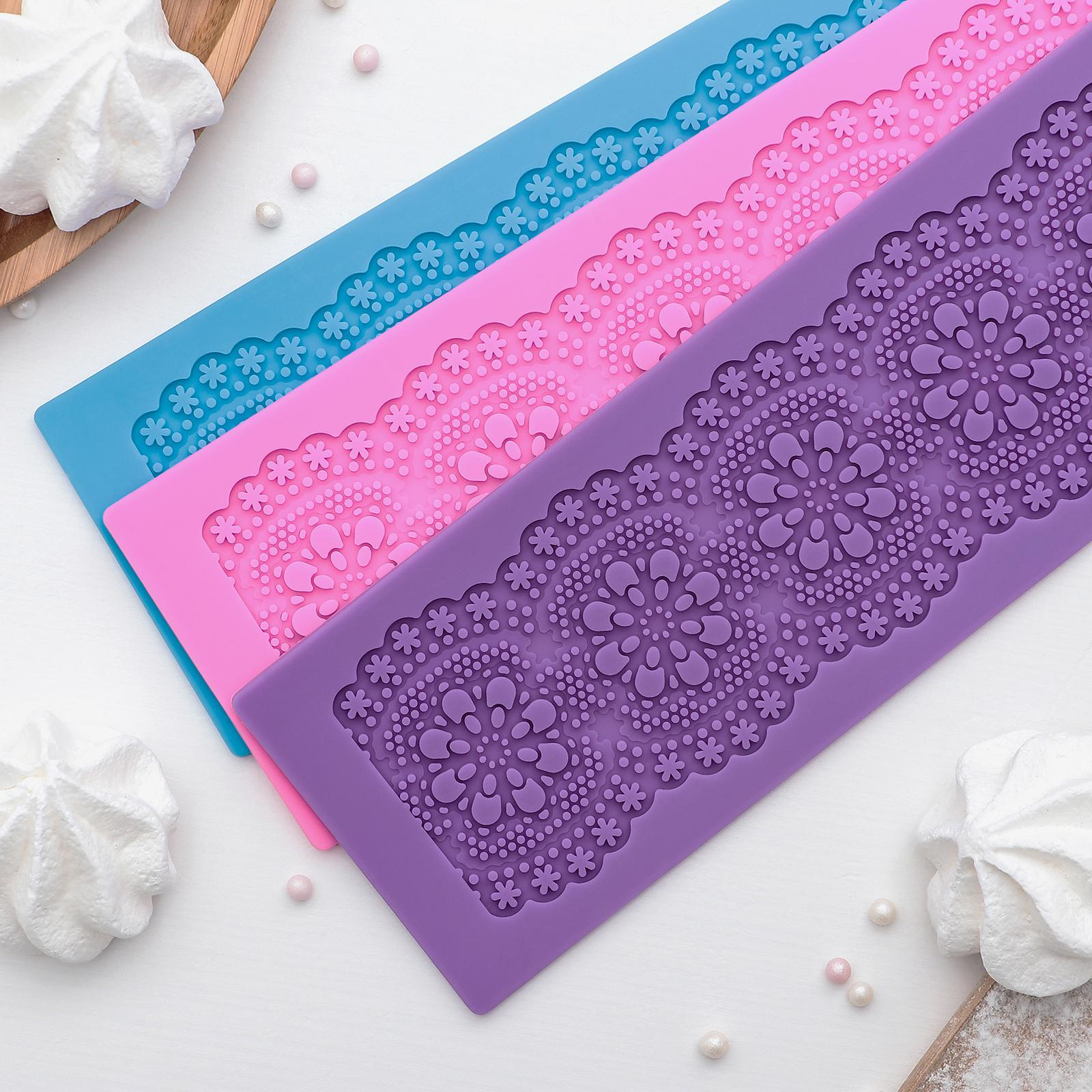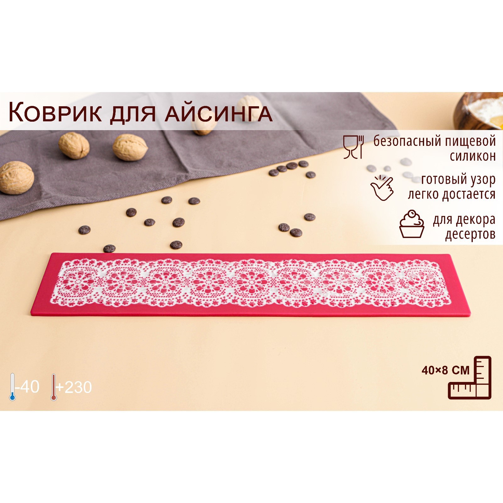 Силиконовый коврик для айсинга доляна «цветочное кружево», 40x8 см, цвет микс