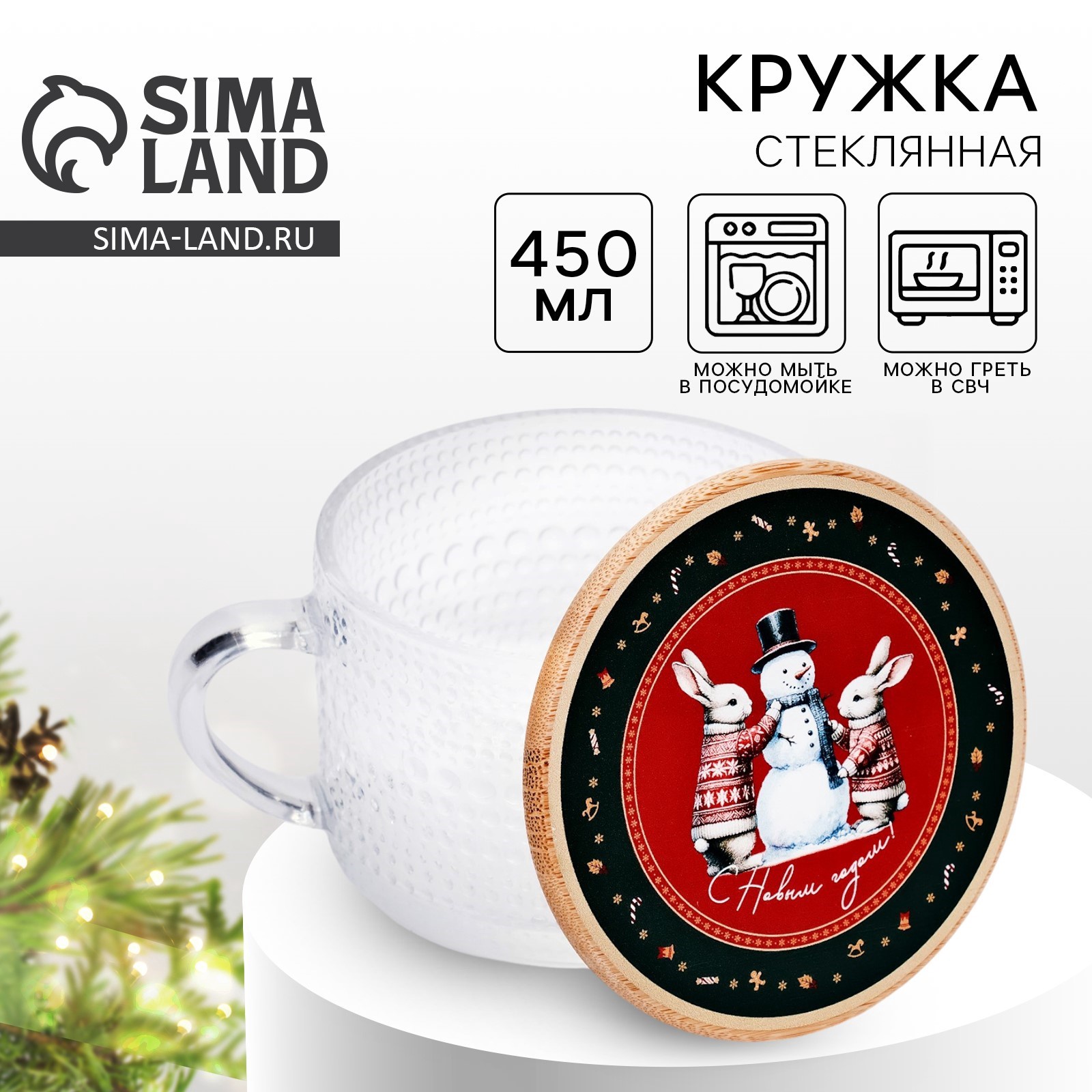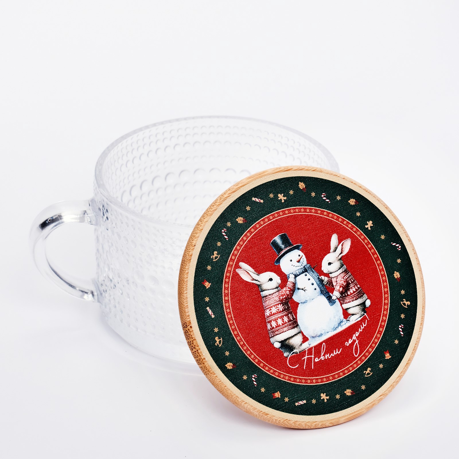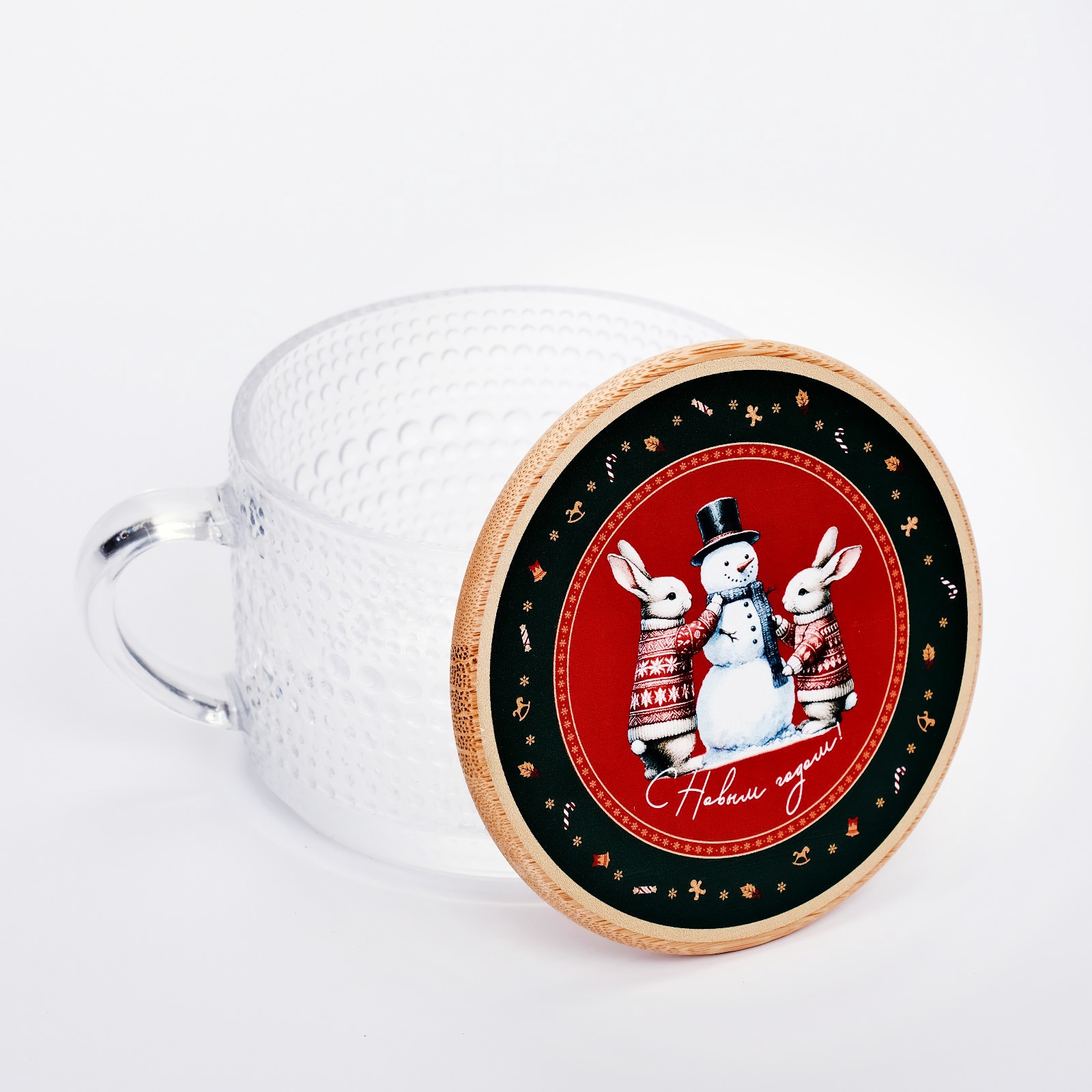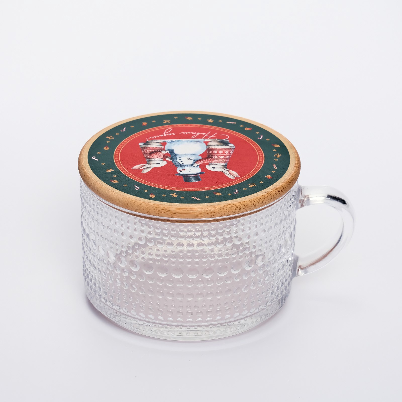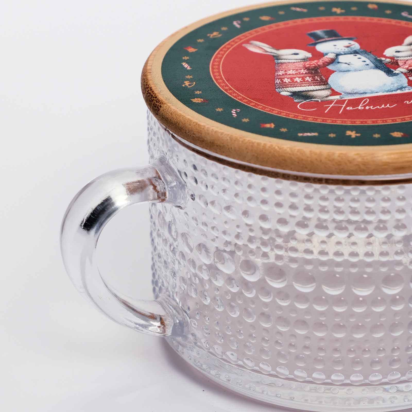 Кружка стеклянная новогодняя «с новым годом!», 450 мл, с крышкой
