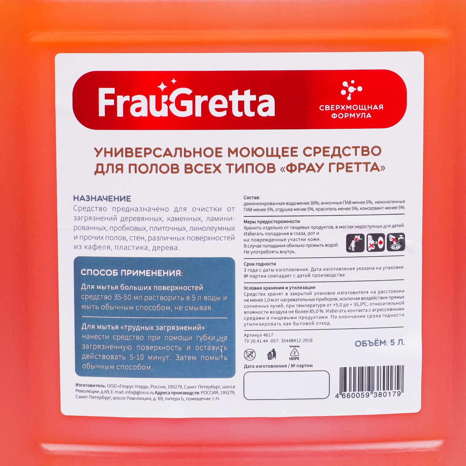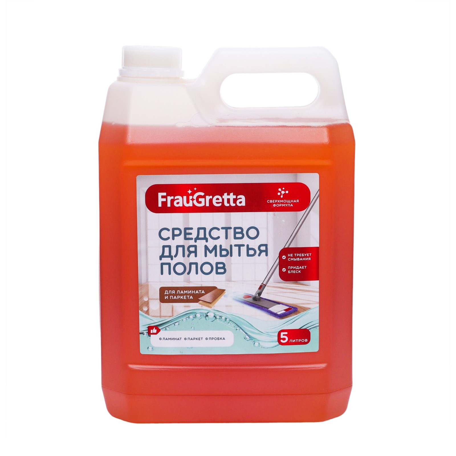 Средство для мытья пола frau gretta канистра "ламинат, паркет", 5 л. Вес, г/Объём, мл: 5000 Температурное ограничение: Нет