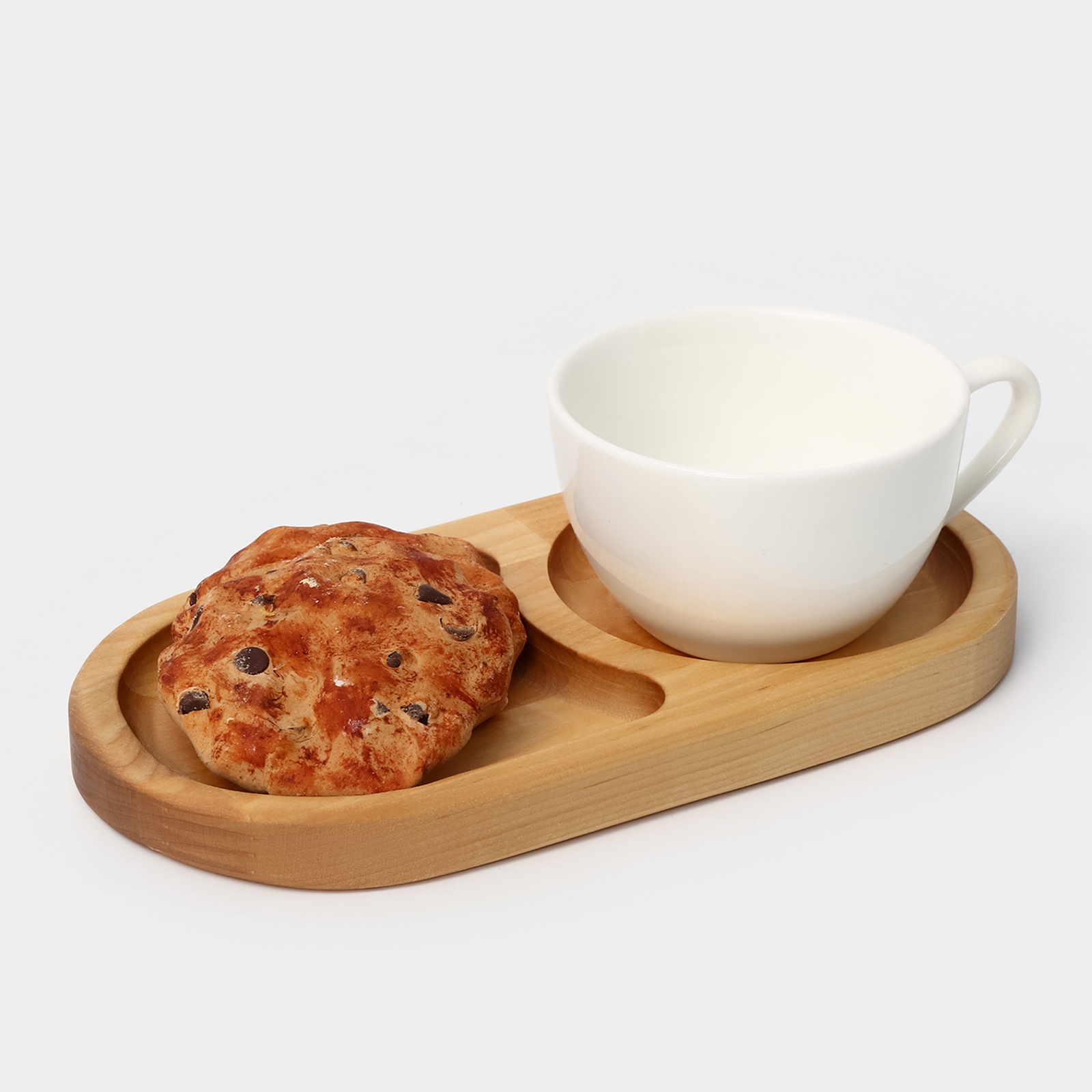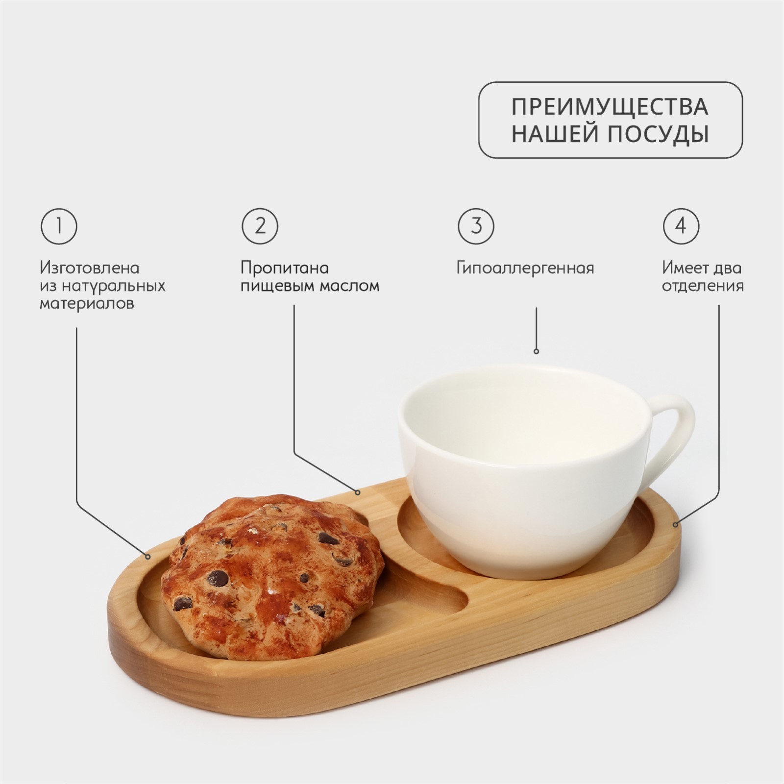 Поднос для подачи, 21x11x2 см, два отделения, берёза