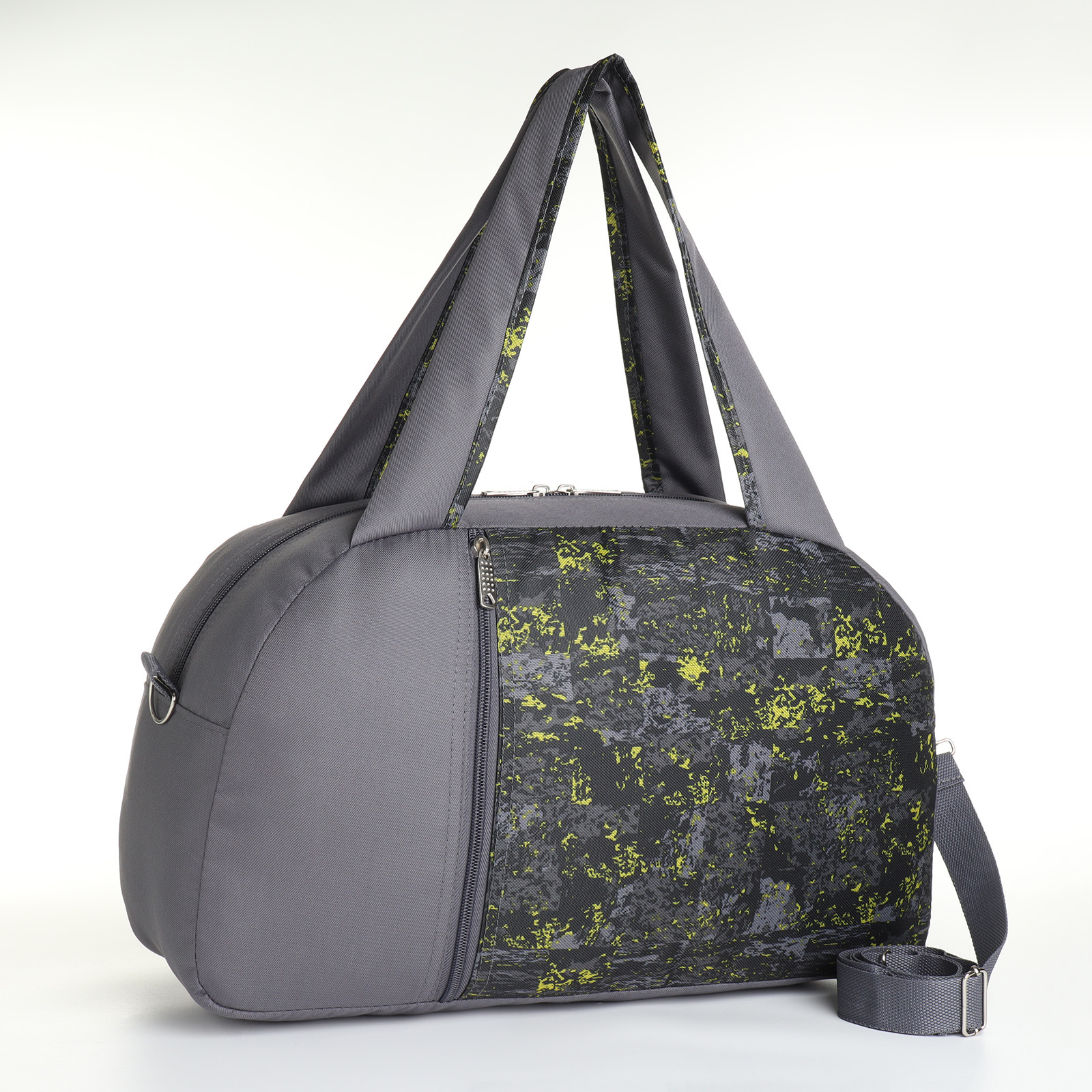Сумка спортивная на молнии, наружный карман, длинный ремень, средний размер, цвет серый