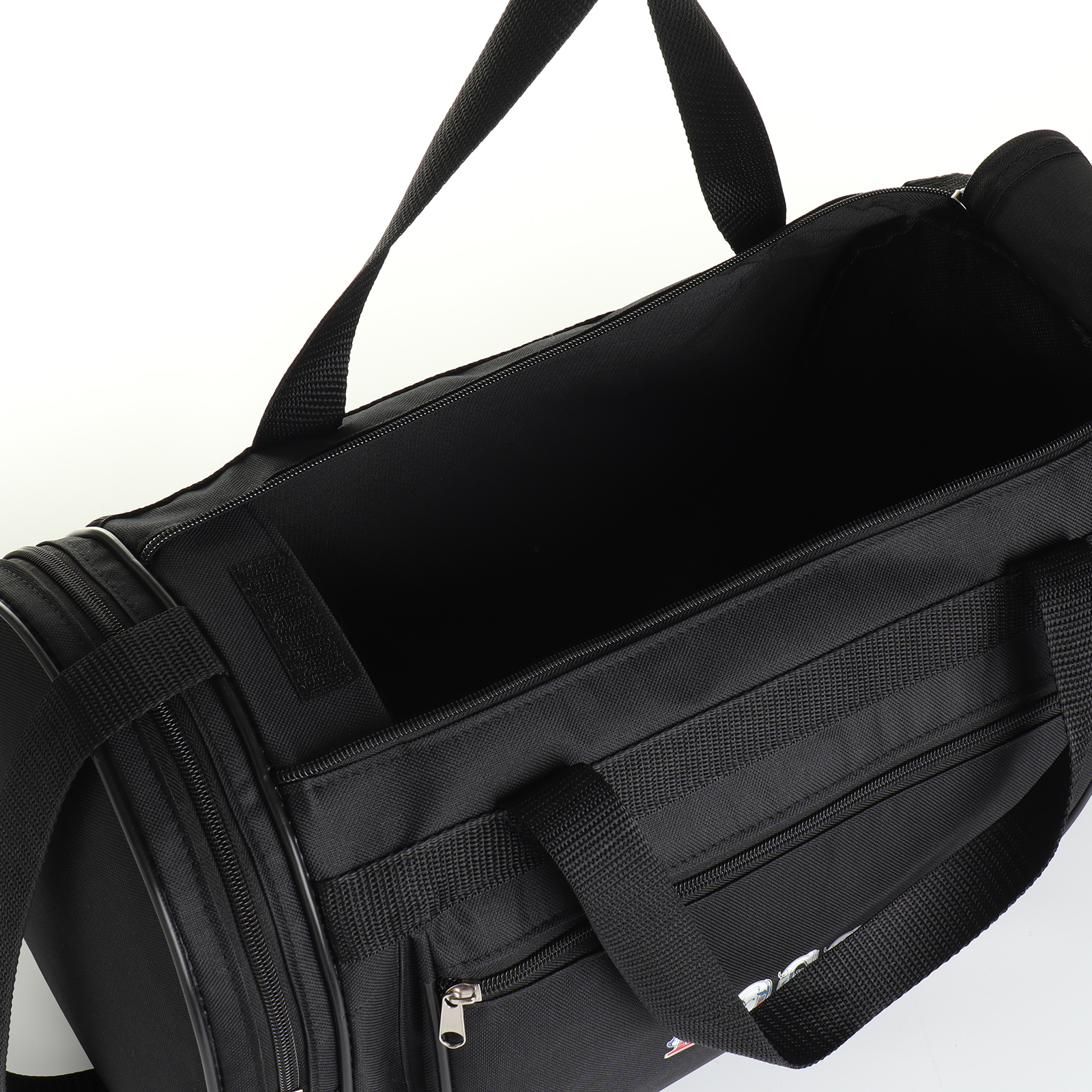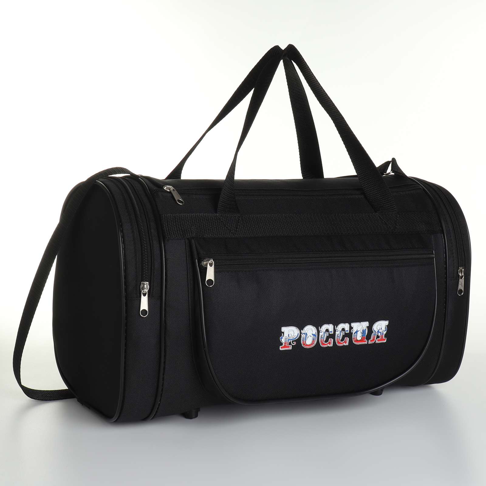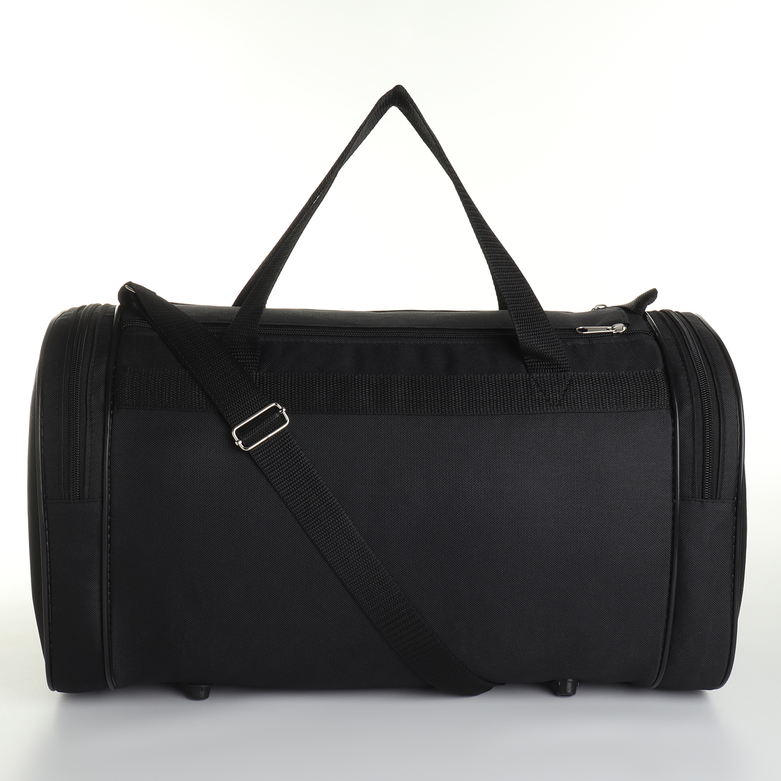 Сумка дорожная на молнии, 3 наружных кармана, длинный ремень, цвет чёрный