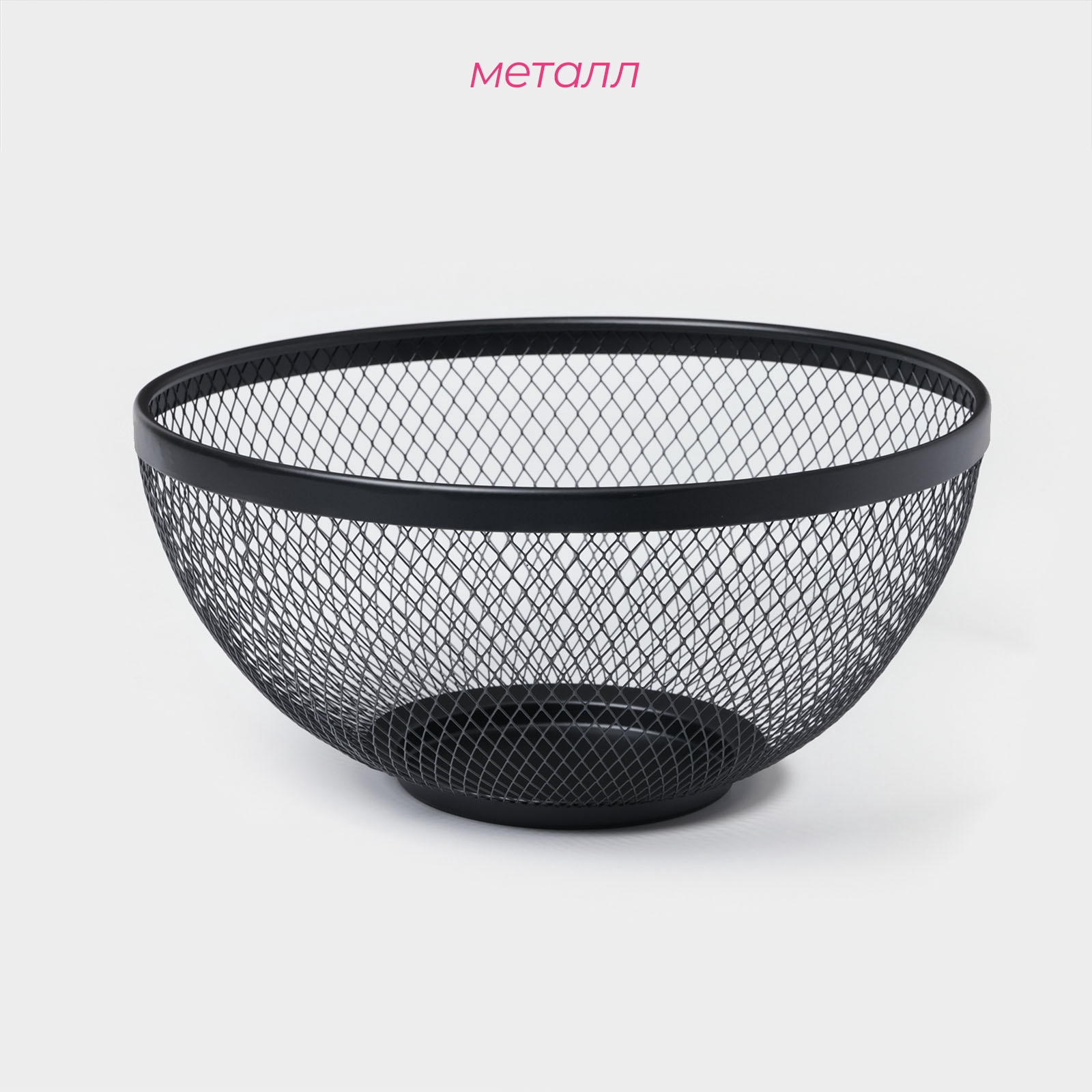 Фруктовница доляна «сетка», 26.5 26.5 12.8 см, чёрная. Представляем вашему вниманию фруктовницу, которая не просто служит для хранения, но и становится ярким акцентом вашего интерьера. Эта черная ваза диаметром 26,5 см с дизайном в стиле Сетка — идеальное решение для современного дома, добавляющее нотки минимализма и утонченности. С размерами 26,5х12 см, она отлично подойдет как для разнообразных фруктов, так и для подачи угощений на праздничных столах. Гладкая текстура и округлая форма позволяют ей гармонично вписываться в любой интерьер, будь то кухня в классическом стиле или современная лаунж-зона. Современный дизайн: черный цвет и геометрическая тематика делают фруктовницу стильным элементом декора, который привлечет внимание и подчеркнёт ваш вкус.Качество материалов: выполнена из прочного металла, что гарантирует долговечность и устойчивость к повреждениям.Практичность: гладкая поверхность позволяет легко очищать фруктовницу, хотя мыть её в посудомоечной машине не рекомендуется.Многофункциональность: подходит не только для фруктов, но и для подачи закусок, печенья или сладостей, позволяя использовать её в любых случаях.Эстетическая привлекательность: оригинальный дизайн и стильный вид делают её замечательным подарком для близких или прекрасным украшением вашего дома.Фруктовница с элегантным дизайном — ваш надежный компаньон для непринужденных встреч и торжеств. Позвольте себе удивлять гостей и радоваться каждому моменту, используя этот замечательный элемент, который дарит не только практичность, но и эстетическое наслаждение! Цвет:Чёрный|Форма:Круглая|Тематика:Геометрия|Рисунок:Нет|Материал:Металл|Можно мыть в посудомоечной машине:Нет|Текстура:Гладкая|Страна:Китай  развернуть описание ▼