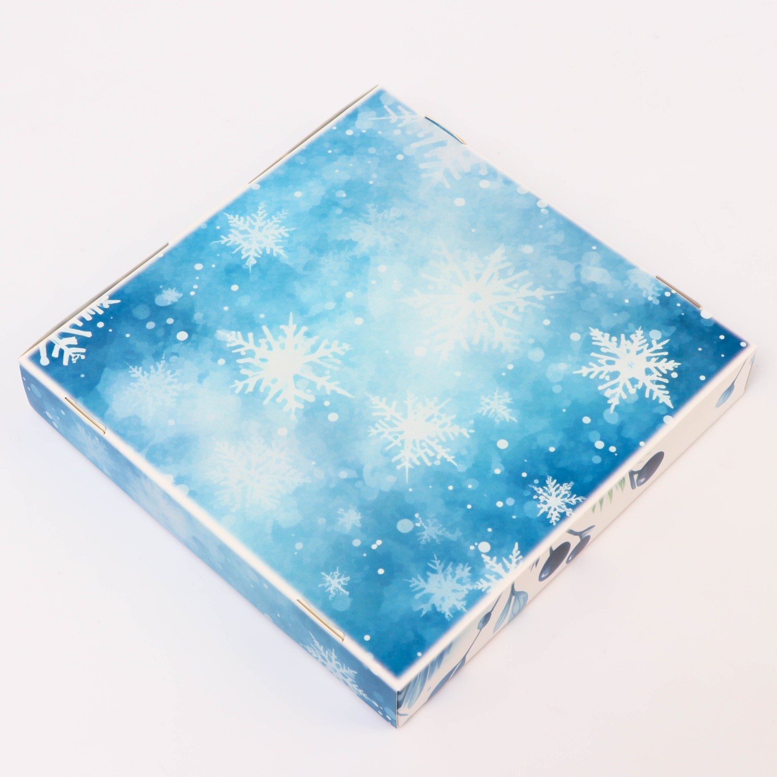 Подарочная коробка складная с окном «с новым годом!», 19 19 3 см. Подарочная сборная коробка с окном в новогоднем дизайне — это идеальная упаковка для кондитерских изделий, подарков и сувениров в праздничный сезон. Размеры и конструкция коробки позволяют удобно разместить различные виды сладостей, мелкие подарки или уникальные сувениры, обеспечивая их надежную защиту и привлекательное представление. Коробка изготовлена из прочного картона, а прозрачное окно на крышке позволяет эффектно продемонстрировать содержимое, сохраняя его свежесть и целостность. Яркий новогодний дизайн, включающий снежинки, елочные украшения и рождественские элементы, создаёт атмосферу праздника и волшебства. Сборная конструкция упрощает сборку и хранение коробок, а её элегантный внешний вид добавляет праздничного настроения и делает упаковку особенно запоминающейся. Эта коробка станет отличным выбором для упаковки подарков, угощений или сувениров, добавляя изысканности и радости в каждый момент праздника. Цвет:Голубой|Цвет:Белый|Форма:Квадратная|Плотность, г/м :270|Длина, см:19|Ширина, см:19|Высота, см:3|Тематика:Рождественская|Тематика:Новогодняя|Рисунок:Да|Символ года:Нет|Тематика праздника:Новый год|Материал:Картон|Вид:Складные коробки|Размер:Средний (18-24 см)|Окошко:Да|Крышка-дно:Нет|Страна:Китай  развернуть описание ▼