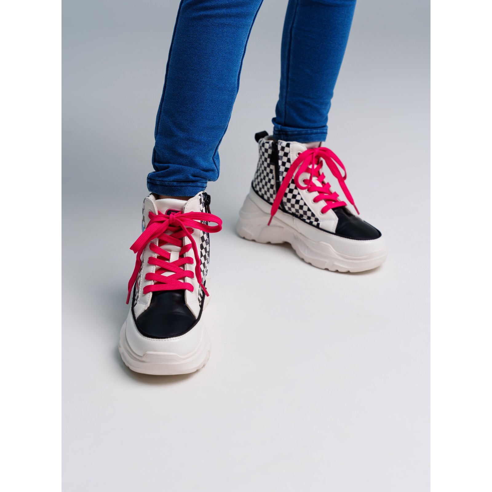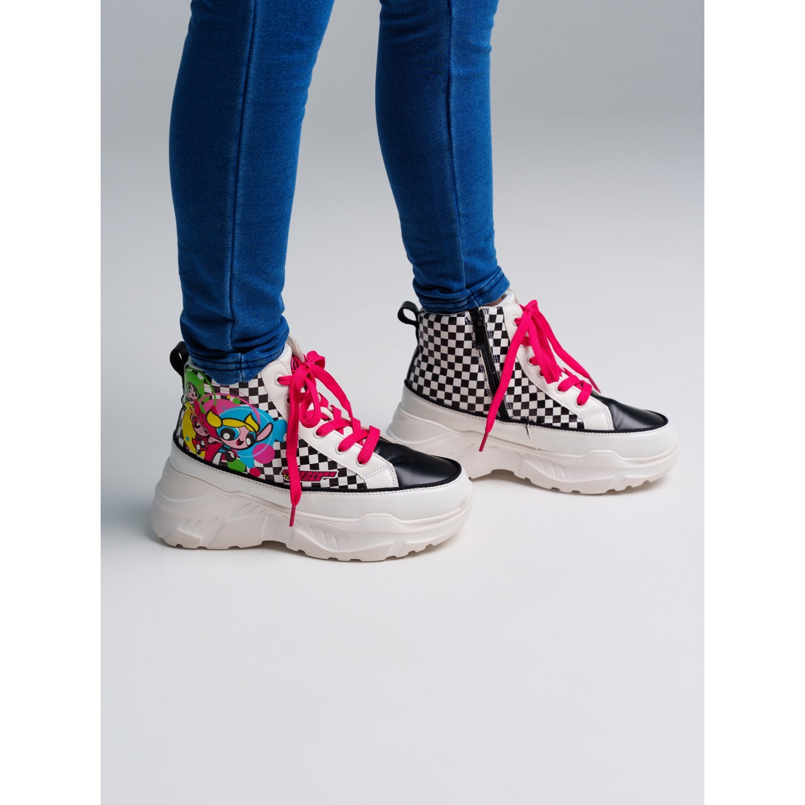 Кроссовки для девочки playtoday, размер 38. Высокие кроссовки из искусственной кожи на высокой лёгкой платформе изПодкладка выполнена из износостойкого текстиляКожаная профилированная стелька с анатомической формой обеспечивает правильную нагрузку на стопуМодель имеет застёжку молнию, а шнурки регулируют объёмУдобная колодкаФормоустойчивый задник поддерживает стопу в правильном положении Цвет: Белый Для кого: Для девочки Длина по стельке, см: 24 Размер обуви: 38 Сезон: Демисезон Материал стельки: Искусственная кожа Вид застёжки: Шнуровка Тематика: Мультфильмы Наличие супинатора: Нет Серия: Суперкрошки Серия: Powerpuff Girls Материал верха: Искусственная кожа Вид: Повседневные Со светодиодами: Нет  развернуть описание ▼