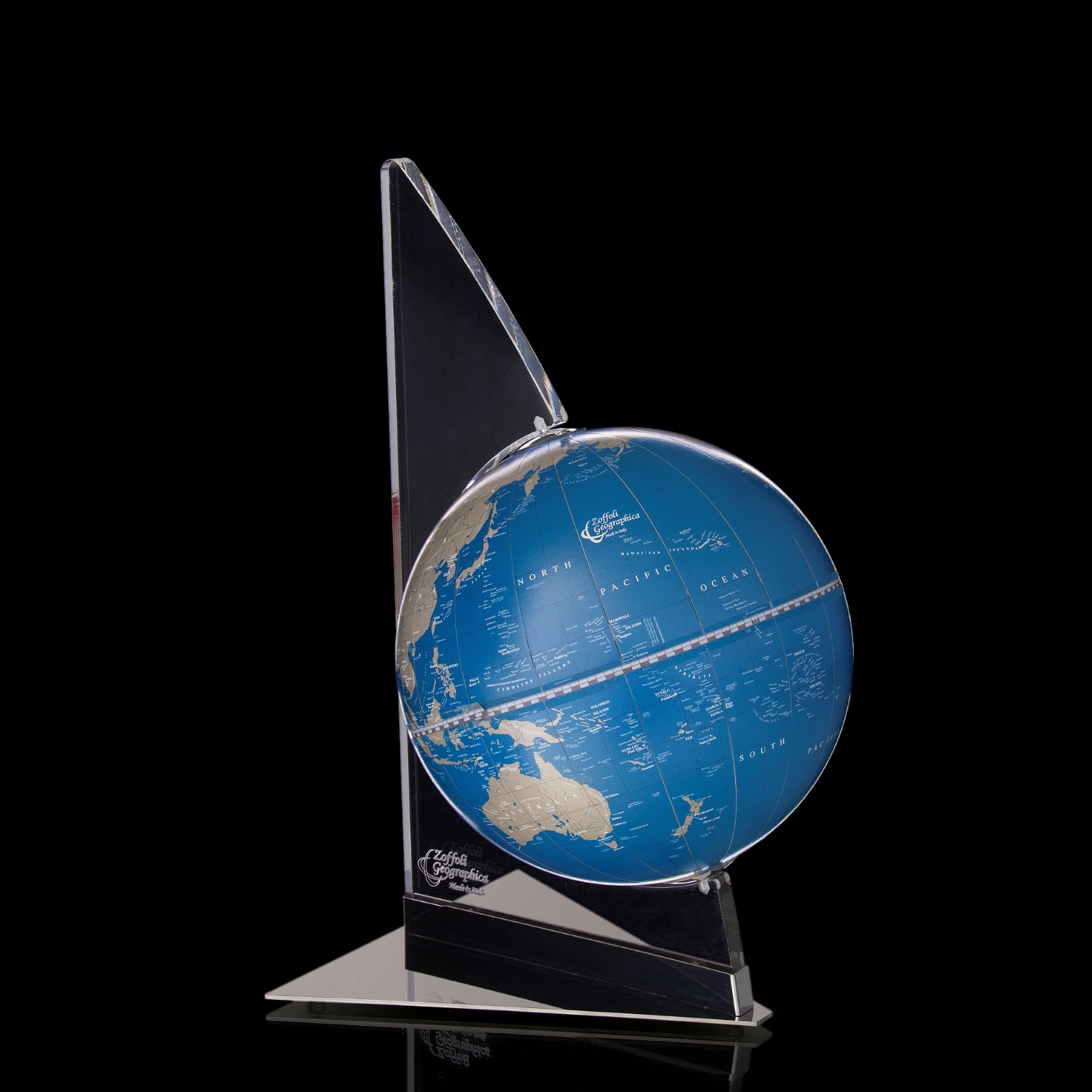 Глобус-сувенир настольный уценка "парус", синий, 24 x 24 x 41,5 см. Не правда ли, этот глобус выглядит настолько легким и невесомым, что, кажется, просто парит в воздухе, свободный от законов земного притяжения? Прозрачная подставка, серо-серебристые континенты, лазоревые моря и океаны. . . Эффектный глобус от известной во всем мире итальянской компании Zoffoli станет настоящей жемчужиной интерьера рабочего кабинета или домашней библиотеки и прекрасным подарком человеку, обладающему безукоризненным вкусом и ценящему стильные и редкие вещи. Диаметр, см: 24 Тип глобуса: Сувенирный Особенности глобусов: Без особенностей  развернуть описание ▼