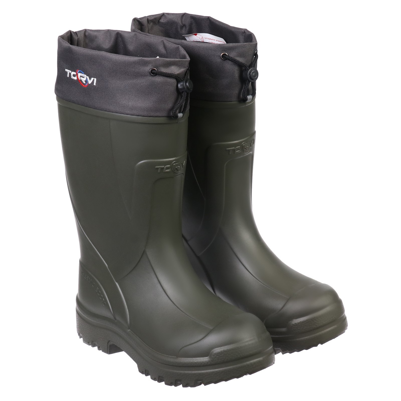 Зимние сапоги torvi с мехом, 4-слойный вкладыш -45с, цвет олива размер 42. Сапоги "Torvi" защитят вас от морозов и подарят комфорт. Верх сапога выполнен из цельнолитого ЭВА. Он выдерживает температуры до -40 °C и, в отличие от обычной резины, не трескается. А ещё все слои материала создают систему, которая надёжно отсекает холод снаружи и сберегает тепло. Комфорт обеспечивает тёплый вкладыш, который сделан из современного многослойного нетканого полотна и меха. Изделие состоит из 4-х слоёв: 1 слой — сетка, придающая вкладышу прочность и износоустойчивость. Слои нетканого полотна не склеены, а скреплены между собой иглопробивным способом. Поэтому поверх сетки образуется фактически ещё один слой из волокон и воздуха. Он создаёт дополнительную теплоизолирующую воздушную прослойку и важен для процесса отвода влаги от ноги; 2 слой — фольга, которая отражает внешний холод и сберегает тепло; 3 слой — это нетканый материал из смеси современного полого высокоизвитого полотна и натуральных льняных волокон. Этот слой удерживает тепло тела, сопротивляется сжатию, быстро восстанавливает форму после снятия деформационных нагрузок; 4 слой — мех «под овчину», содержит натуральную шерсть, сберегает тепло тела. Преимущества сапог фирмы Torvi: модели полностью соответствует заявленному российскому размеру, имеют широкую стопу и высокий подъём; дно сапог имеет особую ячеистую структуру; все текстильные детали разрабатываются с учётом суровых погодных условий; цельнолитые детали, сделанные из высококачественного ЭВА. Цвет: Зелёный Для кого: Для мужчины parts count: 0 Размер обуви: 42 Сезон: Зима Материал стельки: Шерстяной мех Материал стельки: Нетканое полотно Материал стельки: Фольга Материал: EVA Утеплитель: Да Материал верха: ЭВА Честный знак: Да Материал сапог: ЭВА  развернуть описание ▼