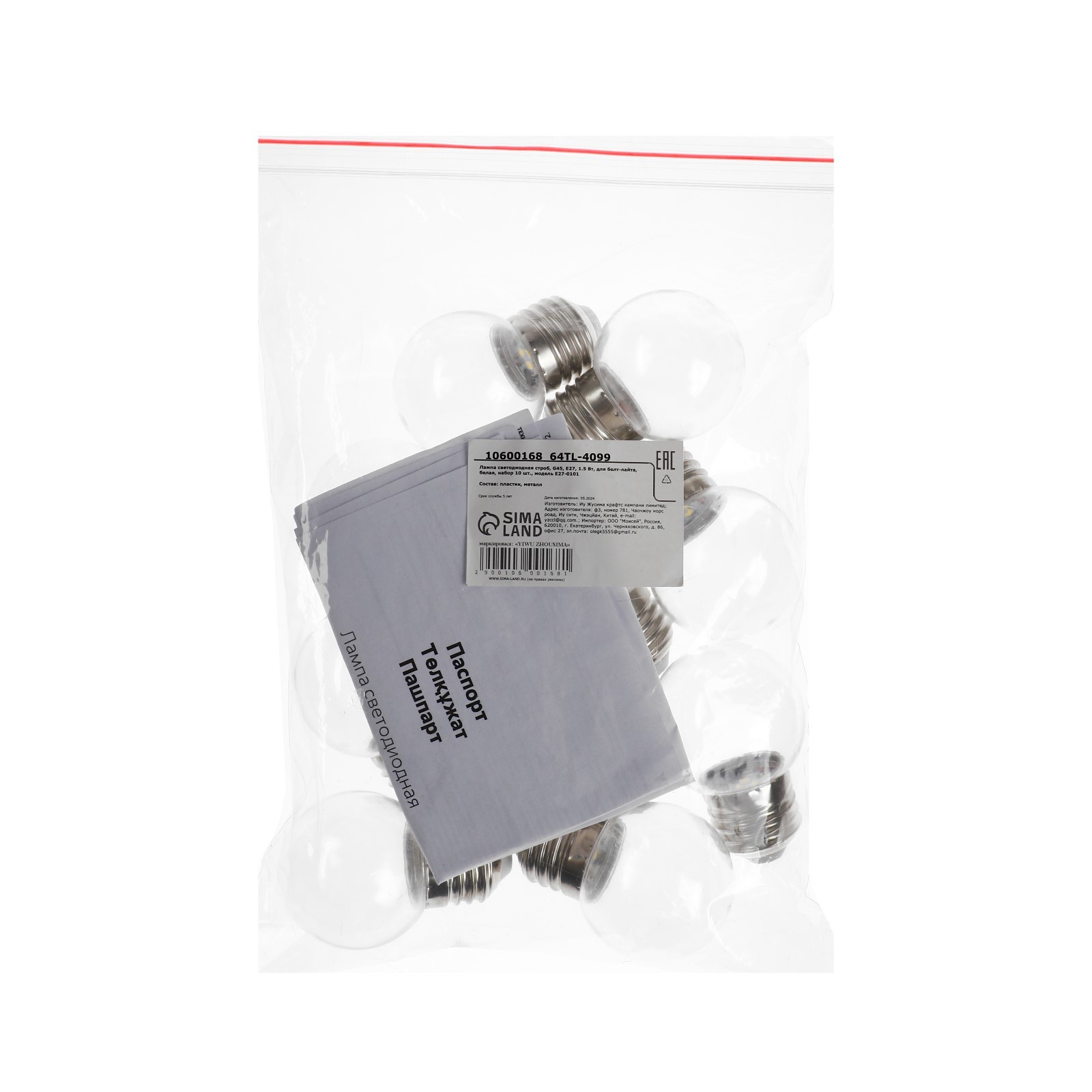 Лампа светодиодная строб, g45, e27, 1.5 вт, для белт-лайта, белая, набор 10 шт.. Цвет свечения: Белый Количество ламп: 10 Режим работы: Мигание Цоколь: G45 Мощность, Вт: 1.5 Напряжение, В: 220 Вид комплектующего: Лампочка Цветовая температура: 4000К Форма лампы: Шар Диммируемая: Нет Тип питания: От сети 220 В Класс энергоэффективности: A  развернуть описание ▼