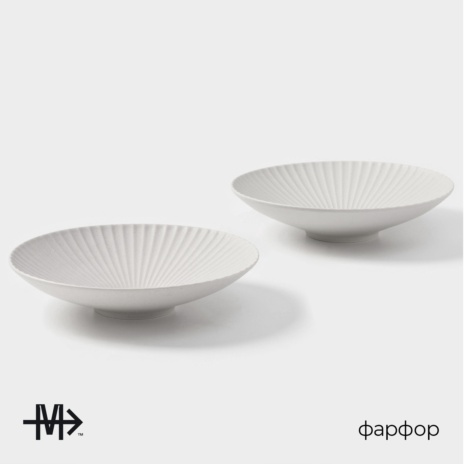 Тарелки Magistro Jarwah Lausanne, 600 мл, 21.5 5 см, глубокие, набор 2 шт., фарфор, белые