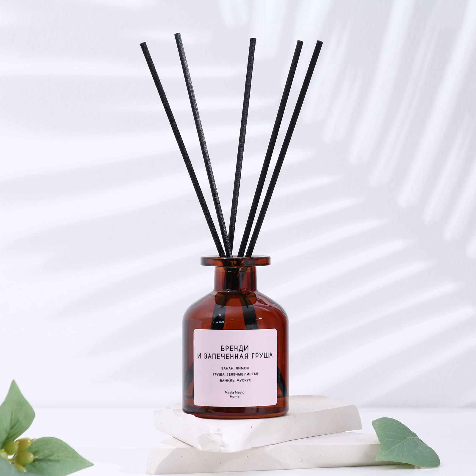 Диффузор ароматический, "бренди и запеченная груша", 100 мл. Диффузор «БРЕНДИ И ЗАПЕЧЁННАЯ ГРУША» поставляется в стильной колбе из тёмного стекла, которая не только выглядит элегантно, но и защищает содержимое от воздействия света. Качественная упаковка из гофрированного картона с подложкой обеспечивает безопасную доставку и подчёркивает уникальный стиль декора. Верхние ноты банана и лимона придают ему свежесть и бодрость, обладая сильным тонизирующим действием. Средние — груши и зелёных листьев — добавляют нотку сладости и терпкости. Искристая цветочно-фруктовая композиция пробуждает лёгкость и хорошее настроение во все времена года! Базовые ноты ванили и мускуса стимулируют выработку серотонина — гормона счастья. Ваниль одинаково благотворно действует на женщин, мужчин и детей, так как становится незабываемым и любимым ароматом детства. Универсальный и многогранный продукт обладает утончёнными нотами, которые наполняют атмосферу дома свежестью с хвойно-цитрусовыми оттенками. Декоративный бытовой ароматизатор в лаконичном дизайне великолепно подойдёт для любого интерьера квартиры и подчеркнёт его особенности, легко вписываясь в современную обстановку и экспозицию. Может создать расслабляющую обстановку не только в ванной или туалете, но и сделать всё домашнее пространство уютным и притягательным. Уникальная формула продукта обеспечивает стойкость запаха, а фибровые палочки равномерно распределяют аромат по помещению, создавая приятное ощущение умиротворения и заполняя его комфортом. В момент первого использования аромат раскрывается в первые 24–48 часов. Чем большее количество аромапалочек вы используете, тем насыщеннее и интенсивнее распространяется аромат. Рекомендуется начинать с двух палочек и постепенно увеличивать их количество при необходимости. Для наилучшего эффекта диффузор рекомендуется ставить на уровне пояса или груди в хорошо проветриваемом помещении. Объём, мл: 100 Вид ароматизатора: Диффузор Аромат: Груша Аромат: Ваниль Аромат: Банан Температурное ограничение: Нет  развернуть описание ▼