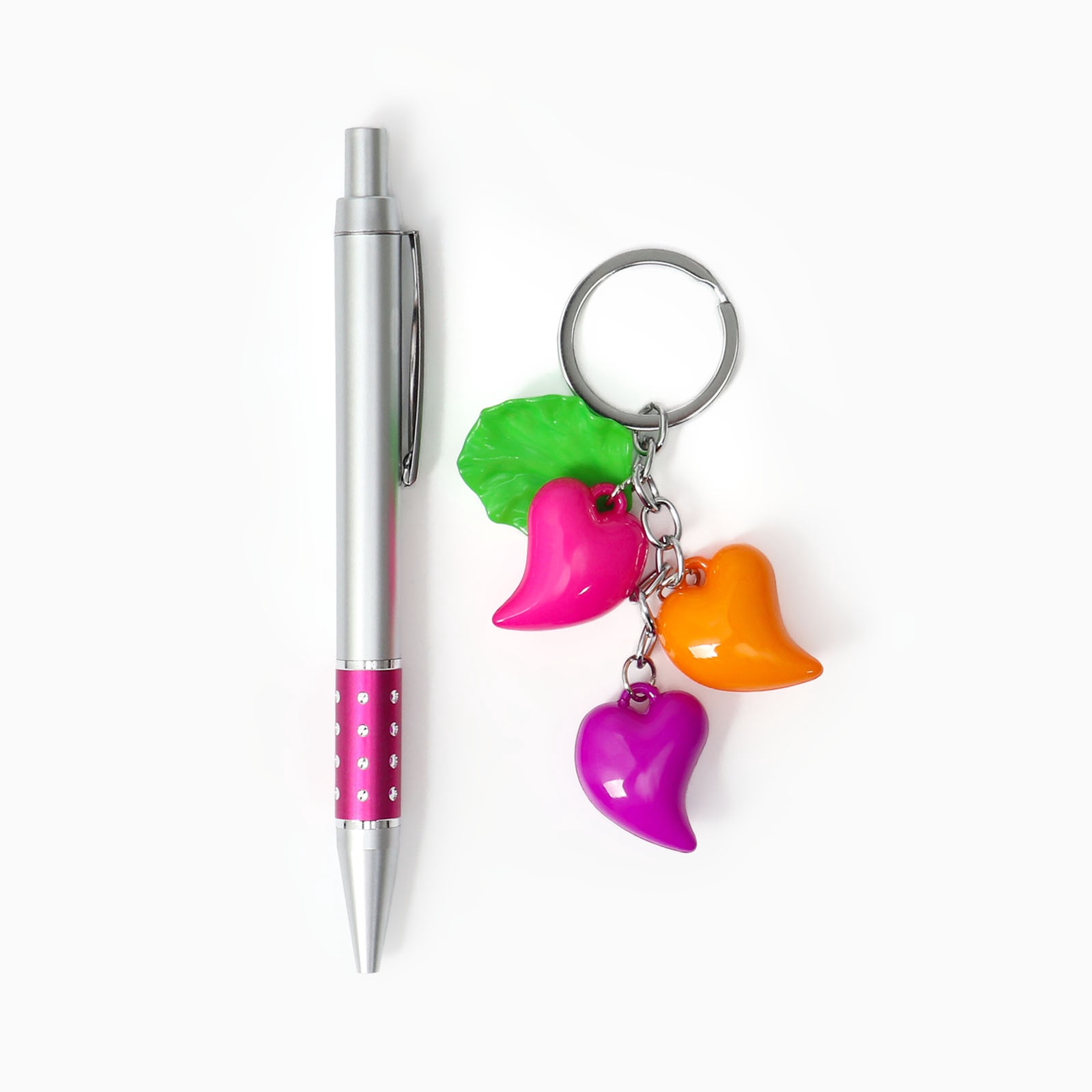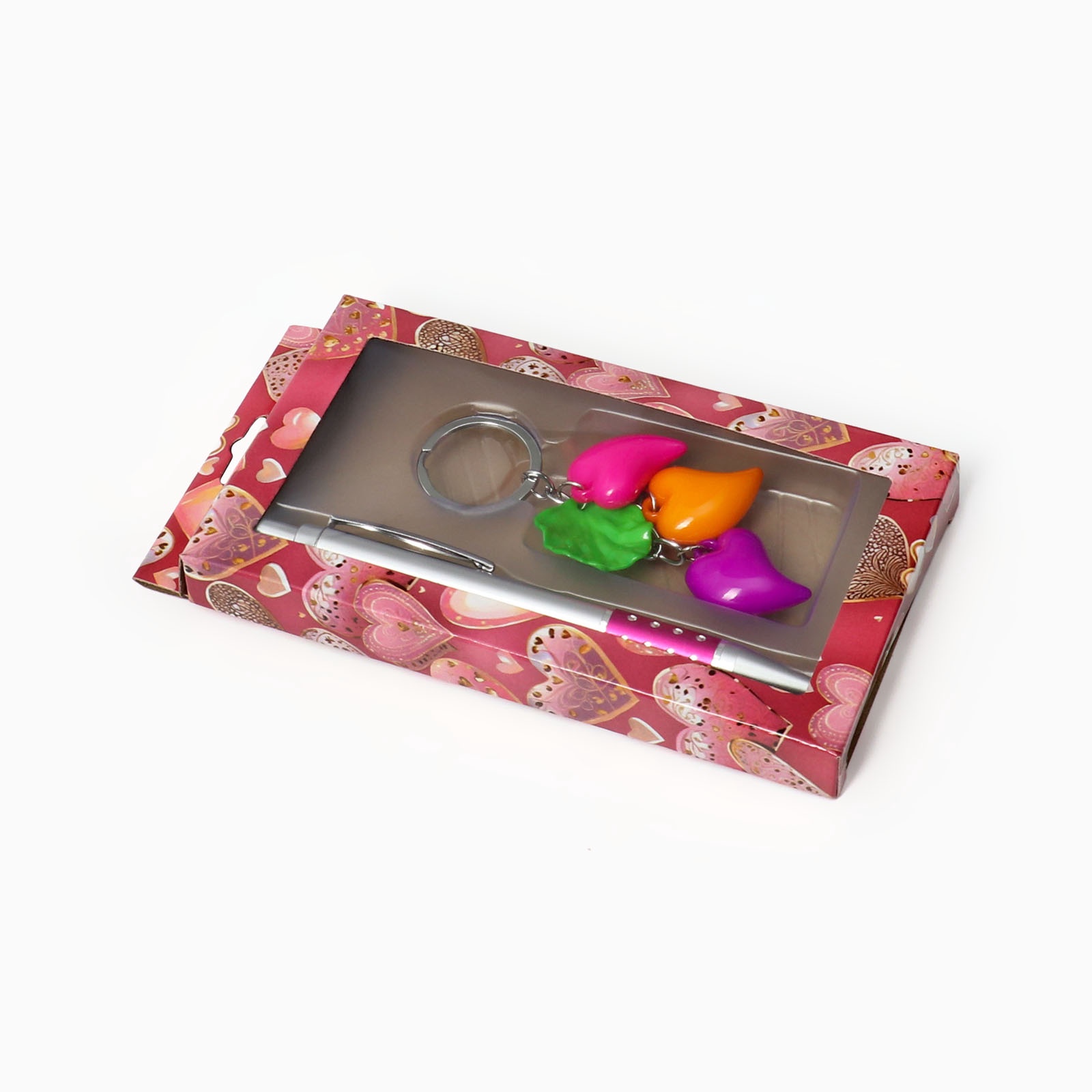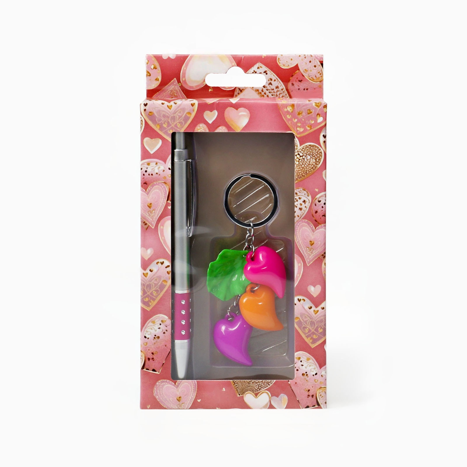 Набор подарочный, 2 предмета: ручка, брелок-сердечки. Для кого:Для женщины|Для кого:Для девочки|В наборе, шт.:2|Вид упаковки:Подарочная коробка|Тематика праздника:Универсальная тематика|Адресат:Без адресата|Составляющие набора:Ручка|Составляющие набора:Брелок|Возраст:Для детей|Возраст:Для взрослых|Страна:Китай  развернуть описание ▼